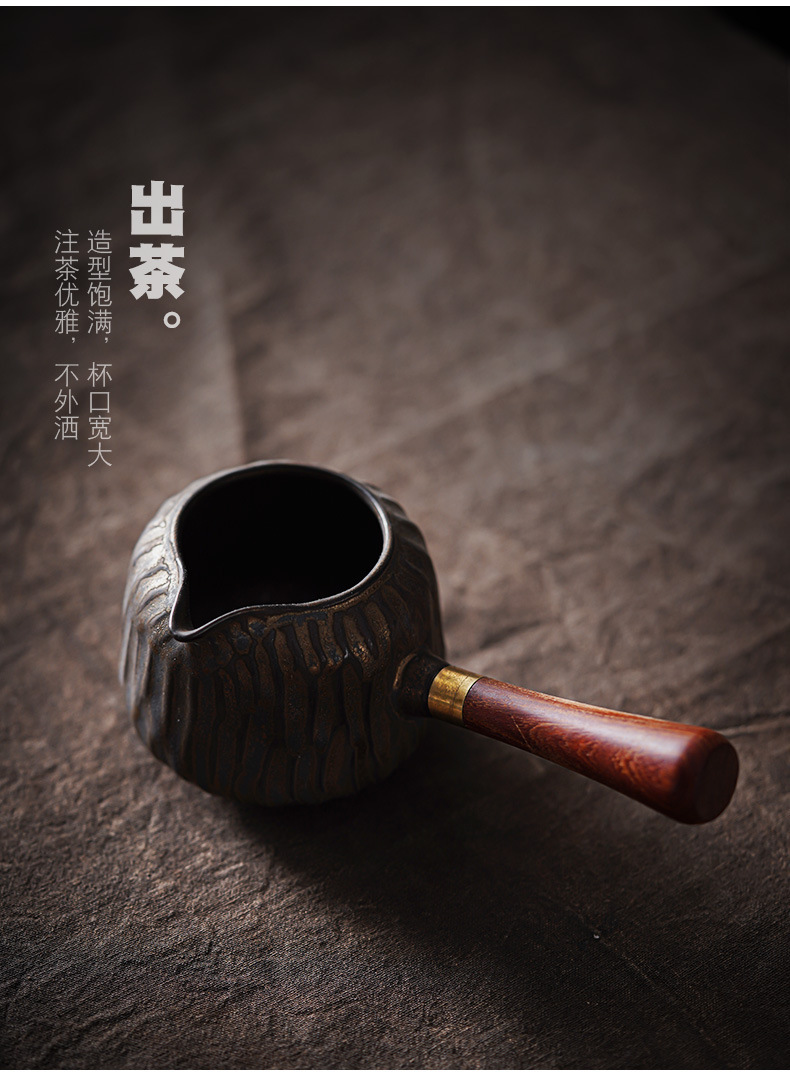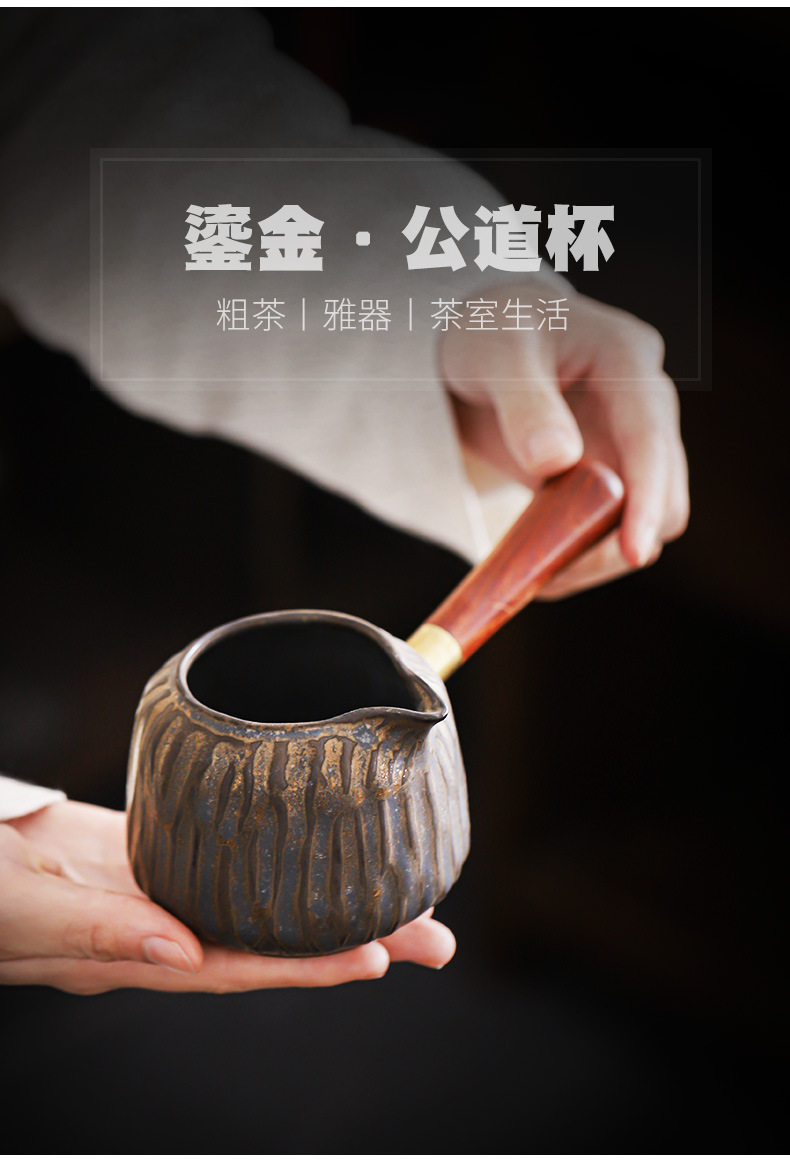 日式鎏金公道杯复古粗陶手持分茶器无把匀杯手工茶道功夫茶具配件