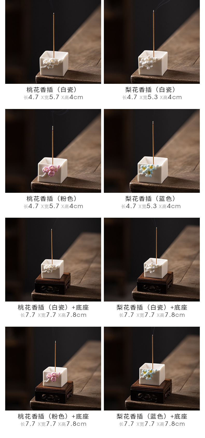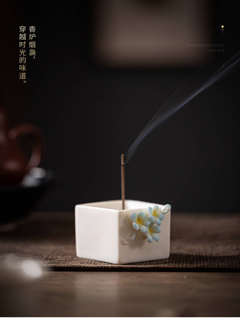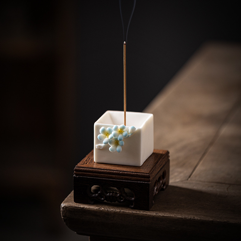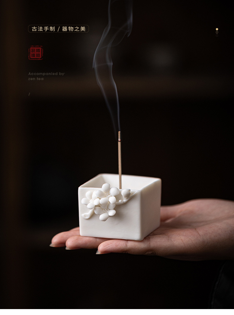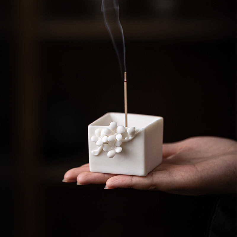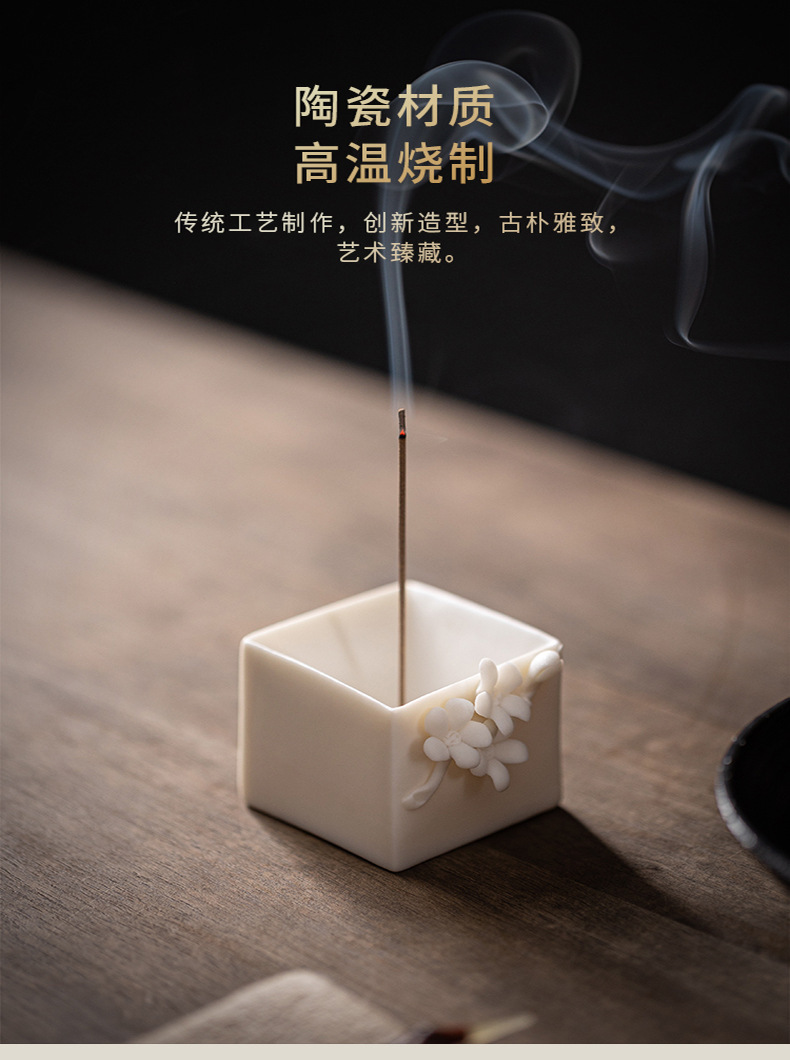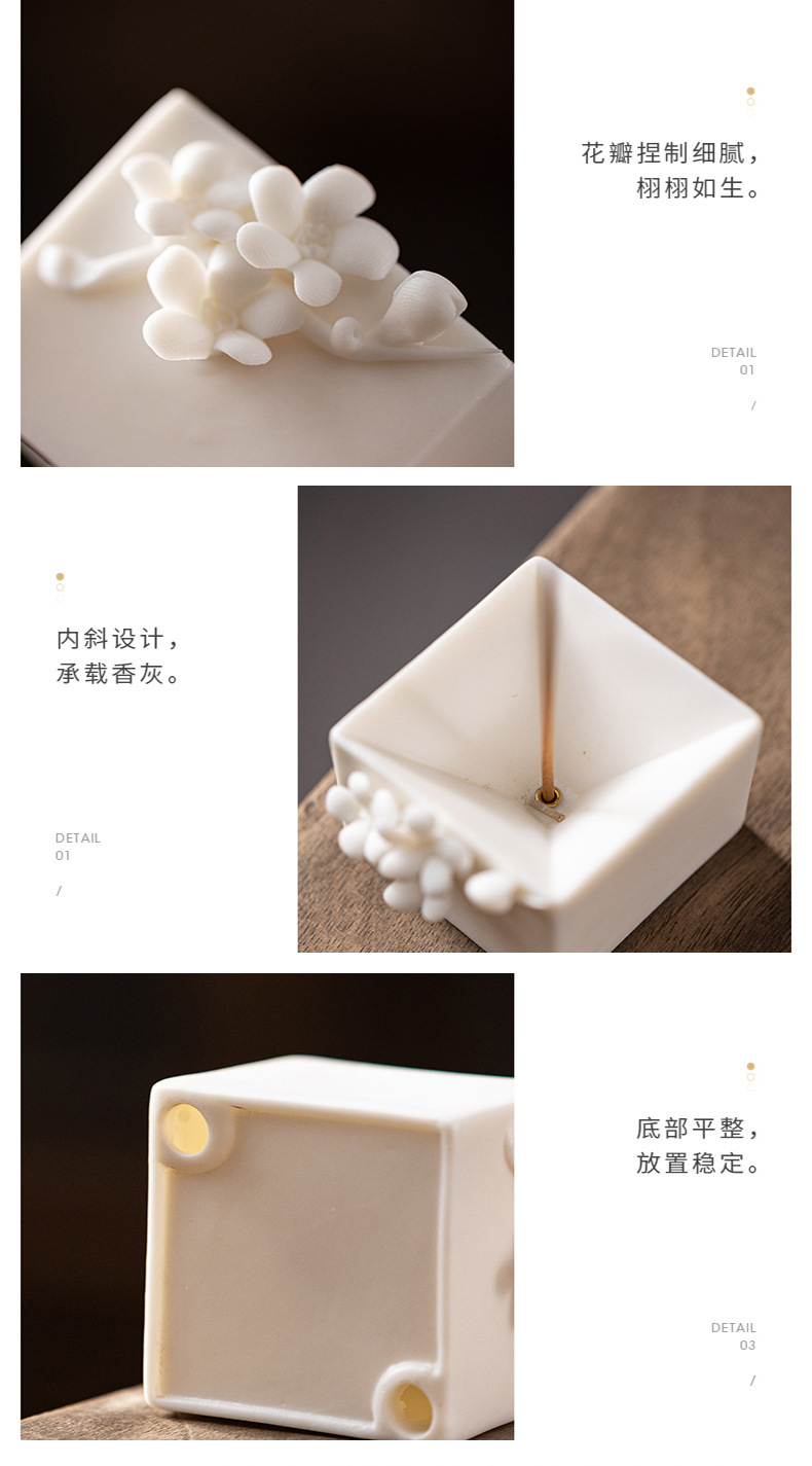 创意手工捏花梅花线香炉家用室内茶桌白瓷香台香座立式香插小摆件
