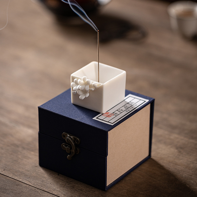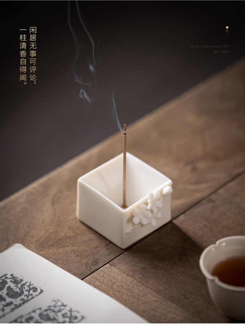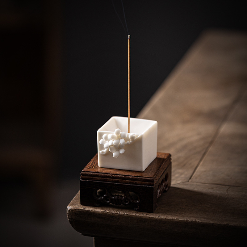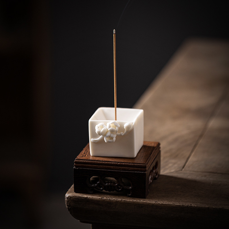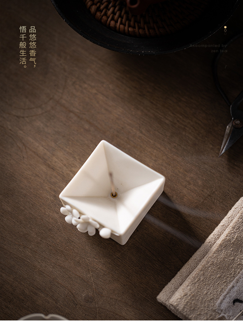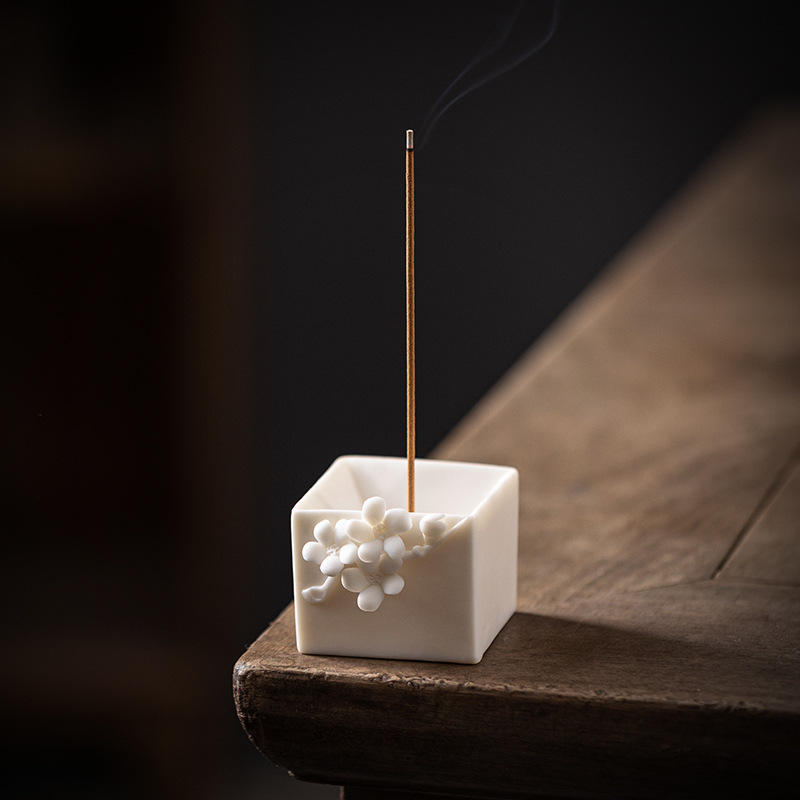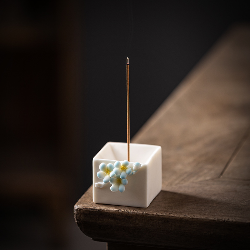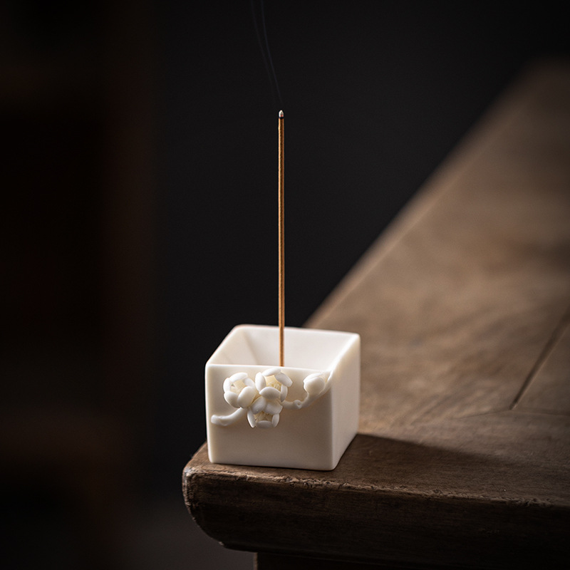 创意手工捏花梅花线香炉家用室内茶桌白瓷香台香座立式香插小摆件