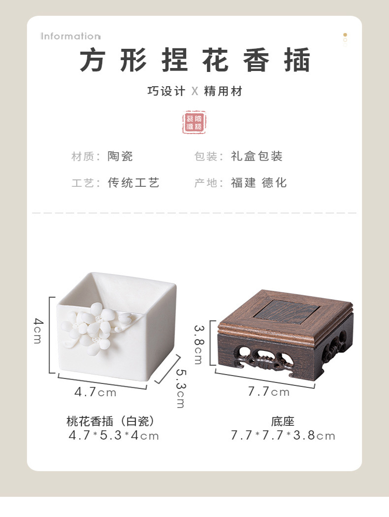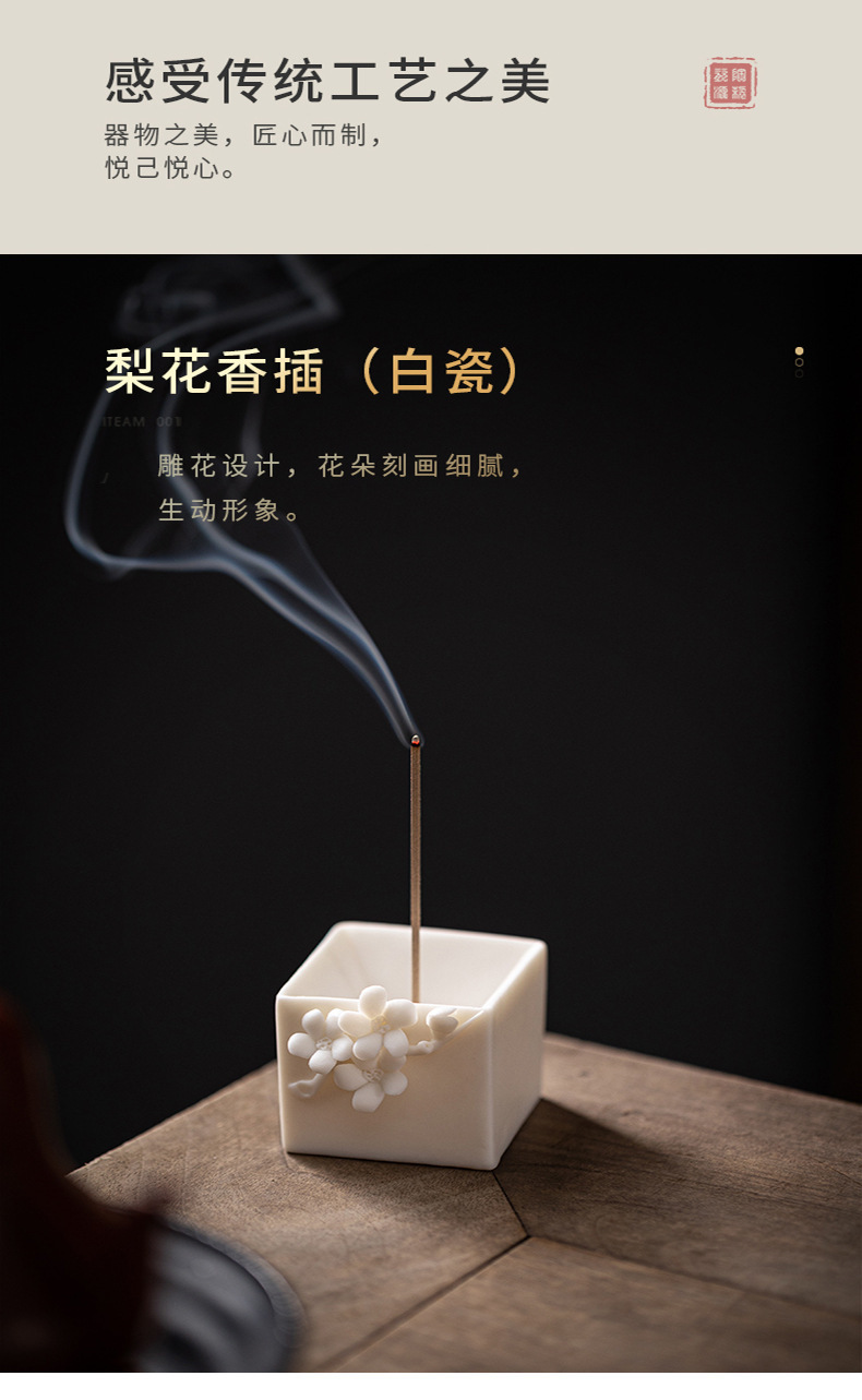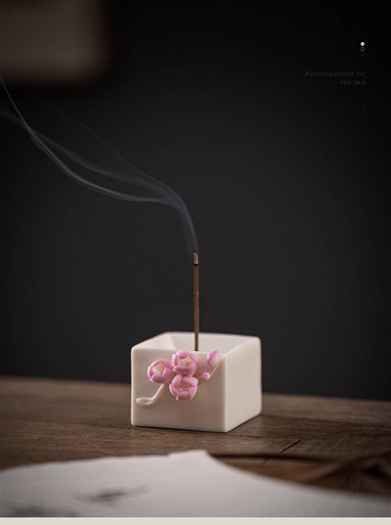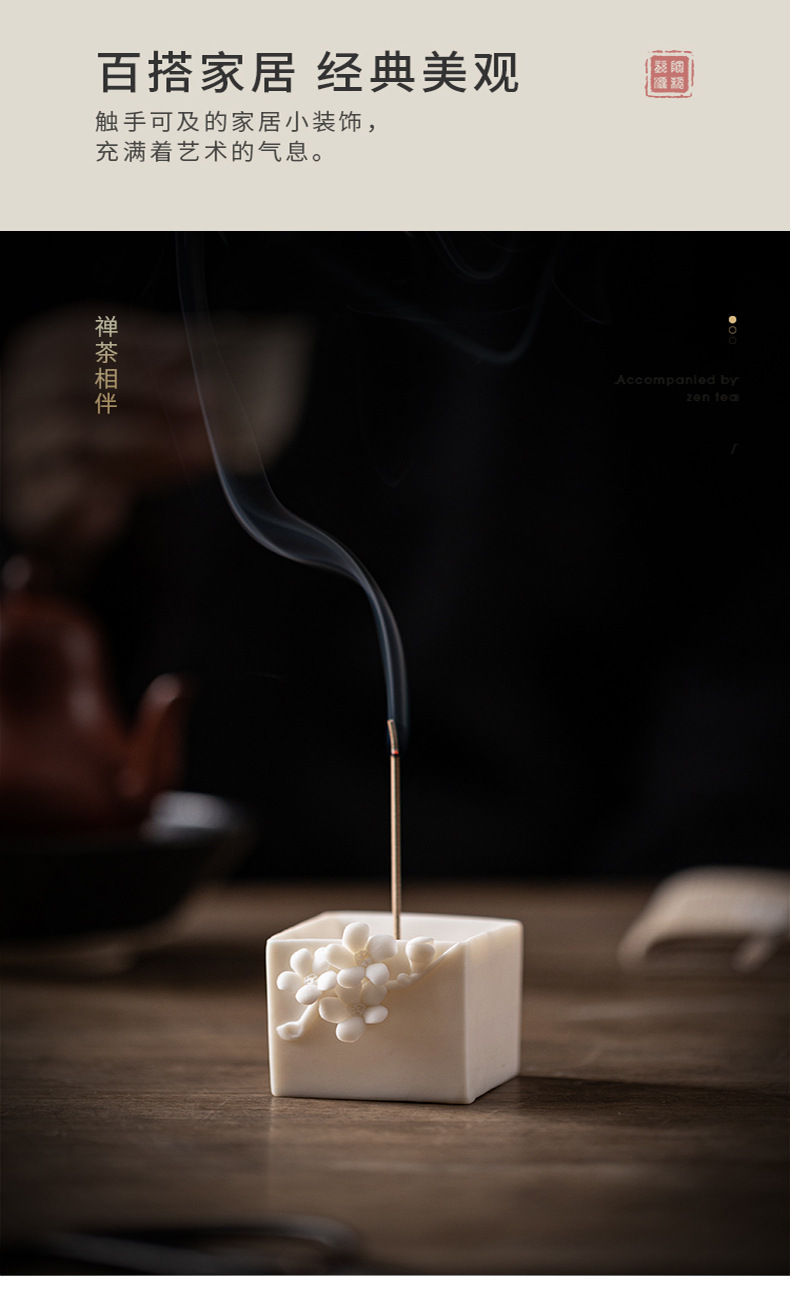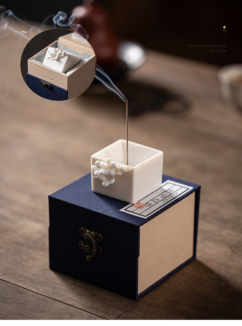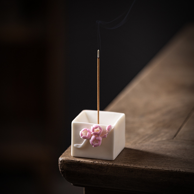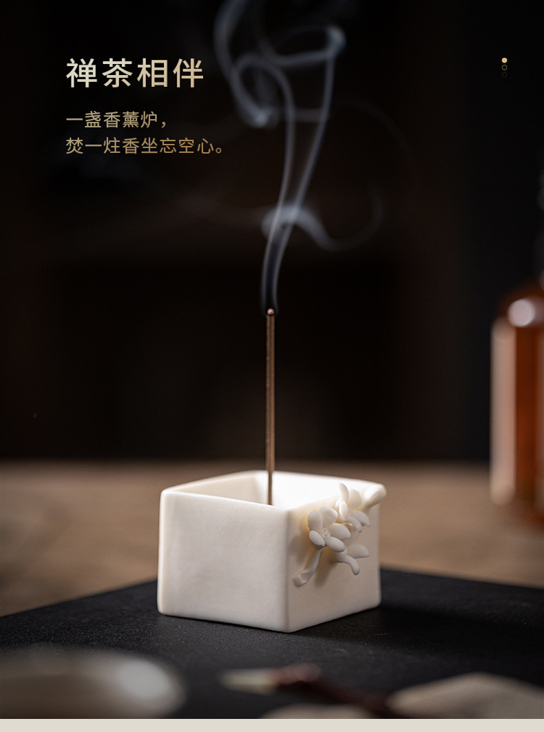 创意手工捏花梅花线香炉家用室内茶桌白瓷香台香座立式香插小摆件