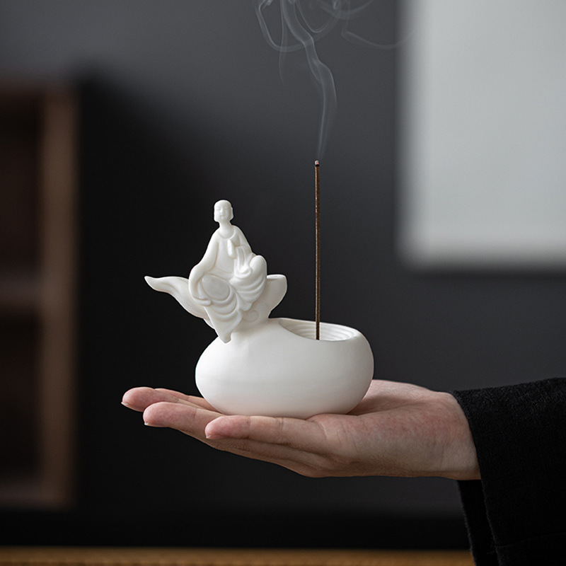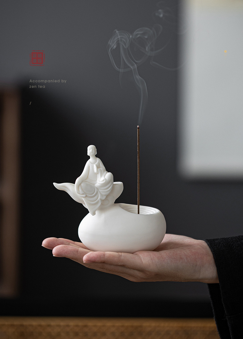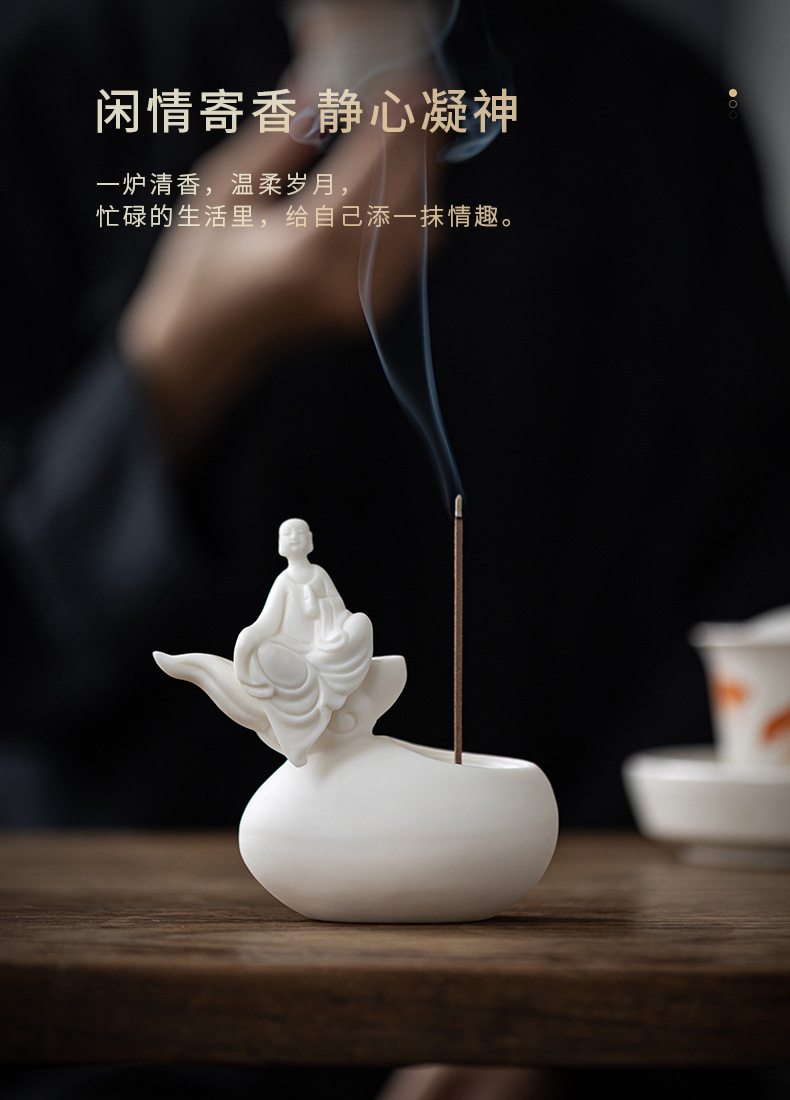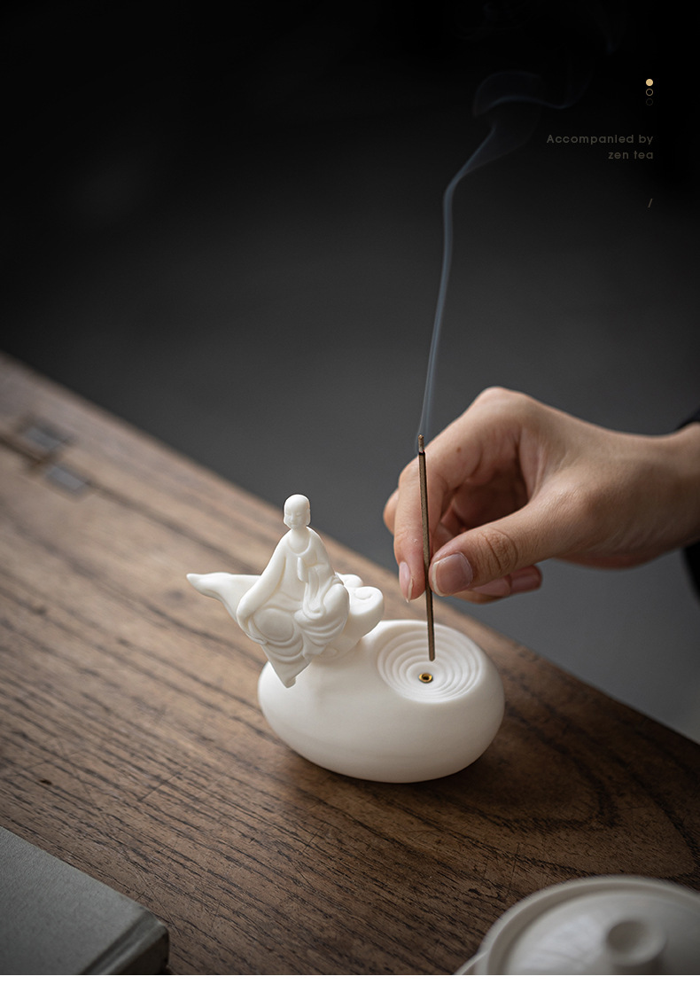 禅意无相小僧香插香座小和尚陶瓷小香炉家用室内创意线香茶台香托