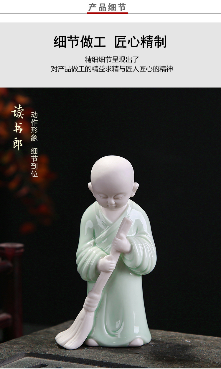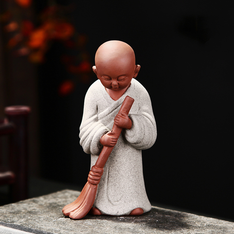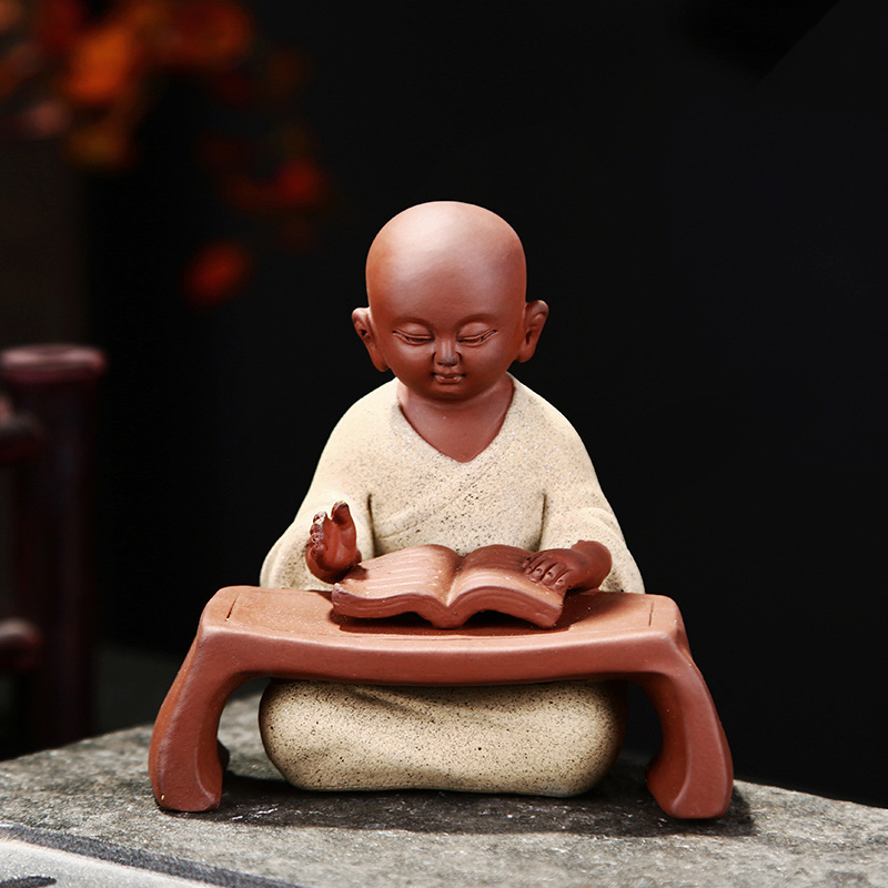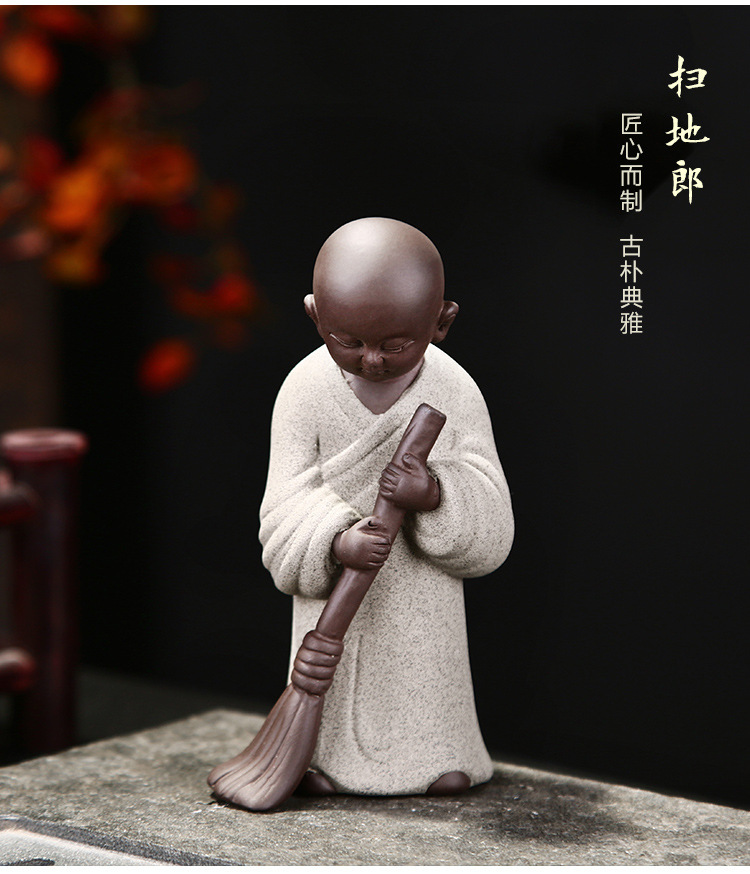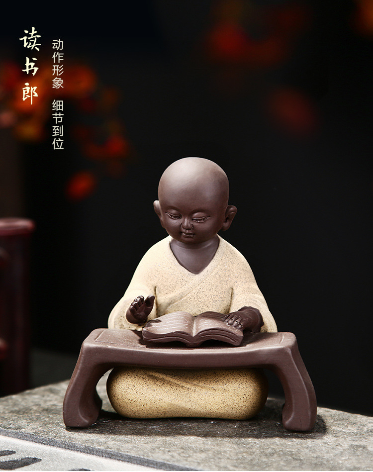 禅意人物茶宠茶具茶玩创意中国风沙弥家居书桌饰品陶瓷小和尚摆件