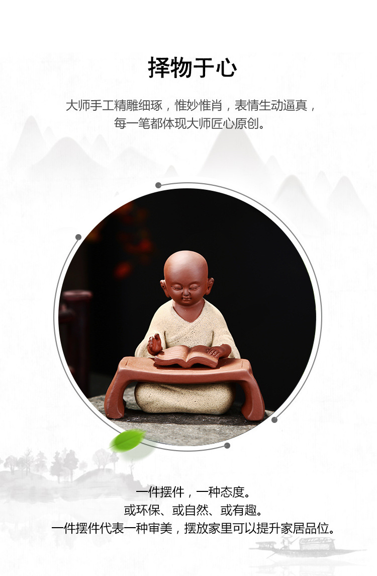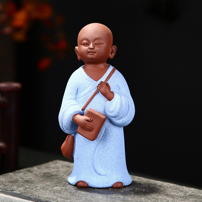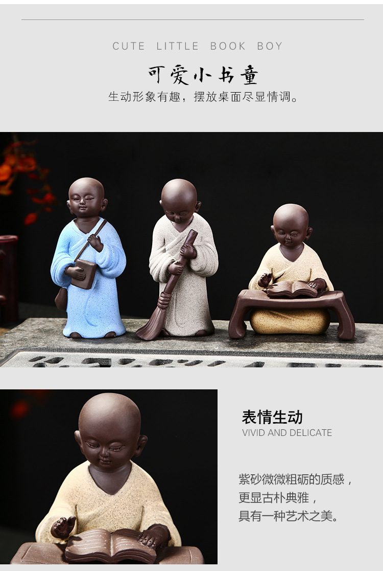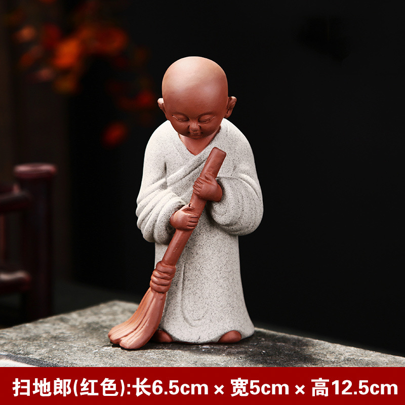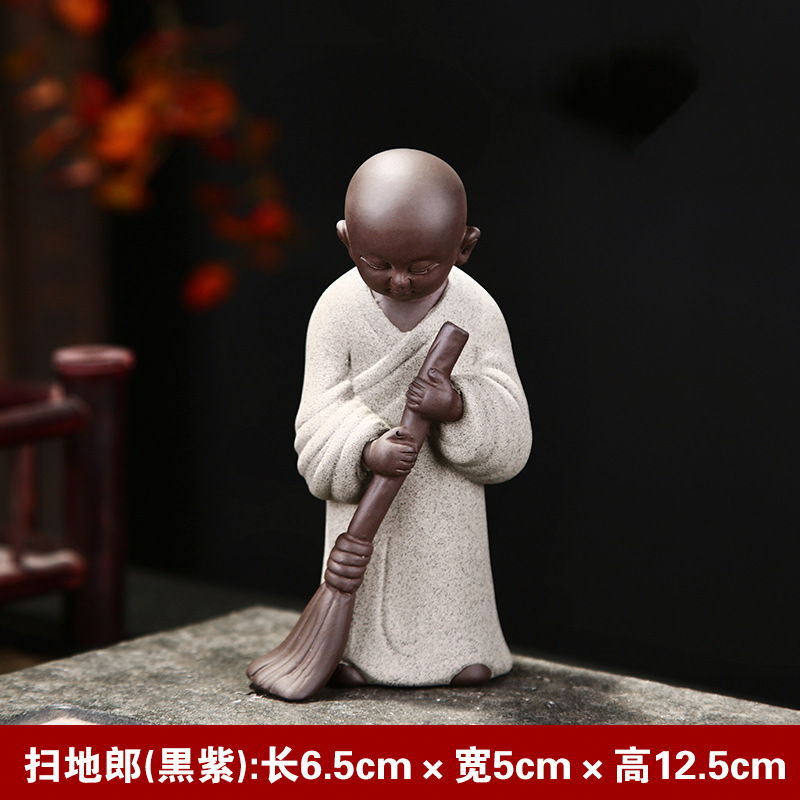 禅意人物茶宠茶具茶玩创意中国风沙弥家居书桌饰品陶瓷小和尚摆件