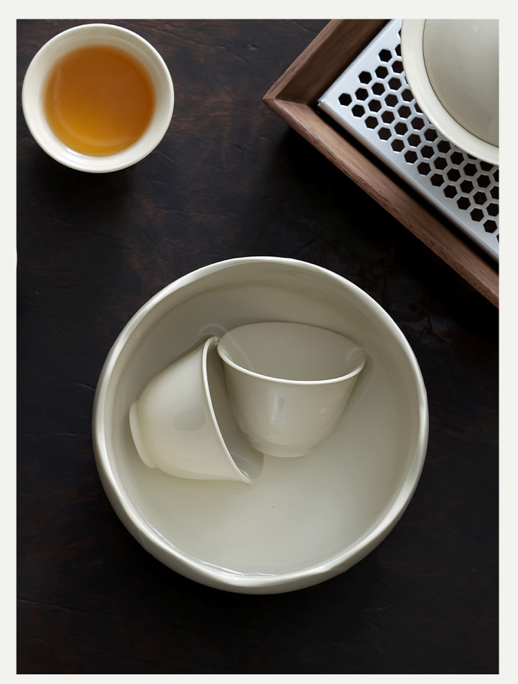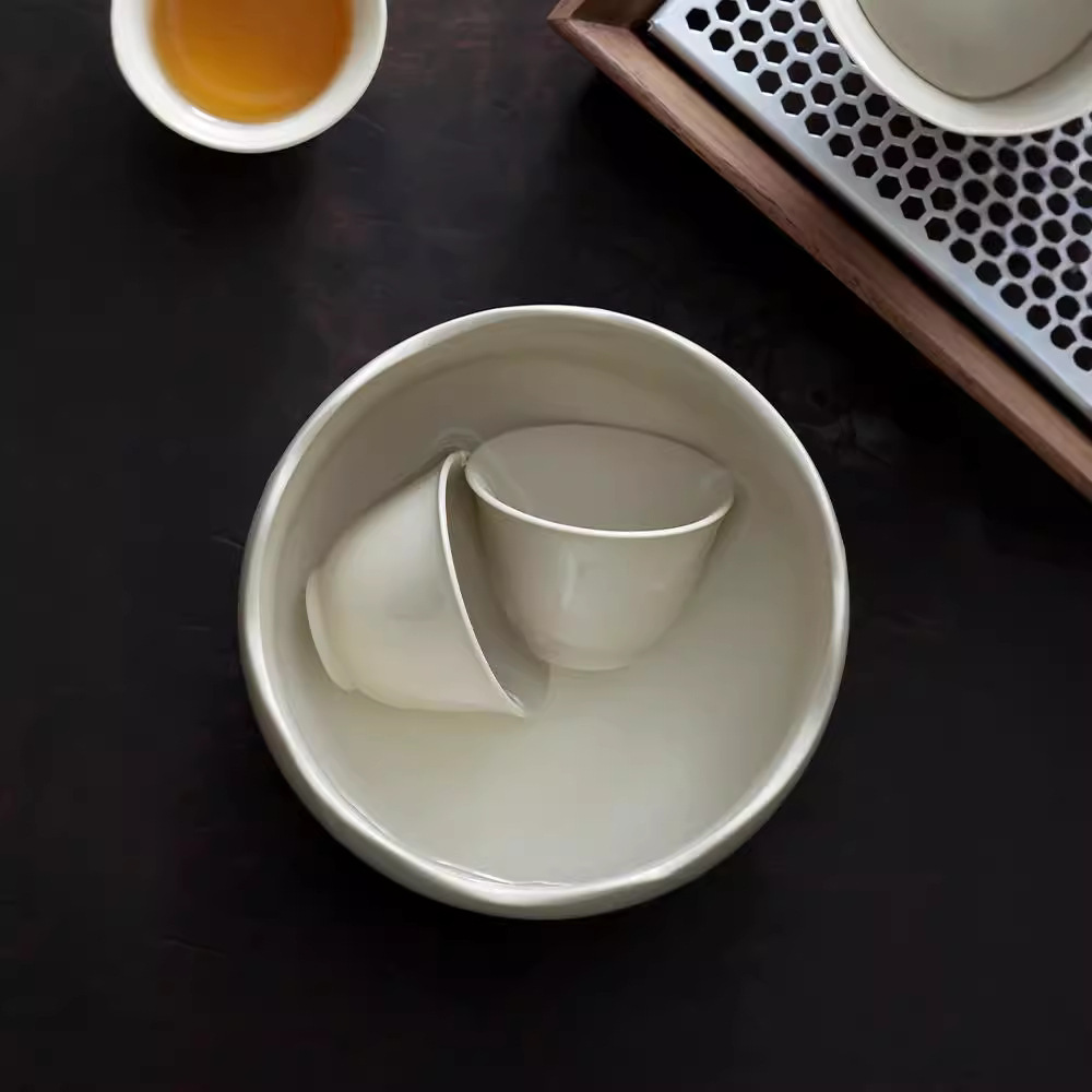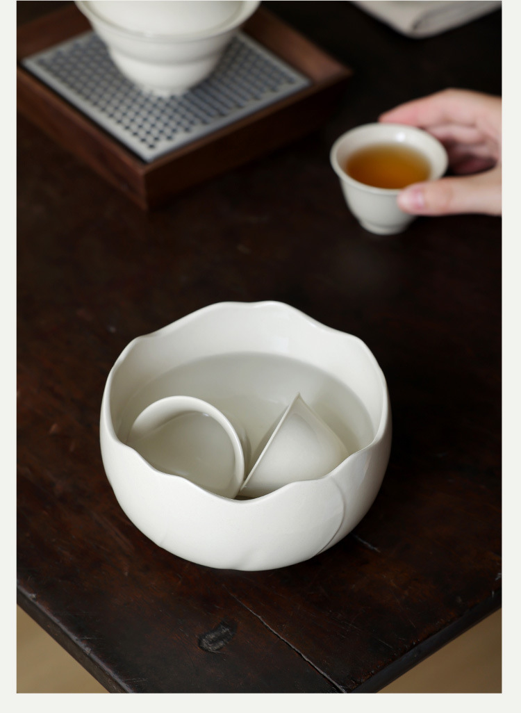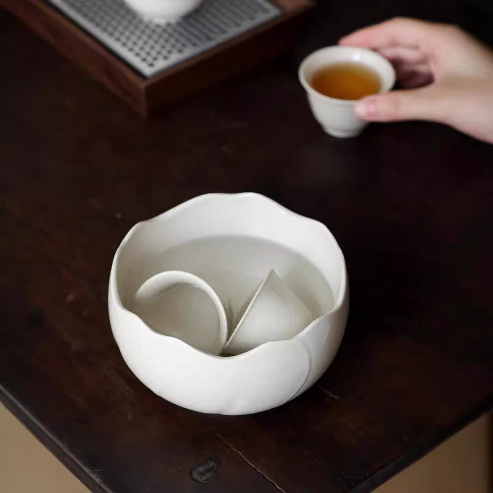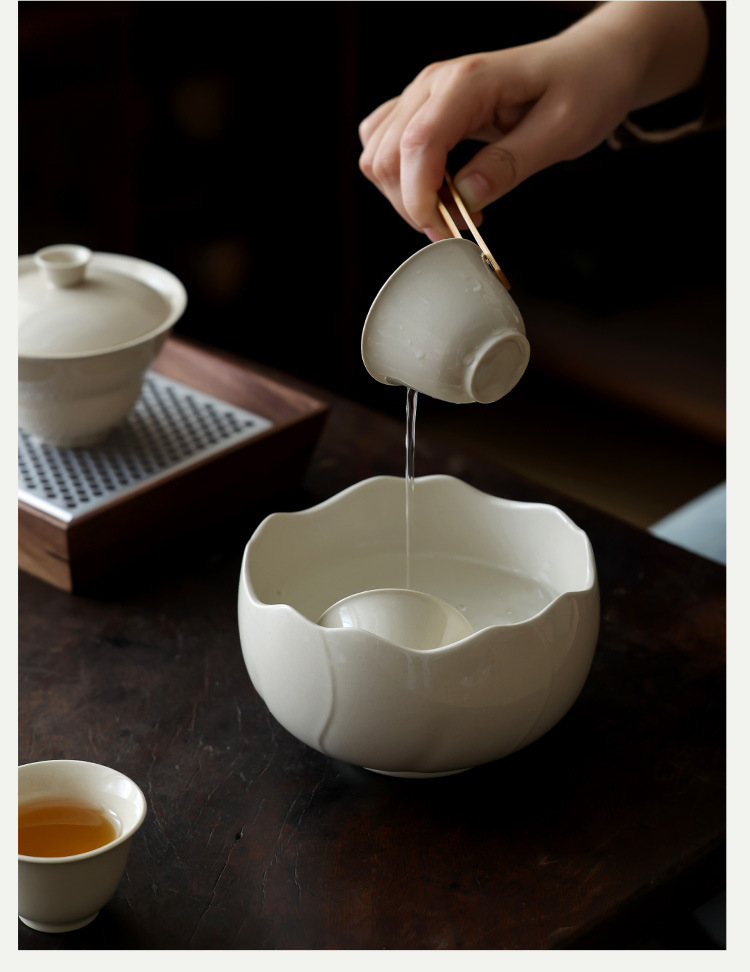 陶瓷草木灰葵口建水茶渣缸水盂废水桶高端储水茶台茶洗丁制茶具