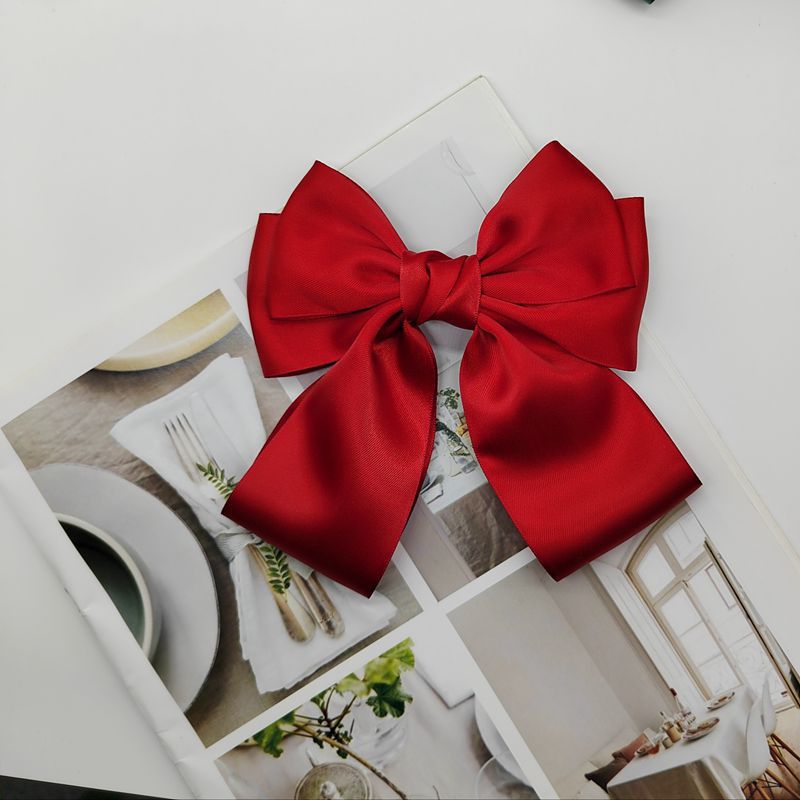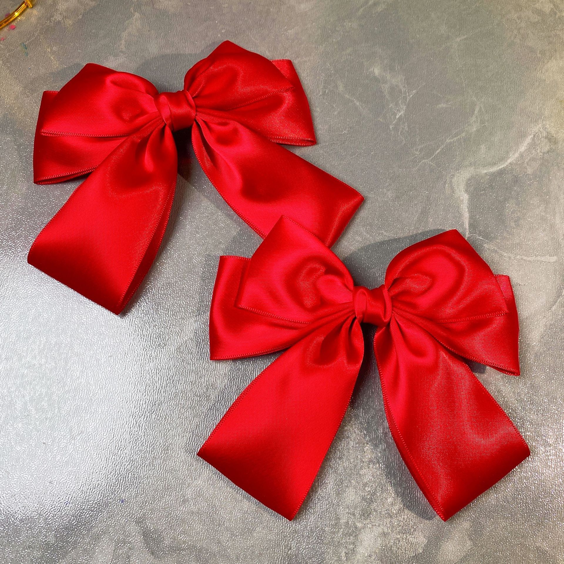 跨境爆款手工三层红色大蝴蝶结丝带发夹头饰马尾女后脑勺飘带发卡
