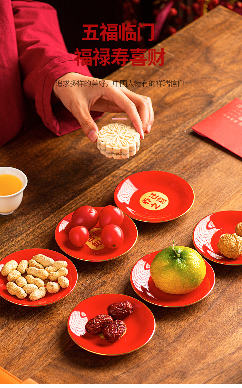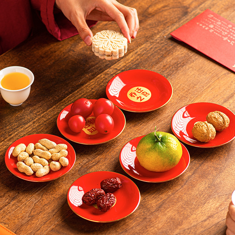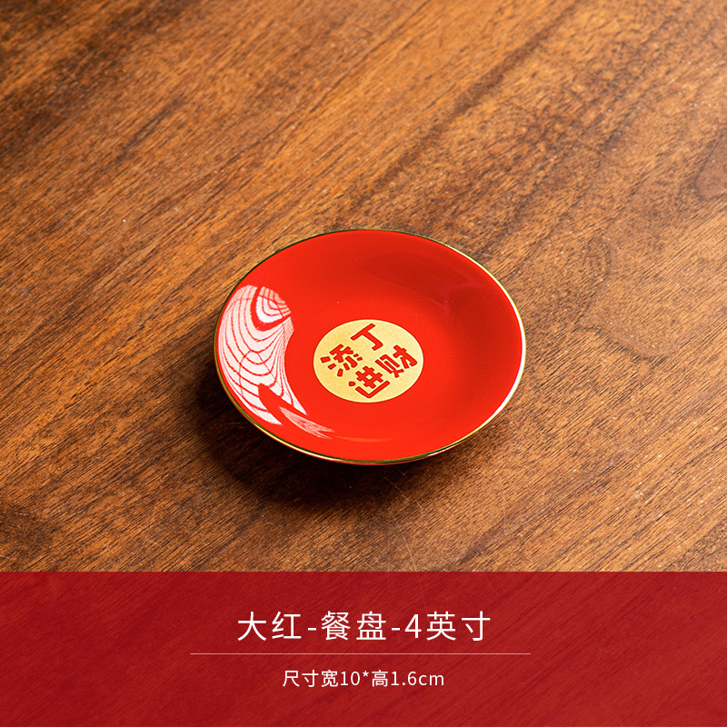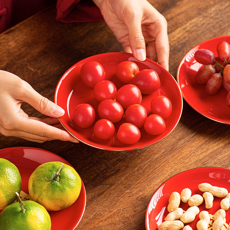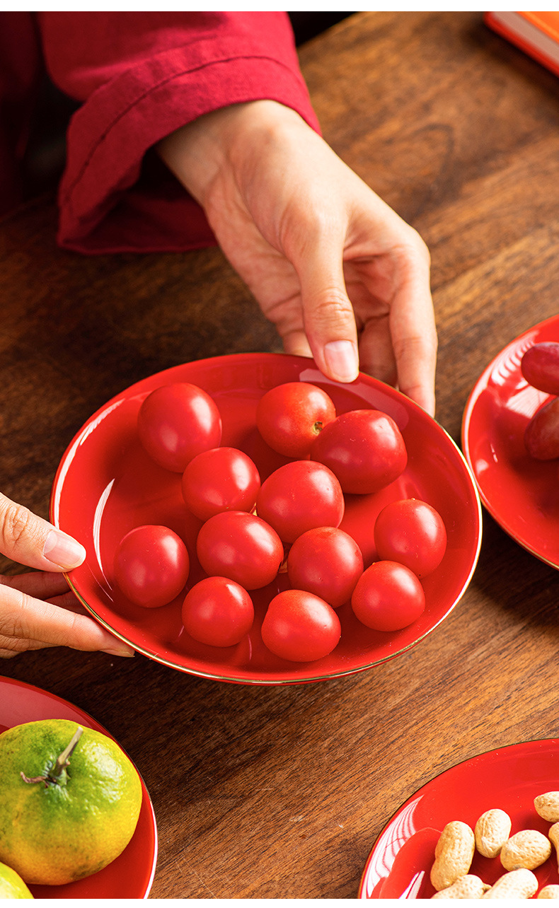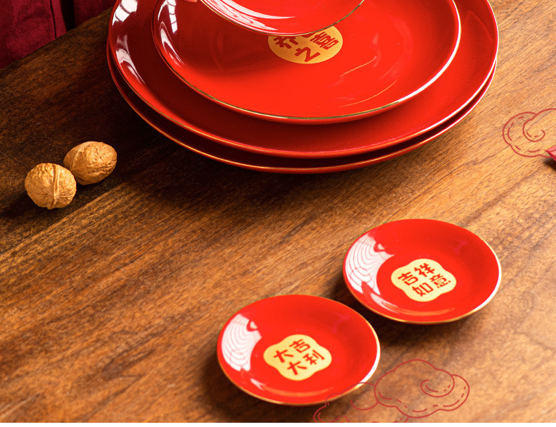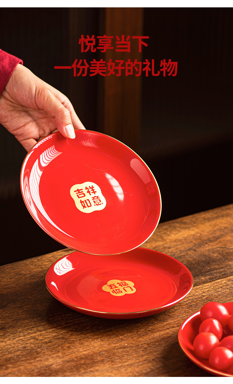 陶瓷盘子餐盘红色喜庆乔迁新居搬家入宅餐具新家装饰开业新年果盘