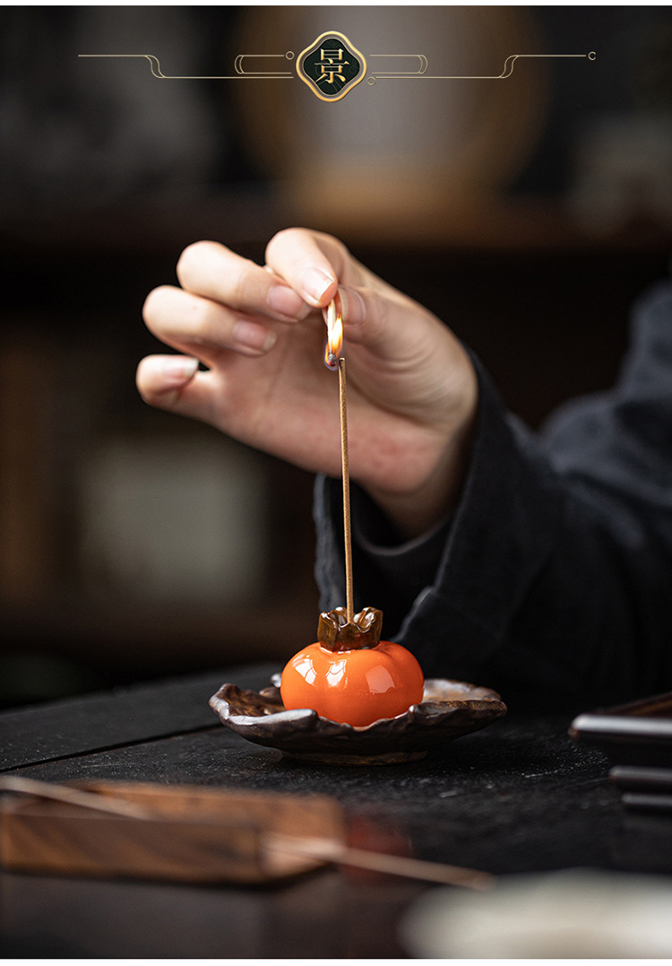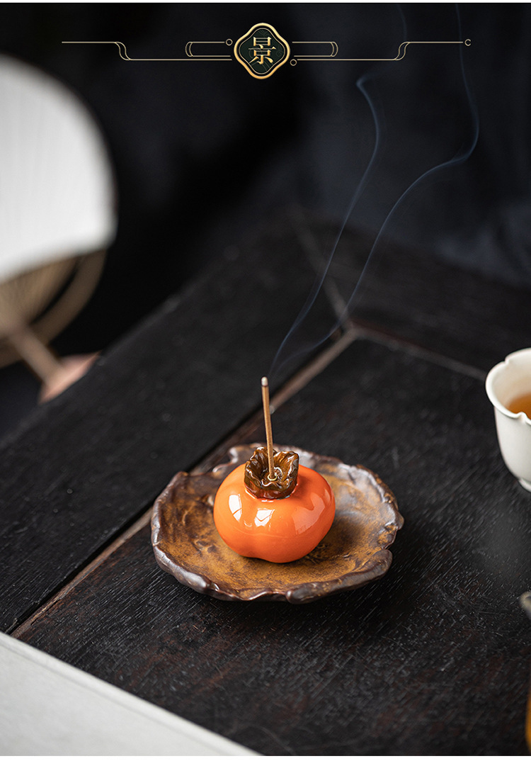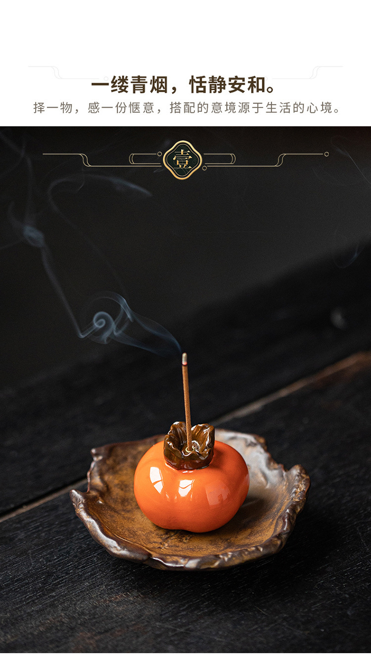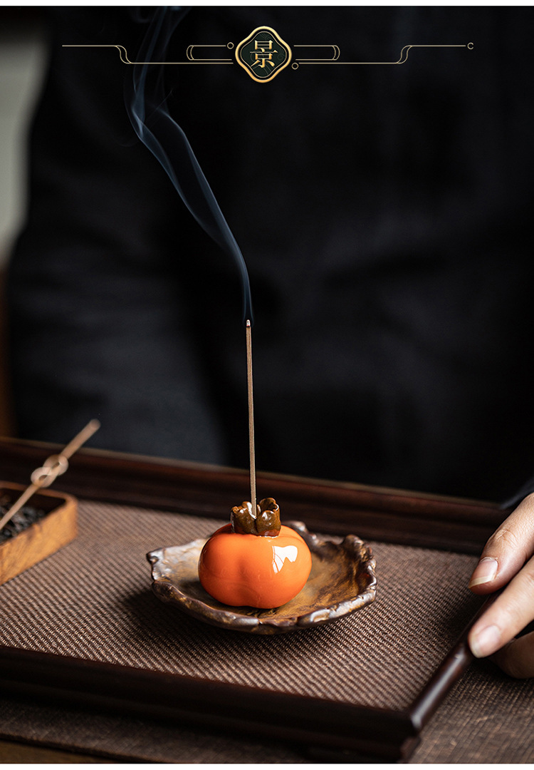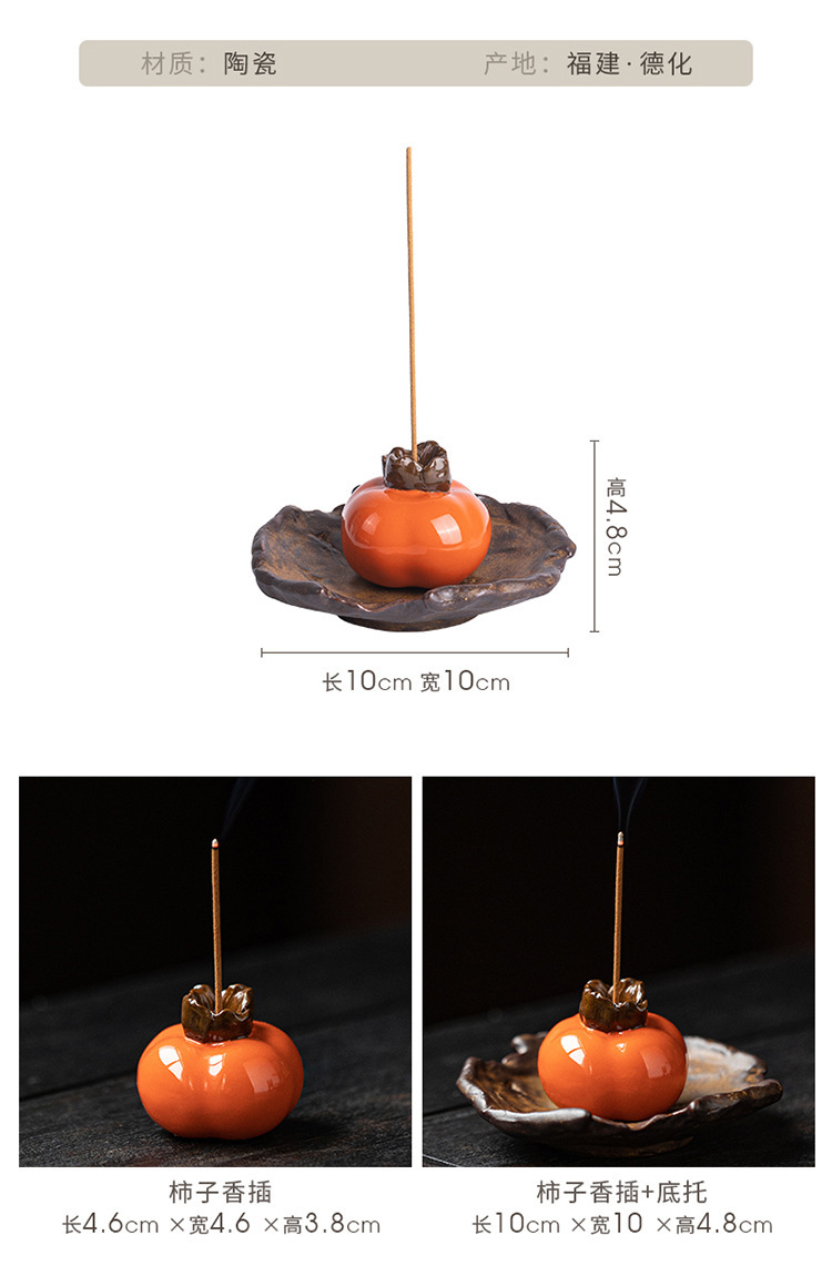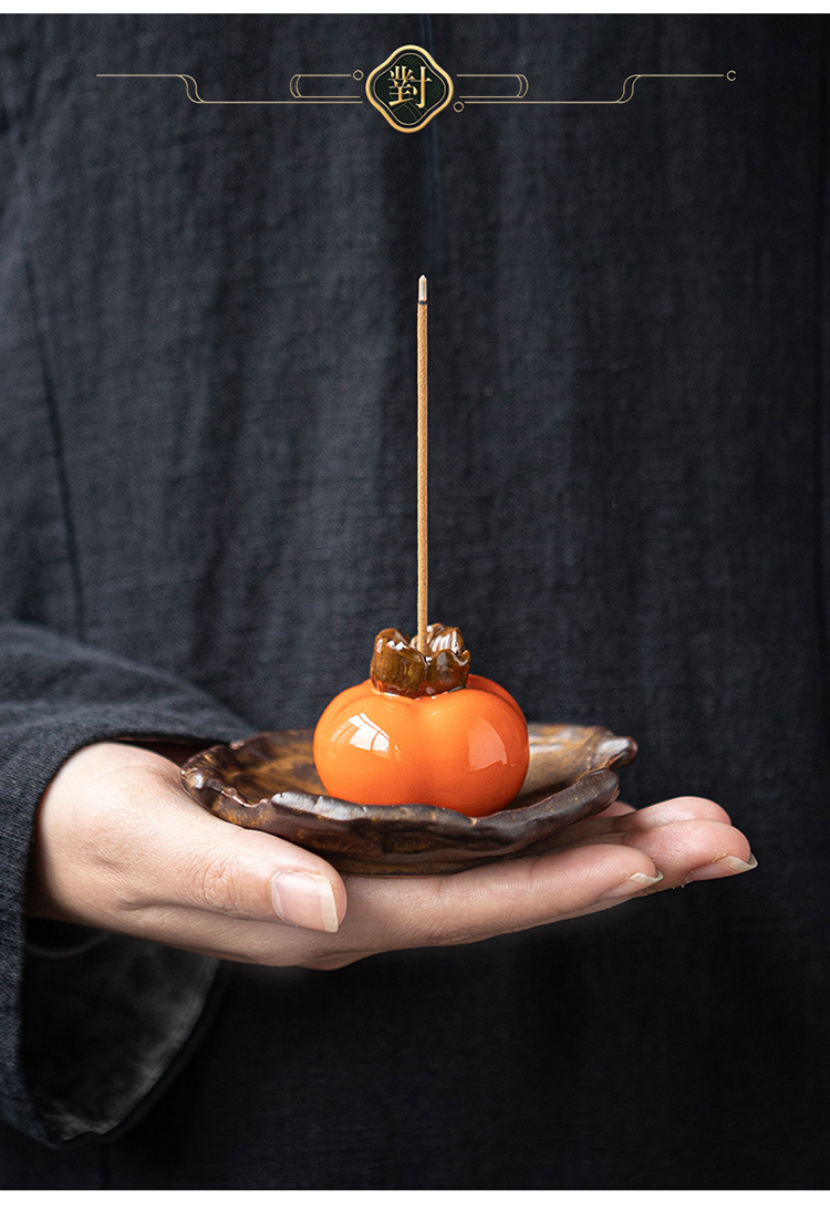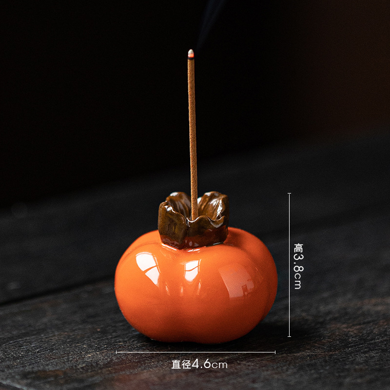 心想柿成创意陶瓷柿子线香炉家用室内柿柿如意香插香座香托摆件