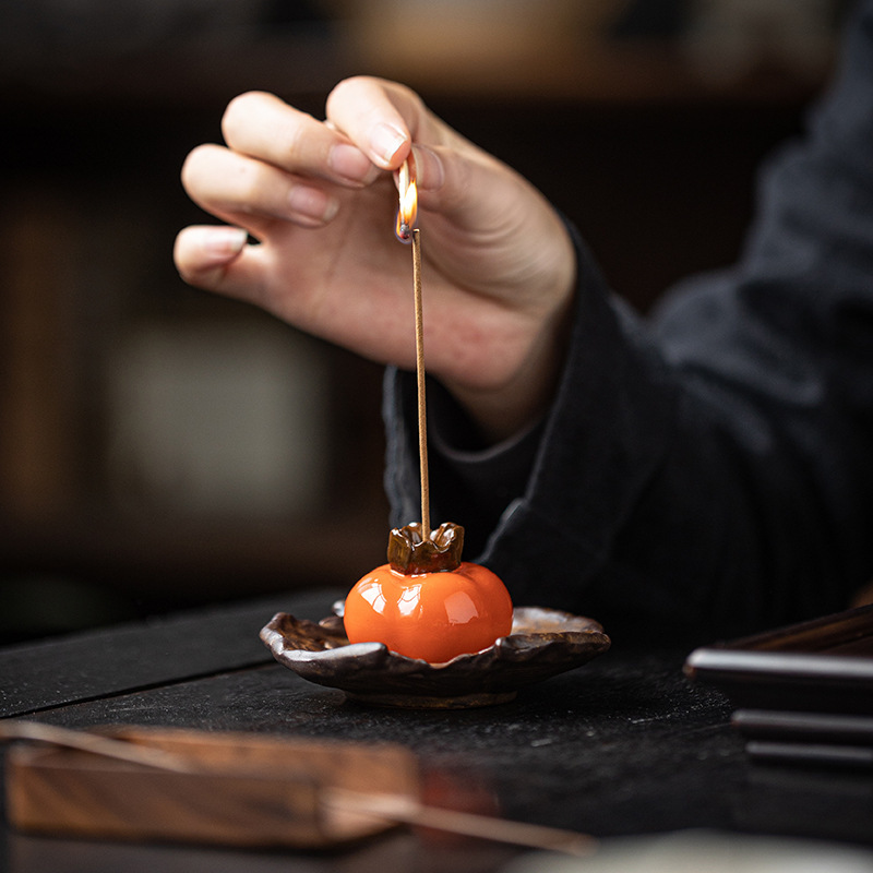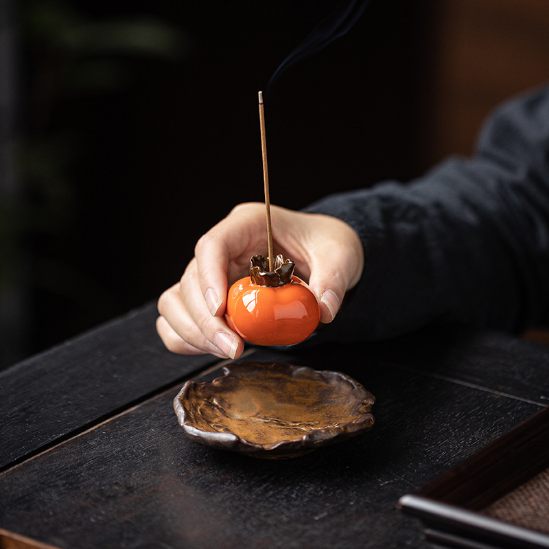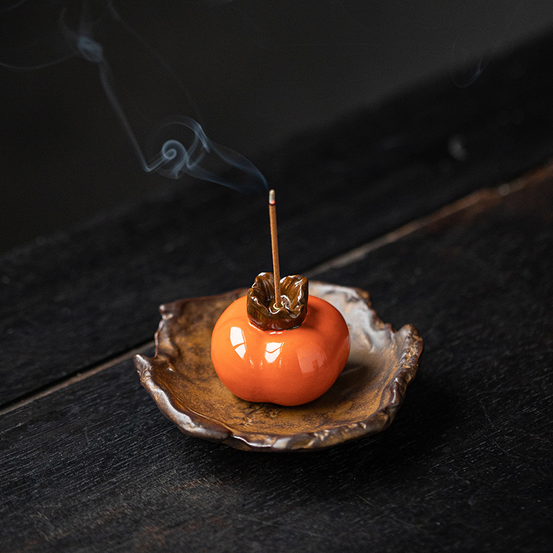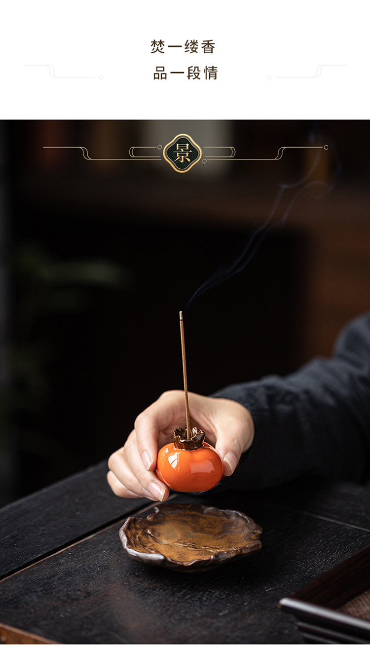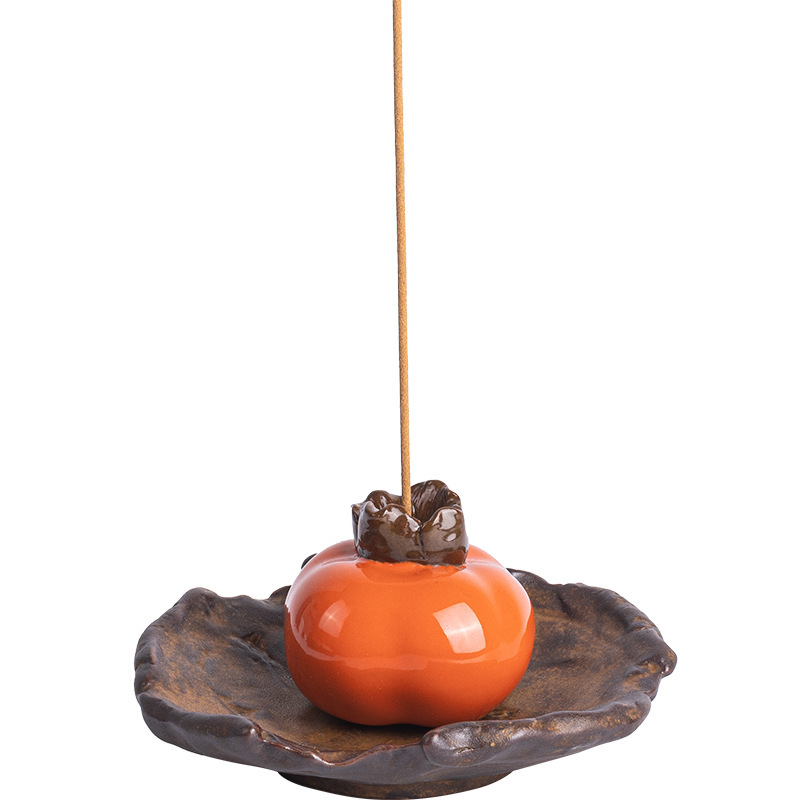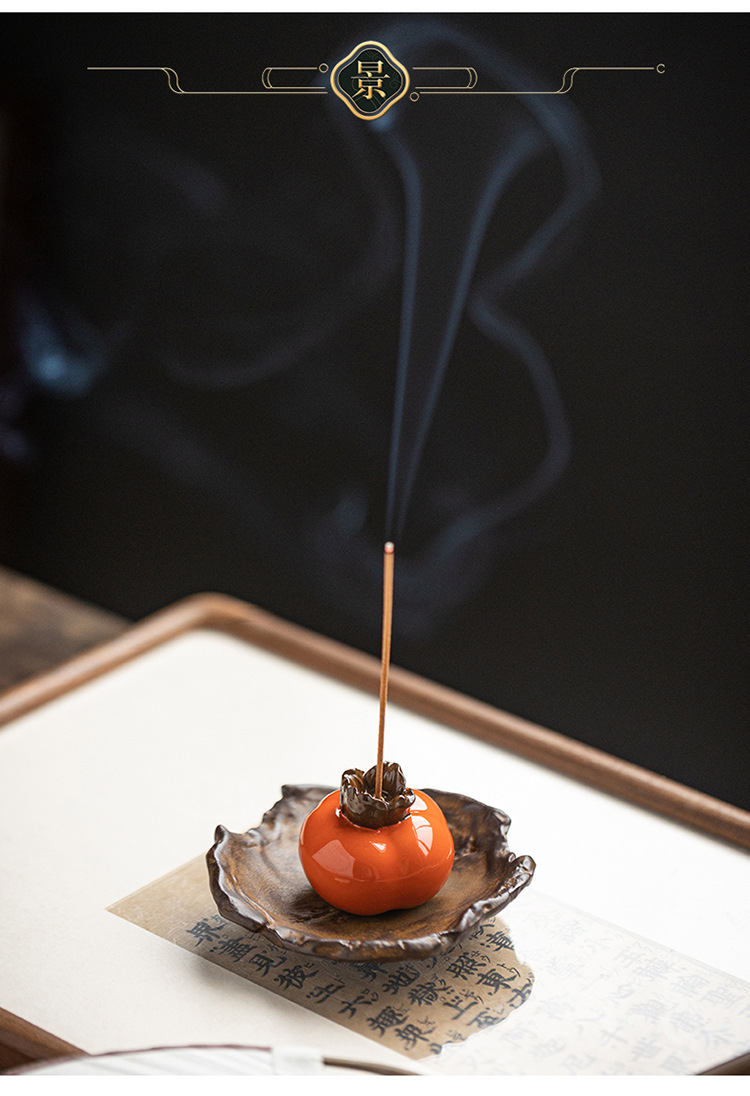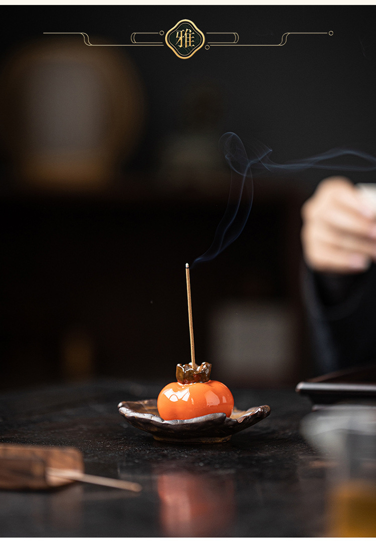 心想柿成创意陶瓷柿子线香炉家用室内柿柿如意香插香座香托摆件