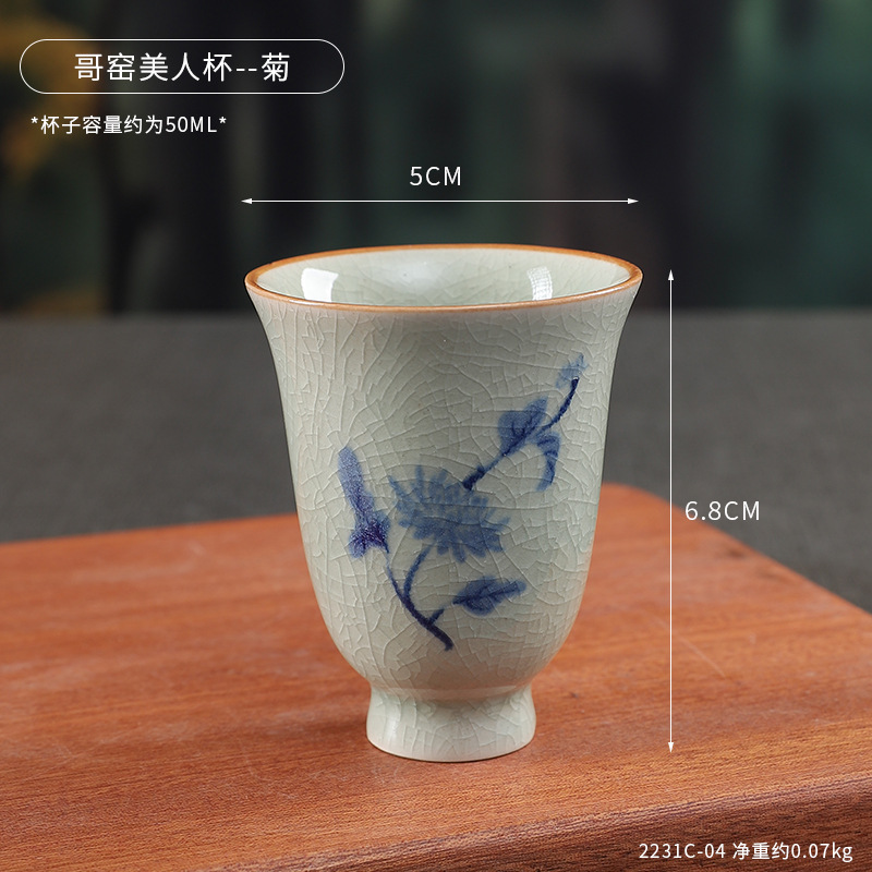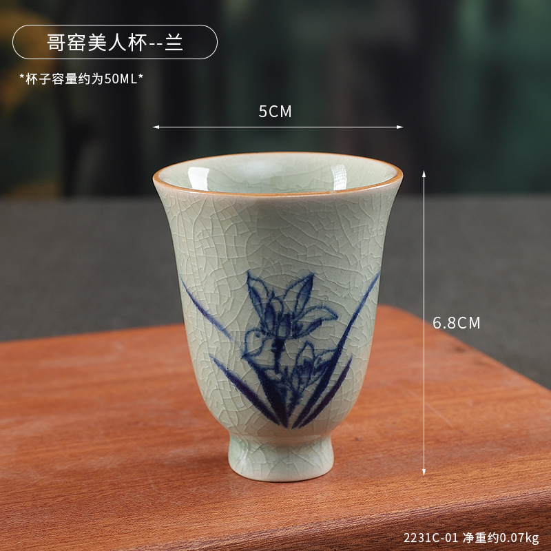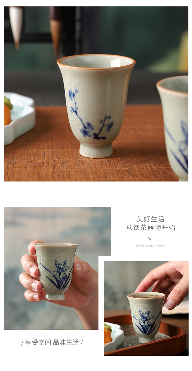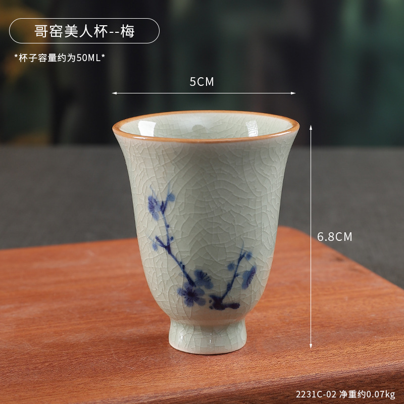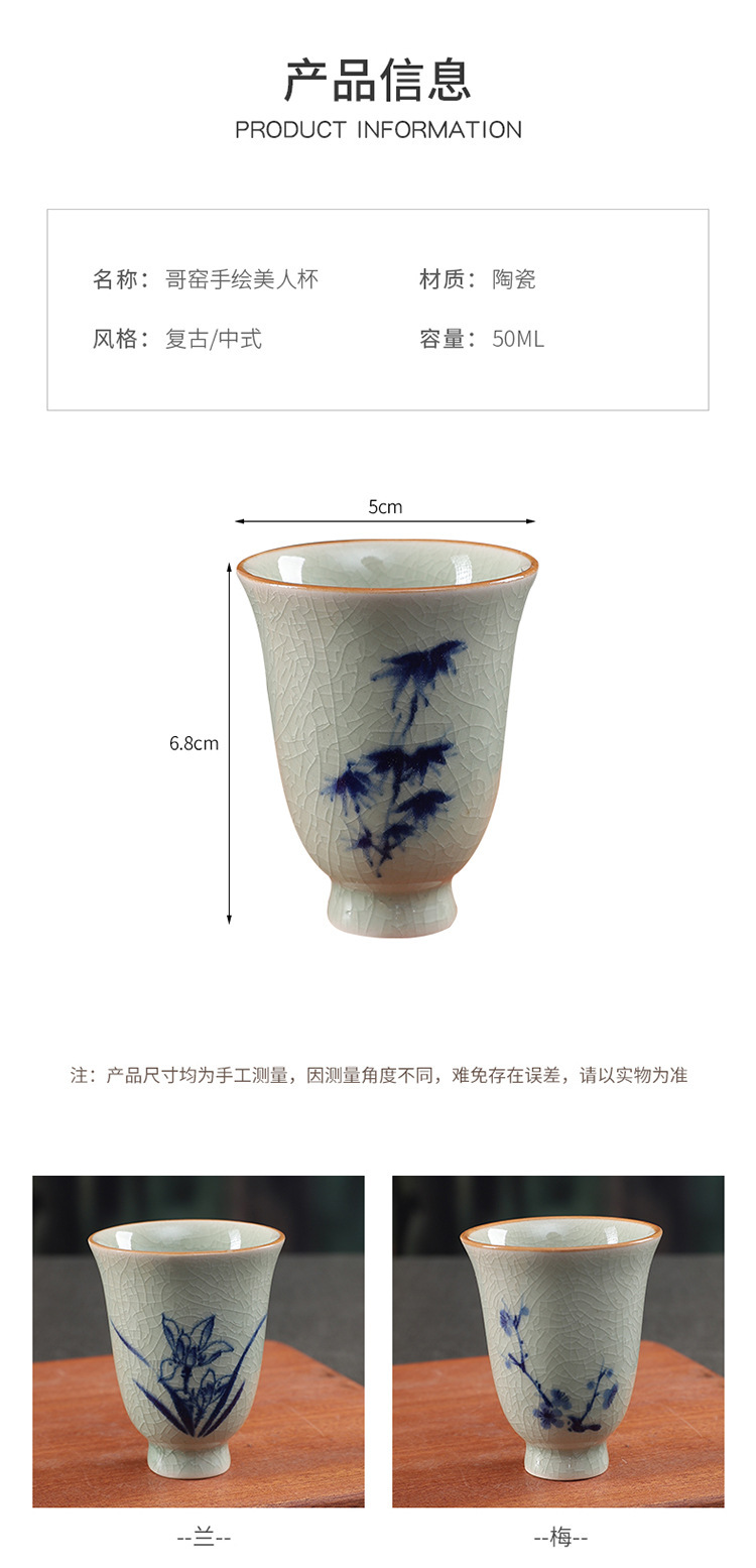 中式哥窑开片主人杯手冰裂功夫杯棋牌室餐厅品茗杯梅兰竹菊美人杯