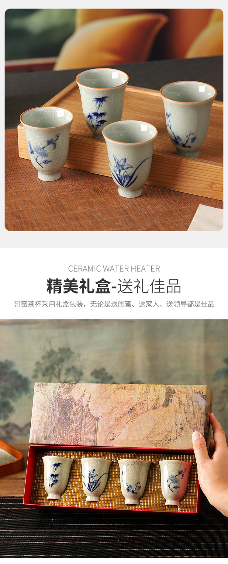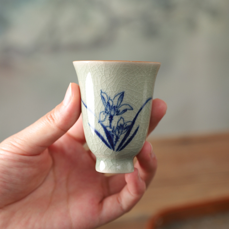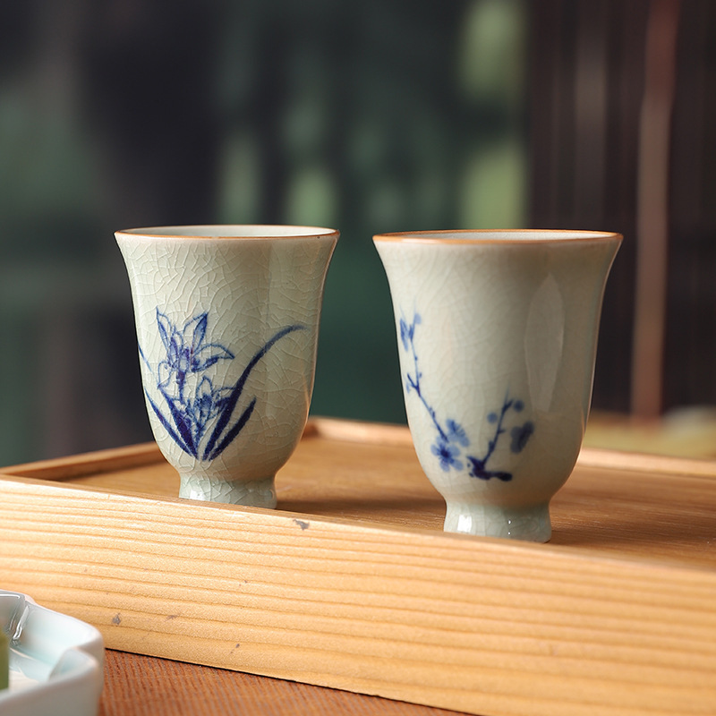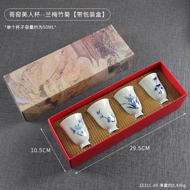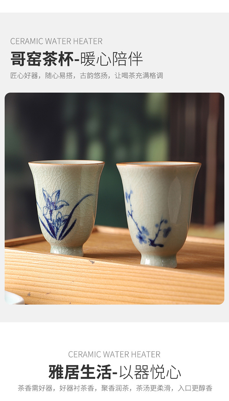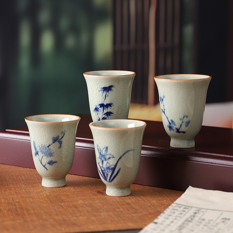 中式哥窑开片主人杯手冰裂功夫杯棋牌室餐厅品茗杯梅兰竹菊美人杯