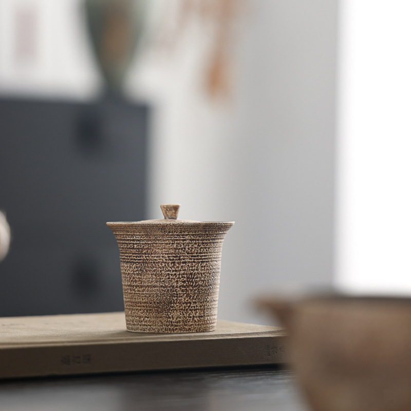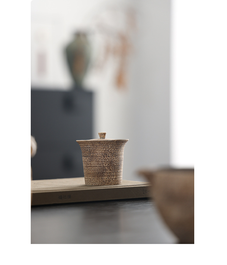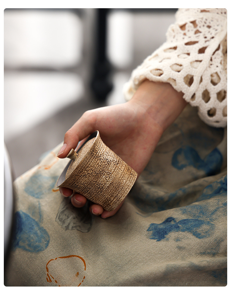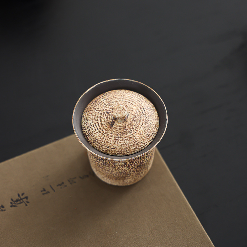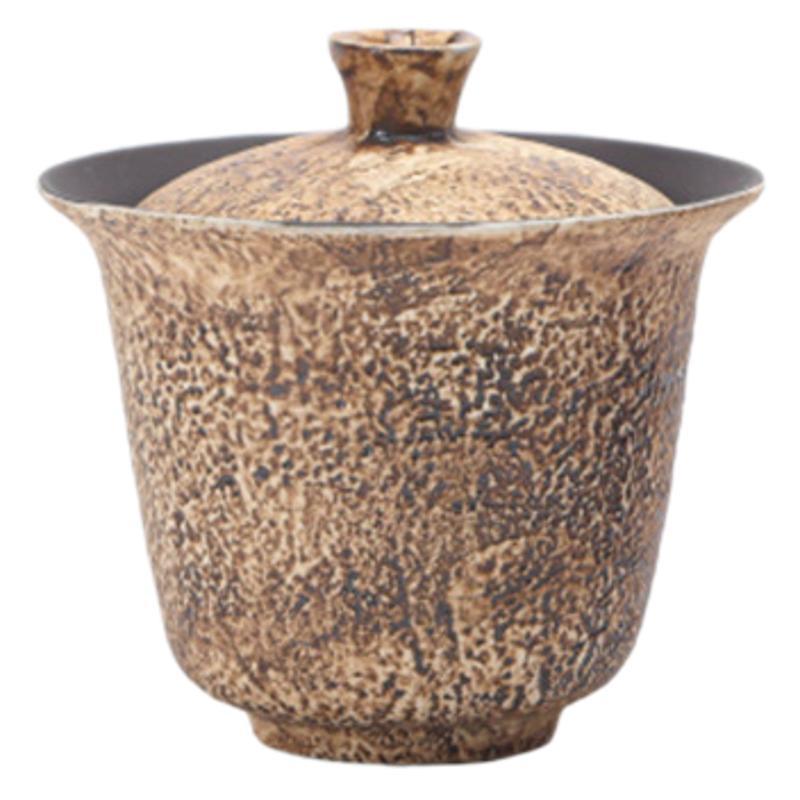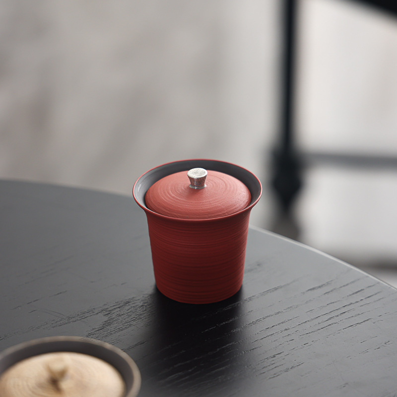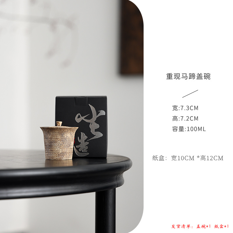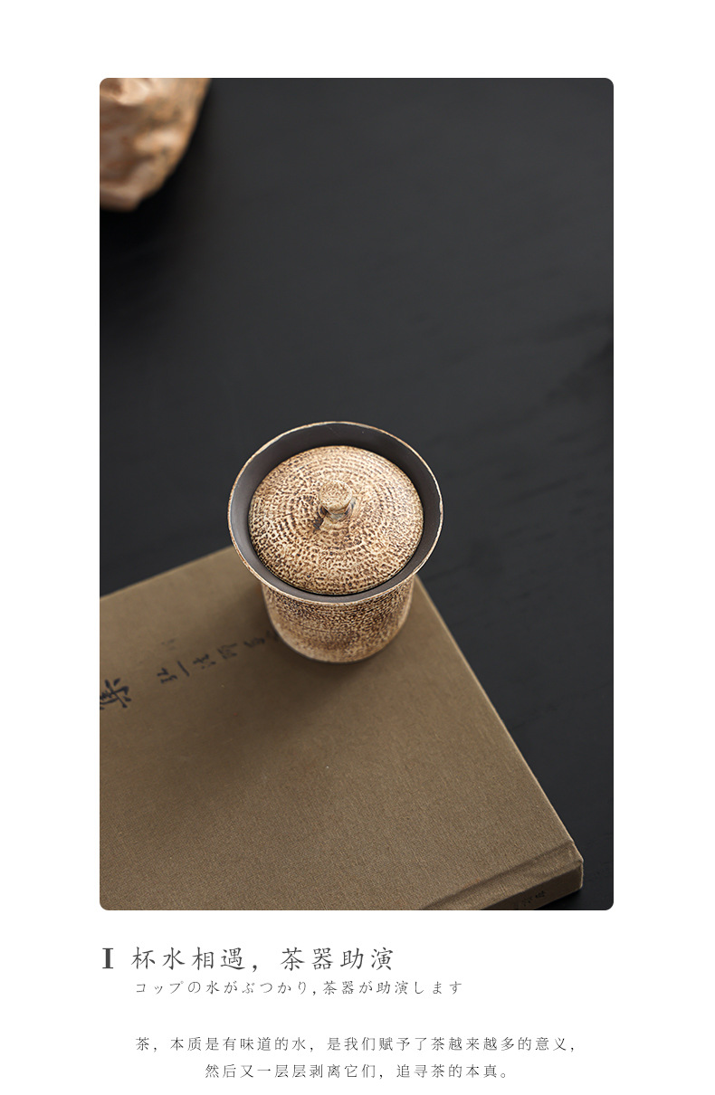 尘造复工手工粗陶马蹄盖碗高端泡茶器老岩泥家用手抓壶引粉鎏银