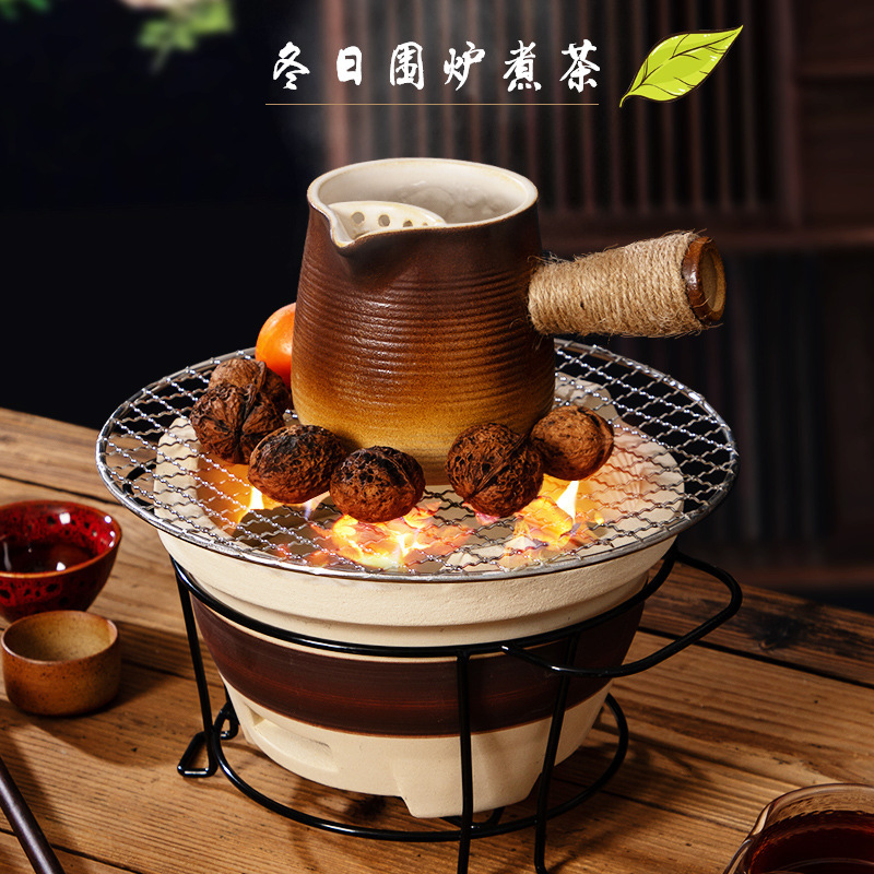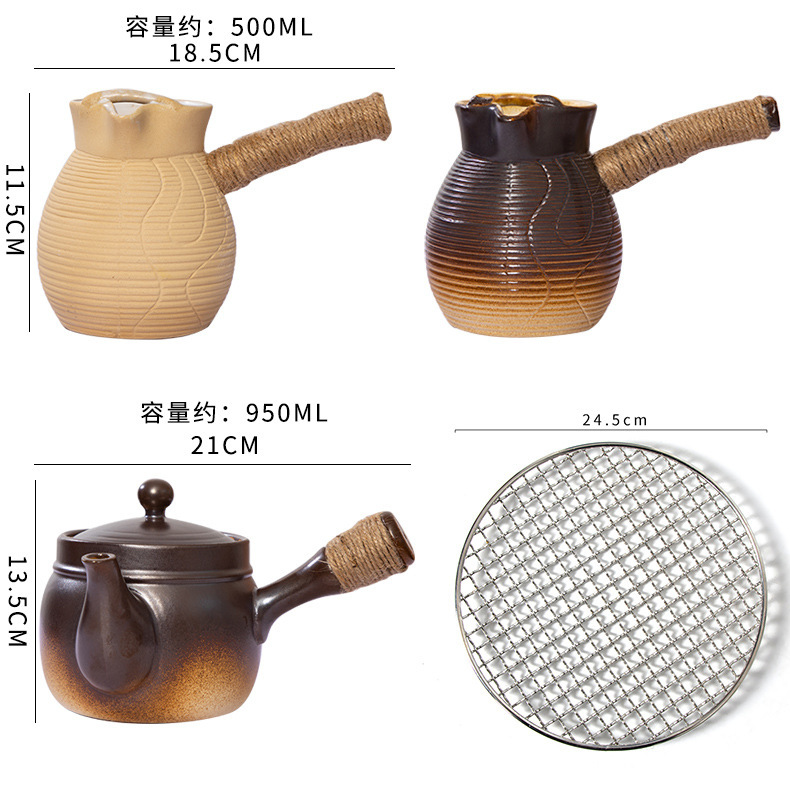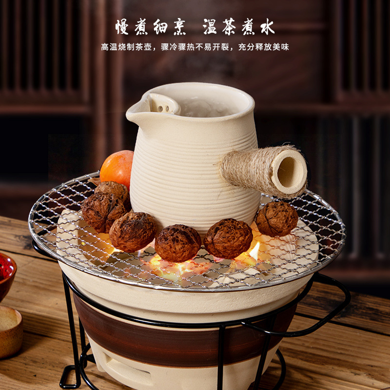 侧把烤茶罐陶泥煮茶壶罐罐茶煮茶器围炉煮茶套装家用大容量烤奶壶