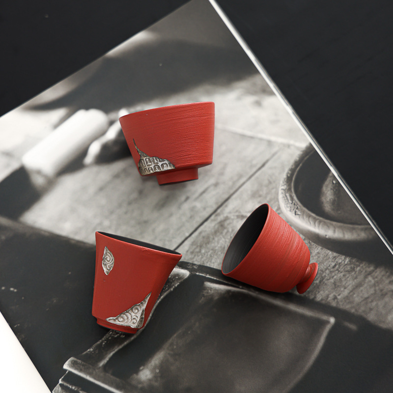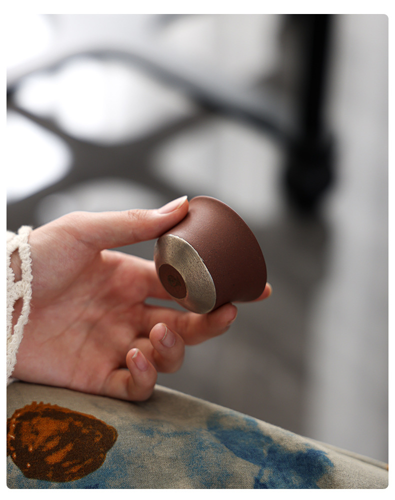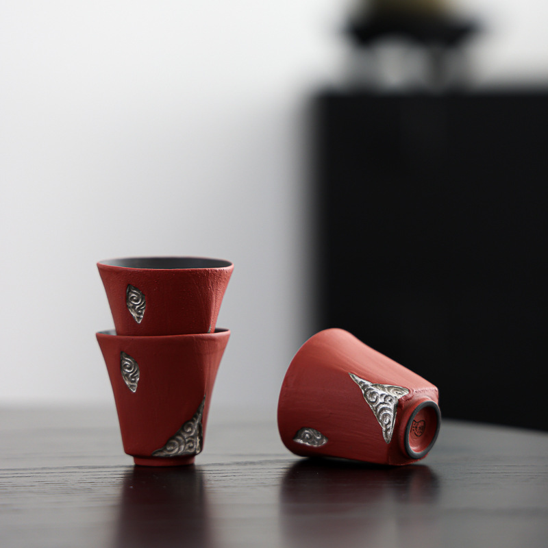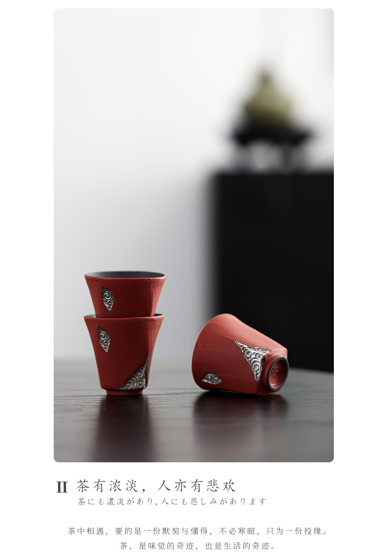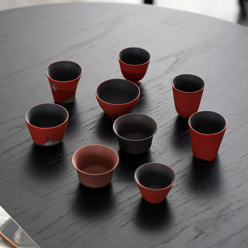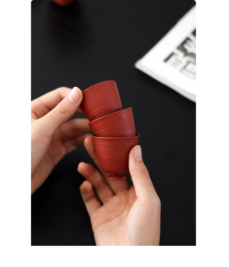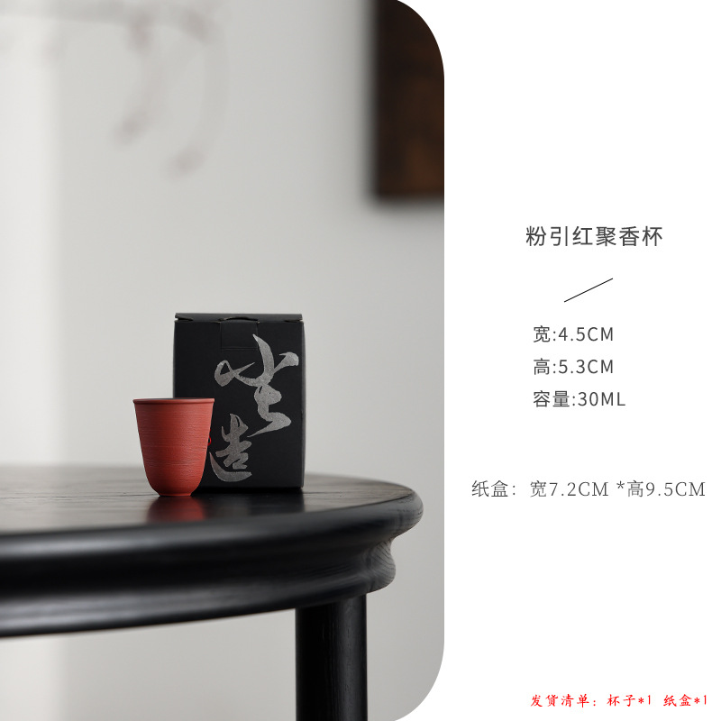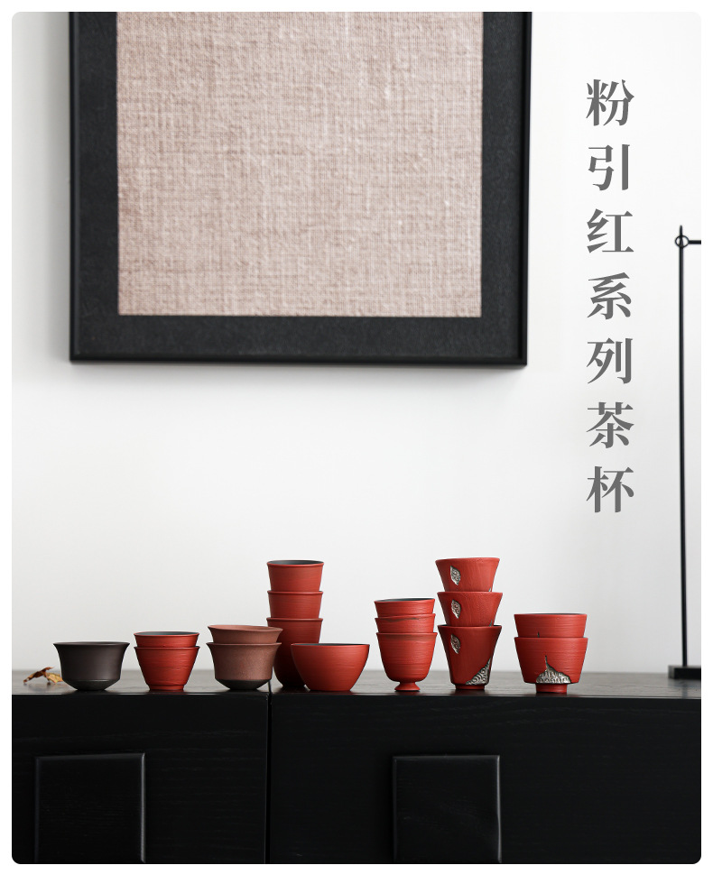 引粉红陶瓷茶杯主人杯老岩泥手工单杯轻奢茶具复古品名杯个人杯