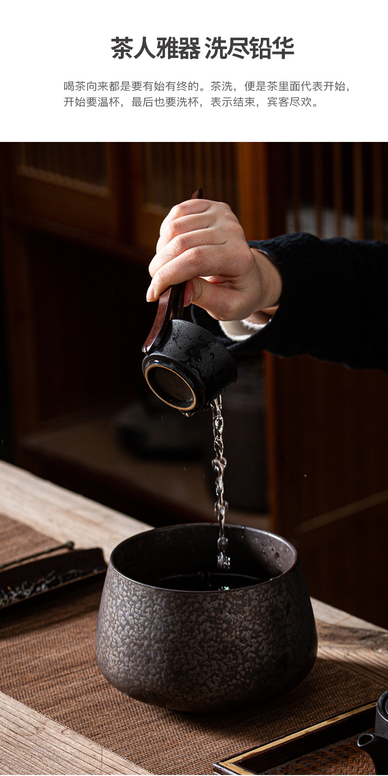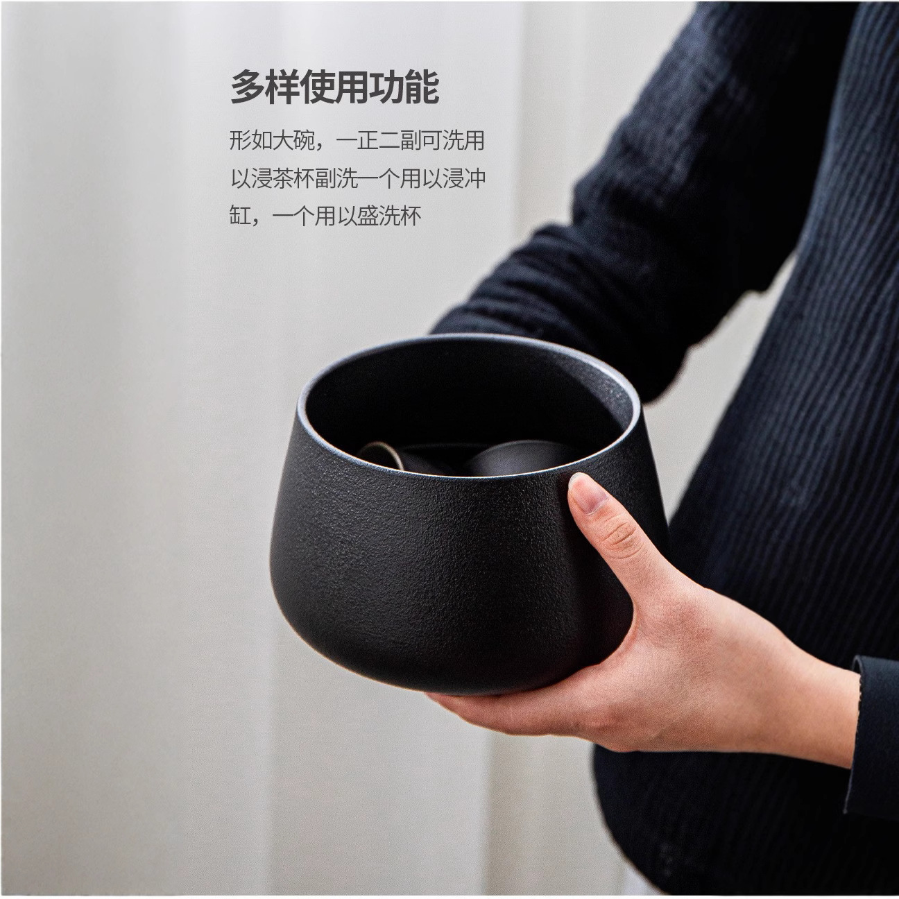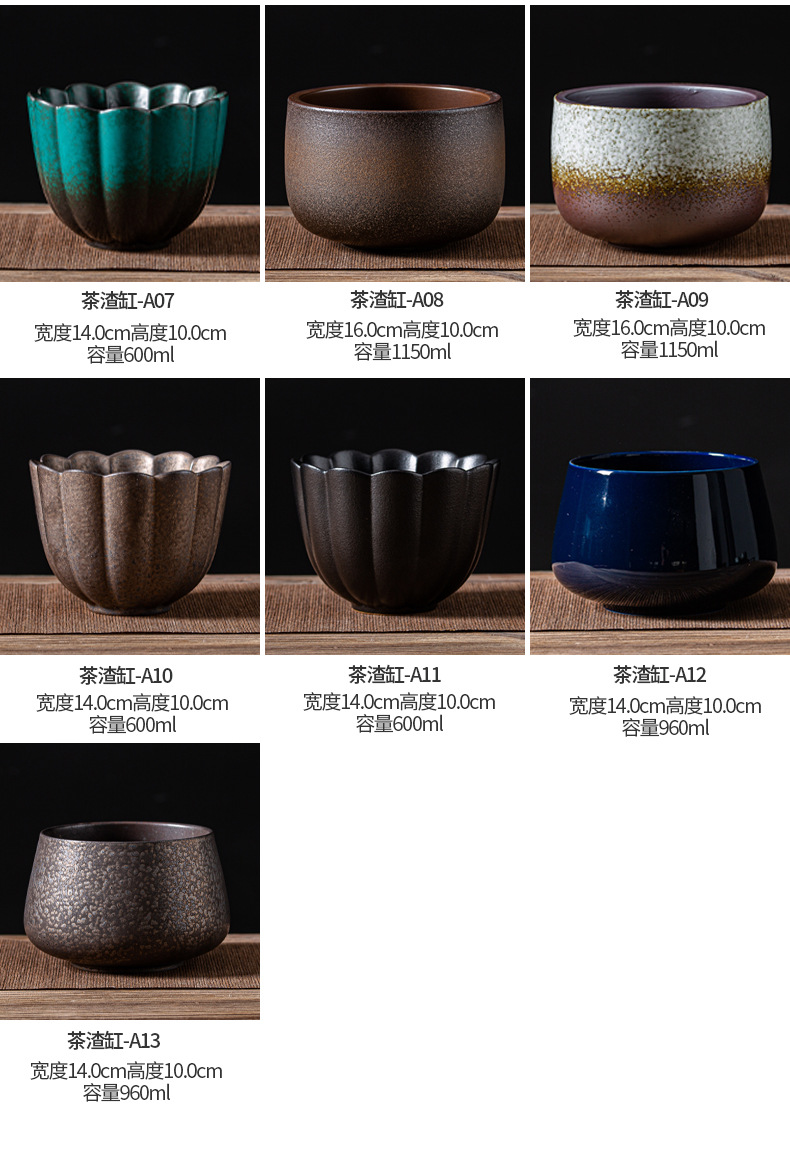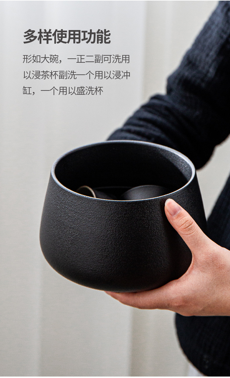 陶瓷茶洗大号日式禅意家用黑陶功夫茶具配件茶盆建水茶盂水盂笔洗