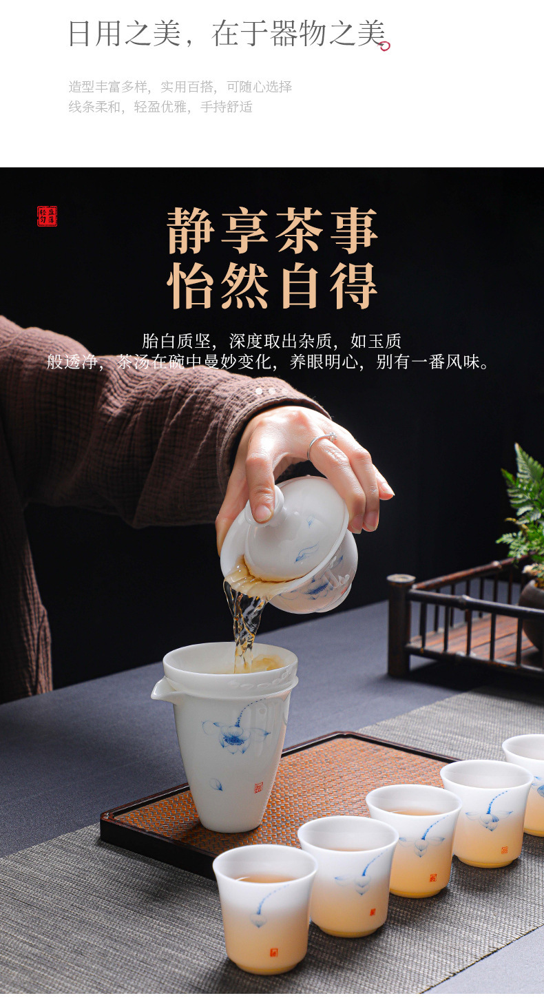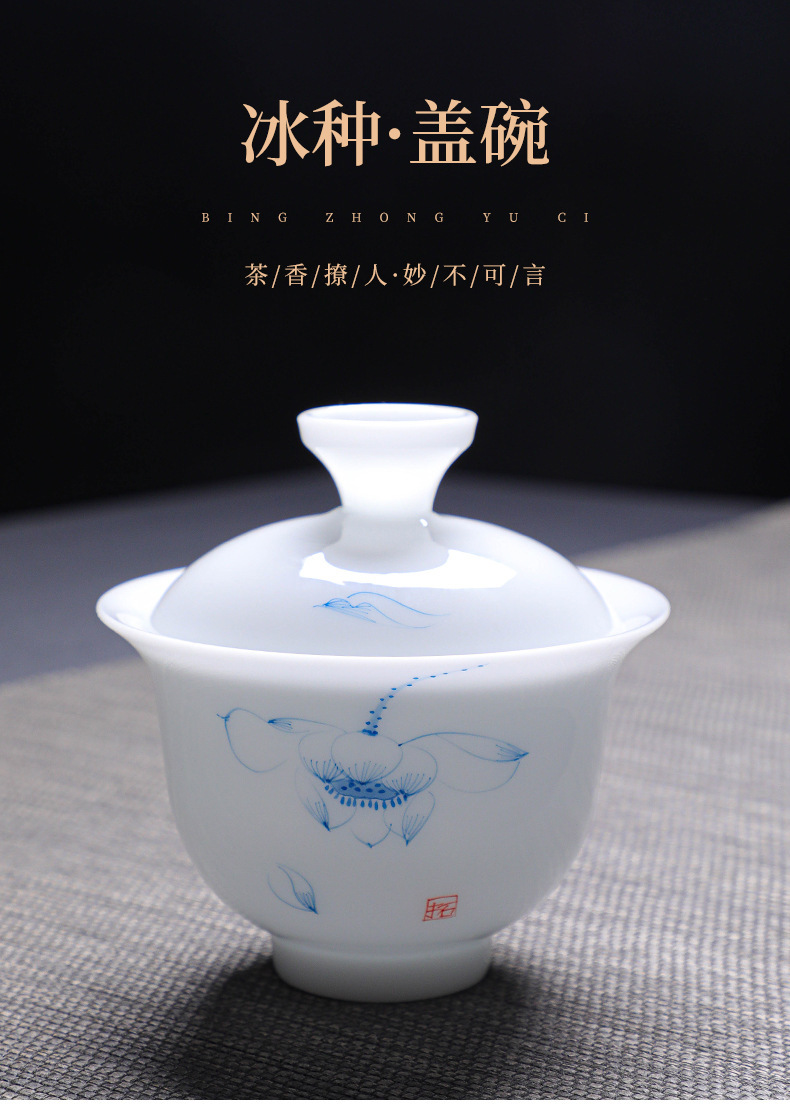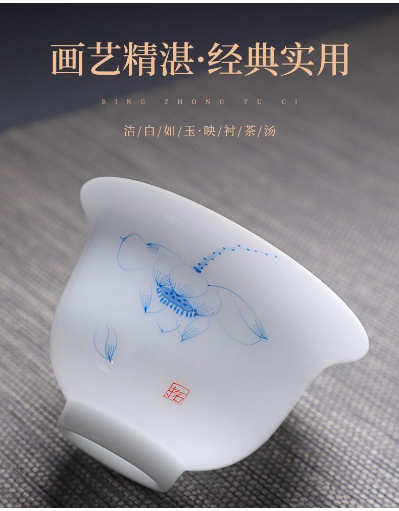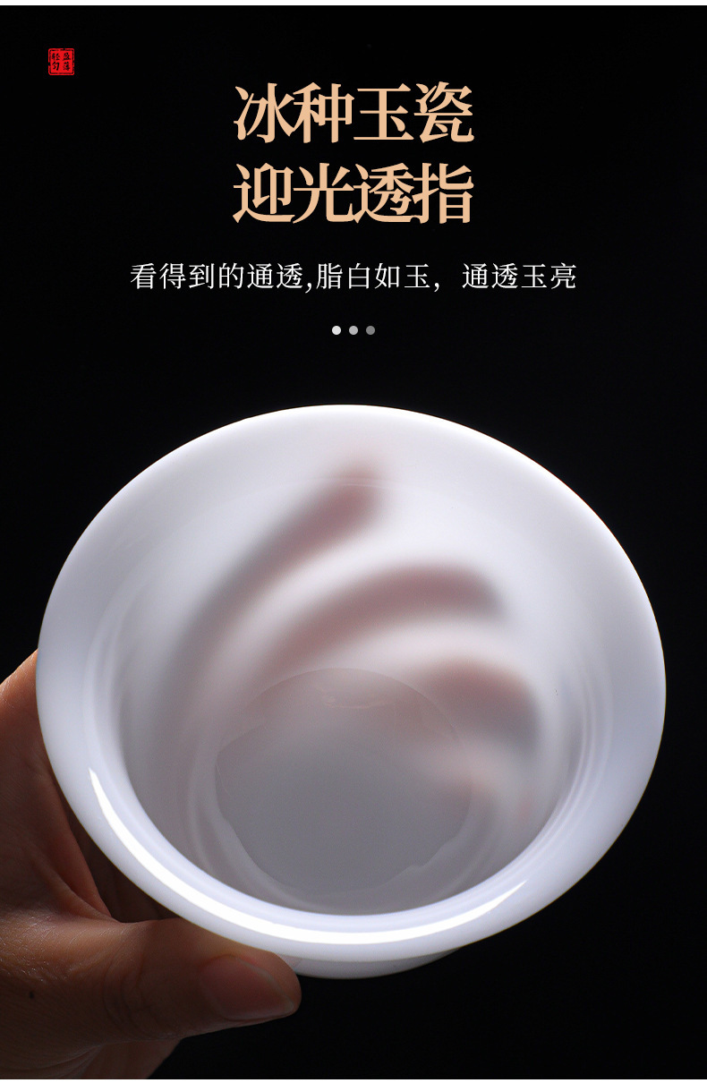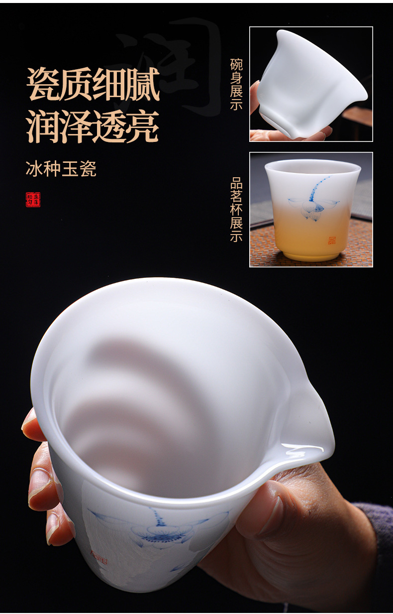手绘莲花冰种玉功夫茶具套装高档轻奢羊脂玉白瓷盖碗企业商务送礼