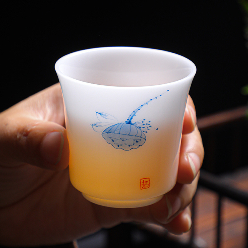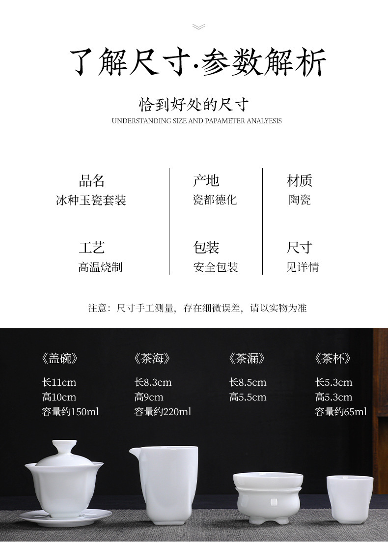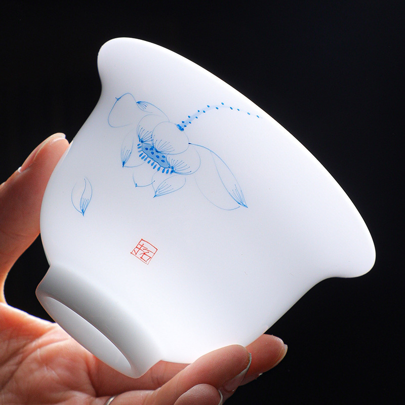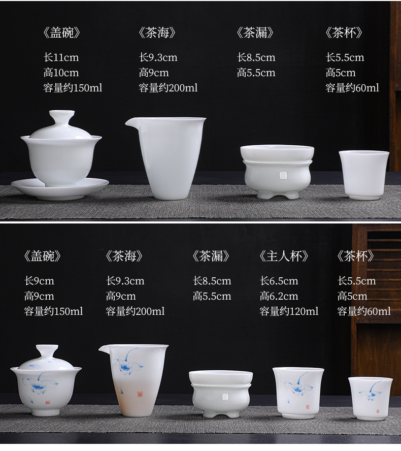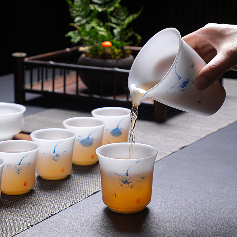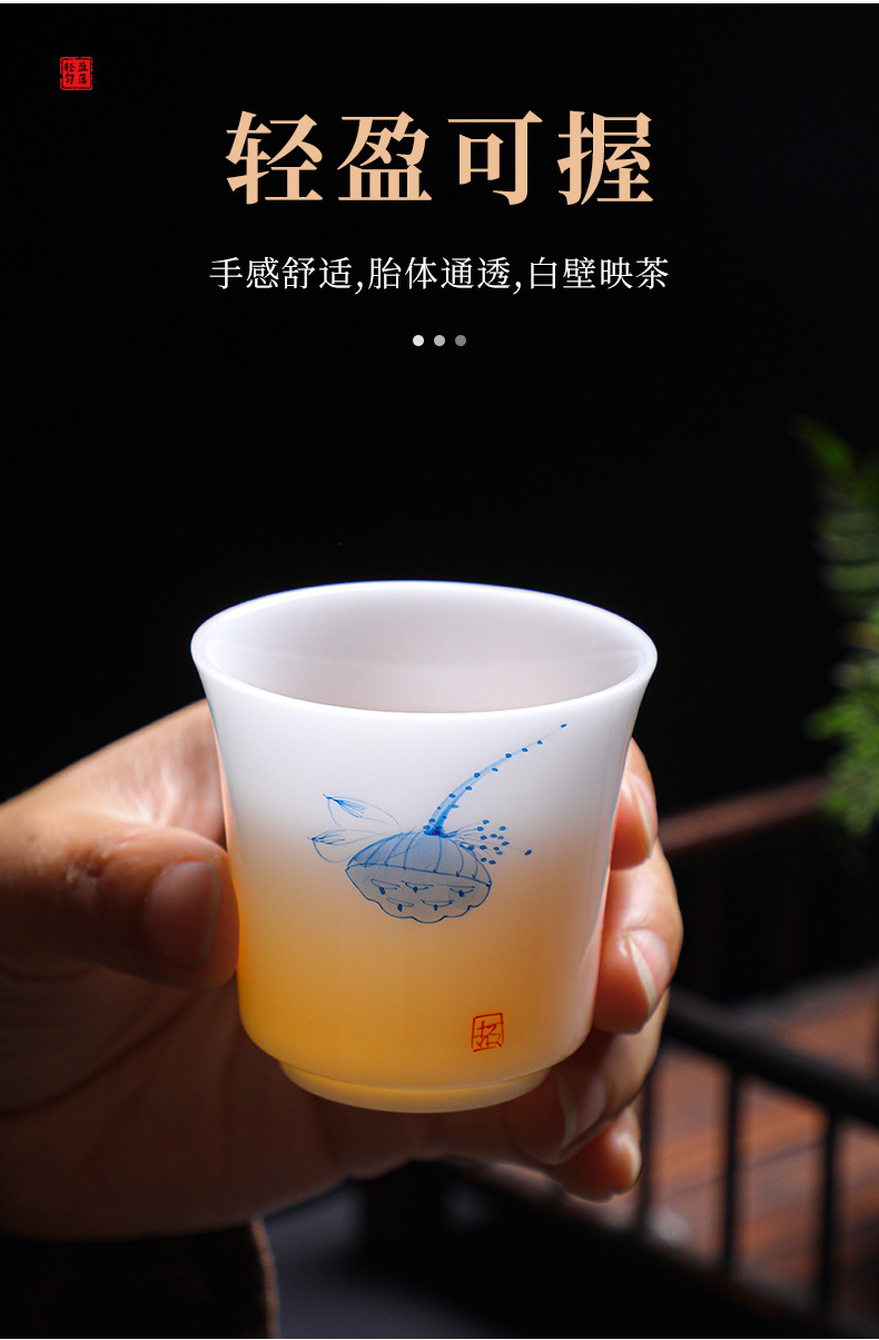 手绘莲花冰种玉功夫茶具套装高档轻奢羊脂玉白瓷盖碗企业商务送礼