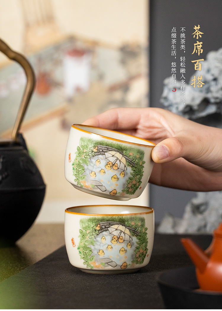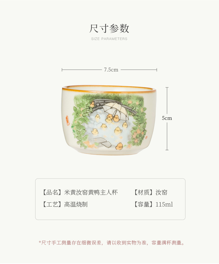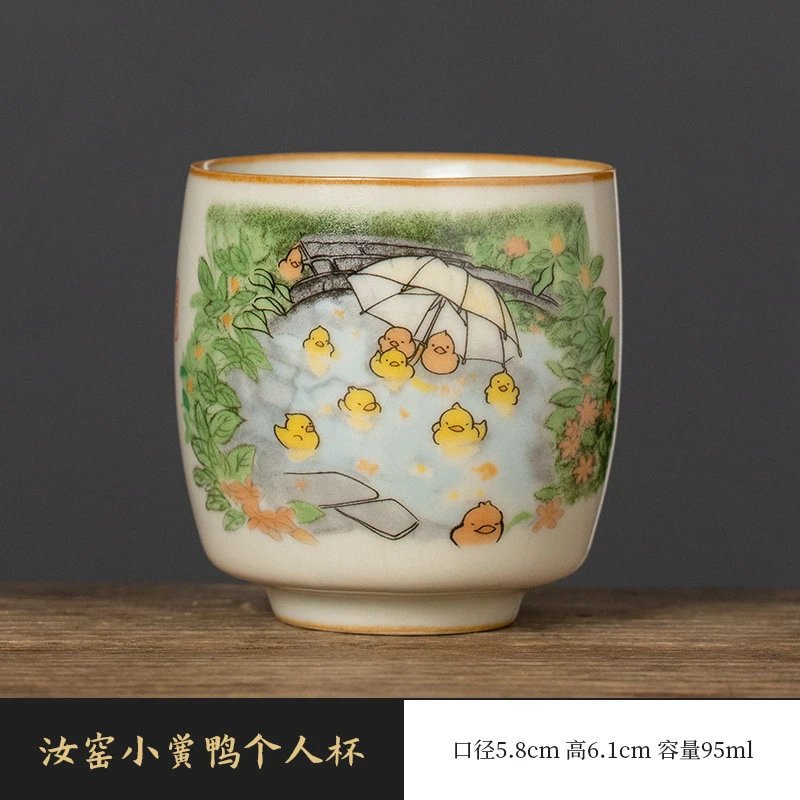 汝窑小黄鸭茶杯主人杯陶瓷家用高档功夫茶具品茗杯喝茶杯单个