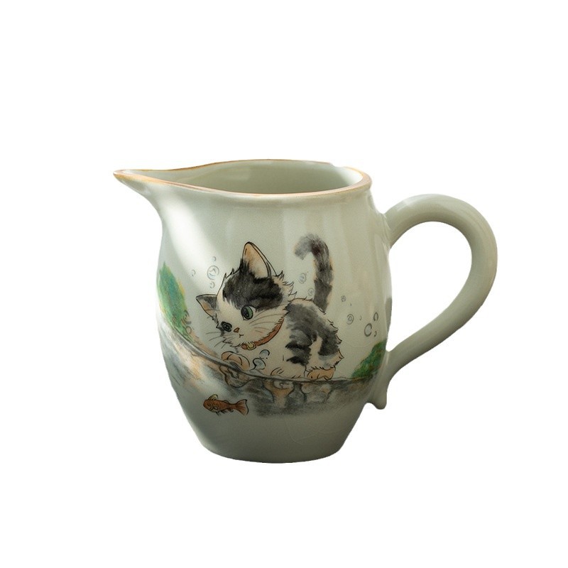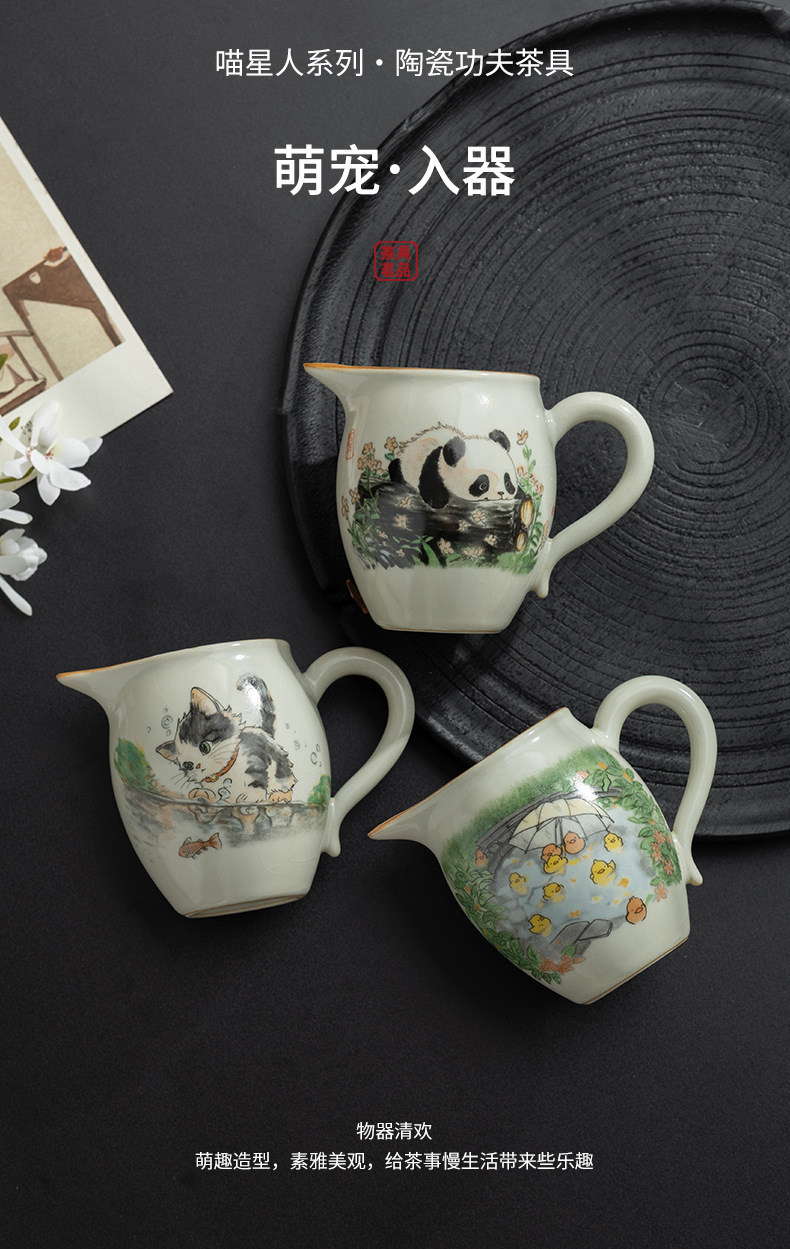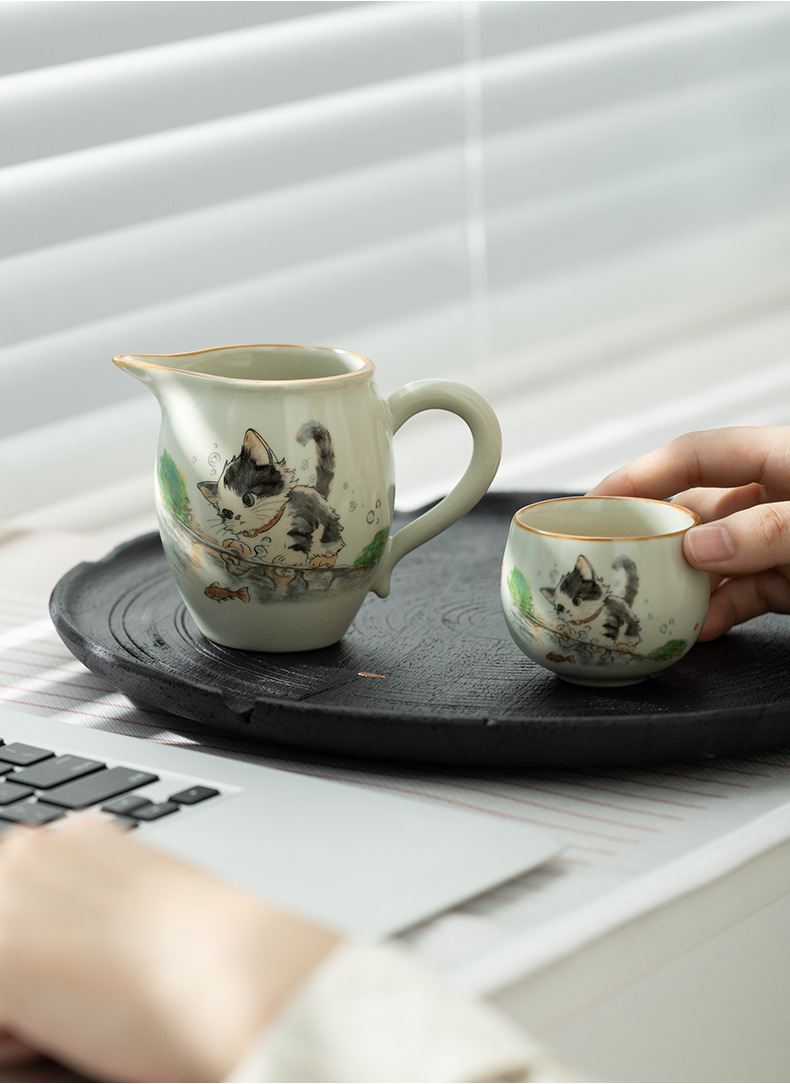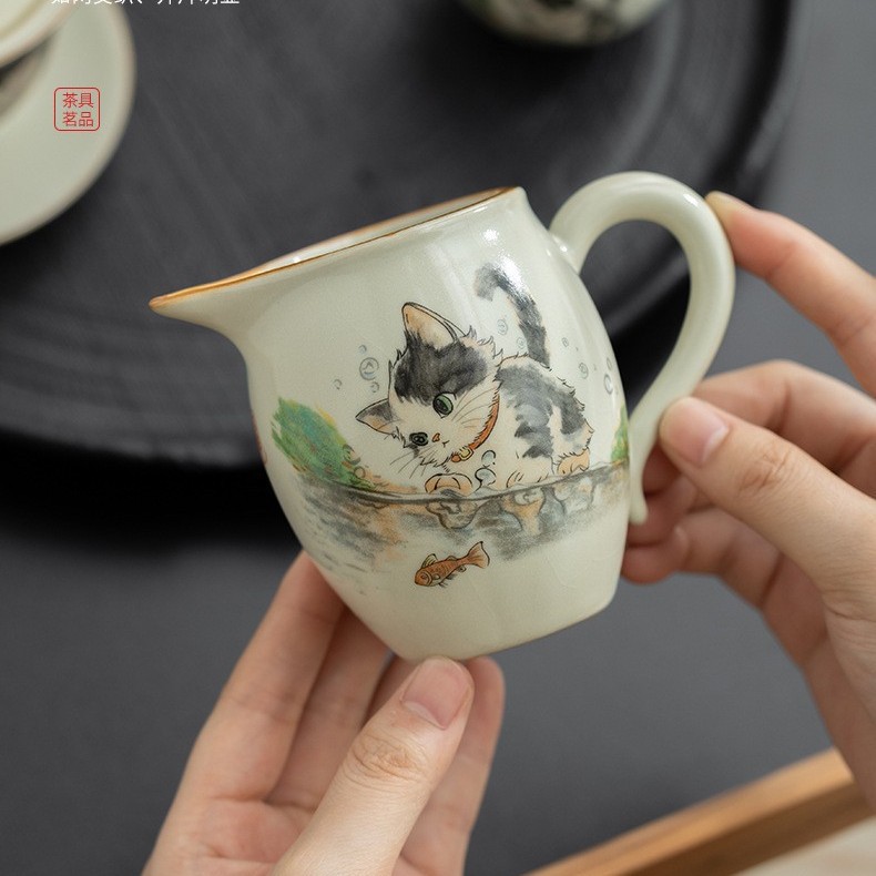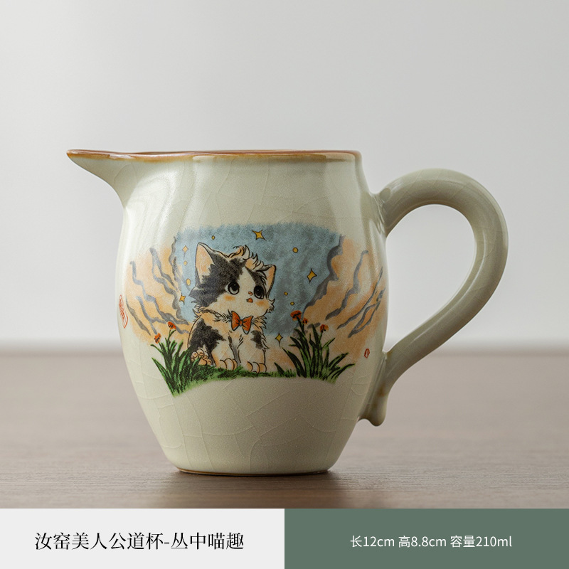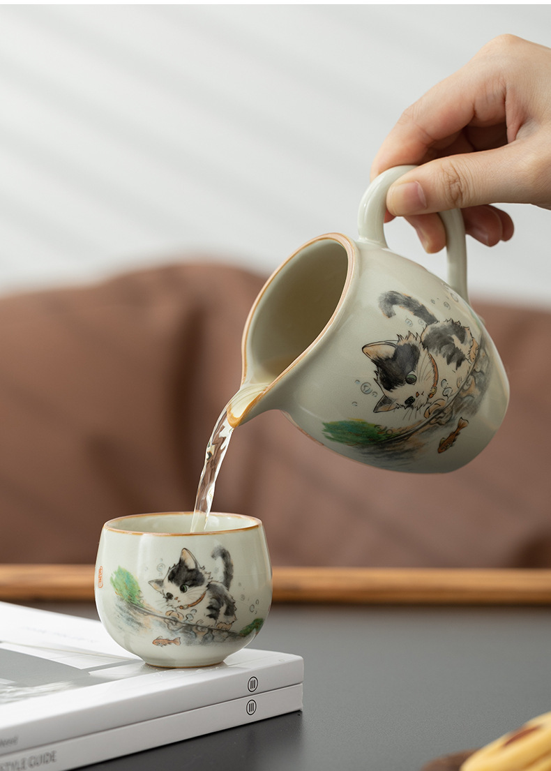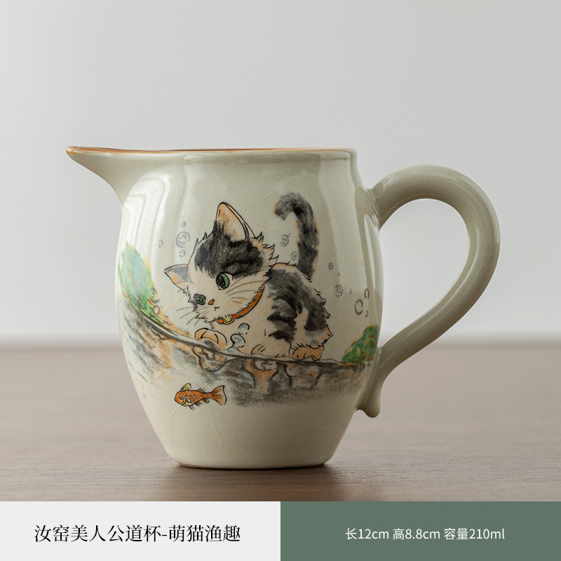 汝窑萌猫三才盖碗高档单个茶杯带盖防烫陶瓷茶具泡茶碗可印制LOGO