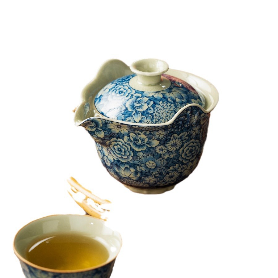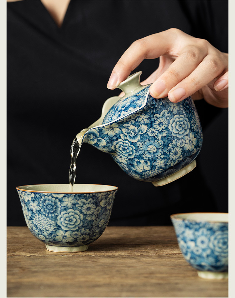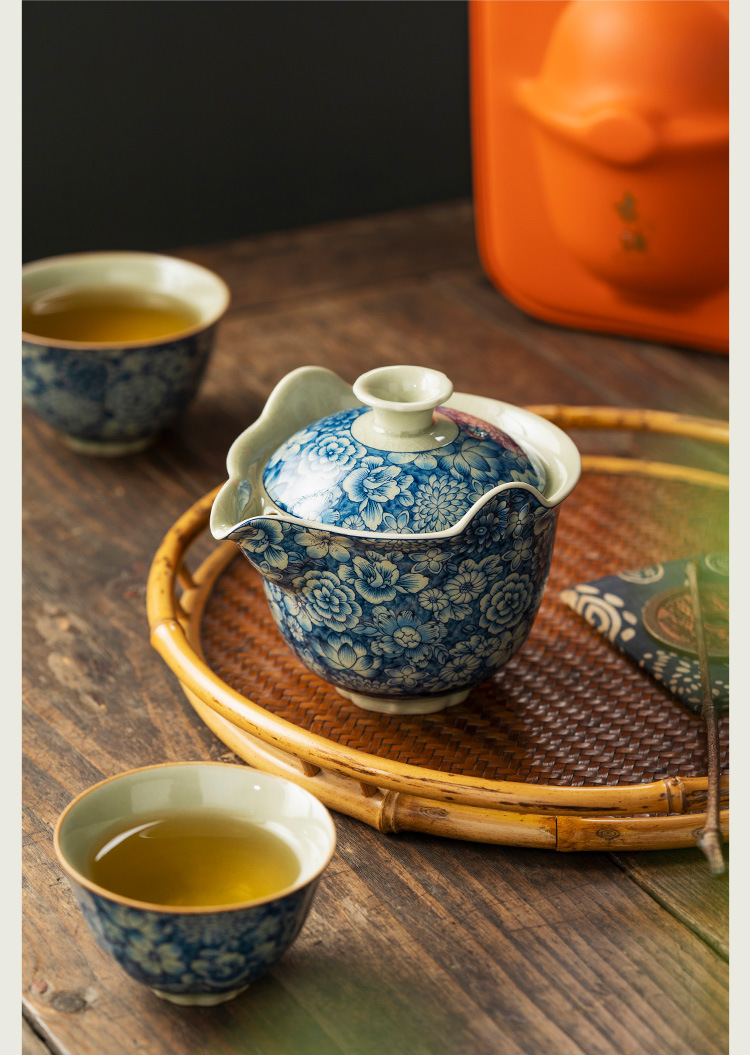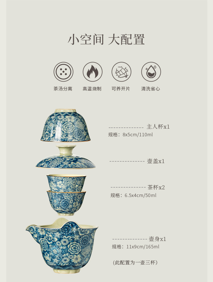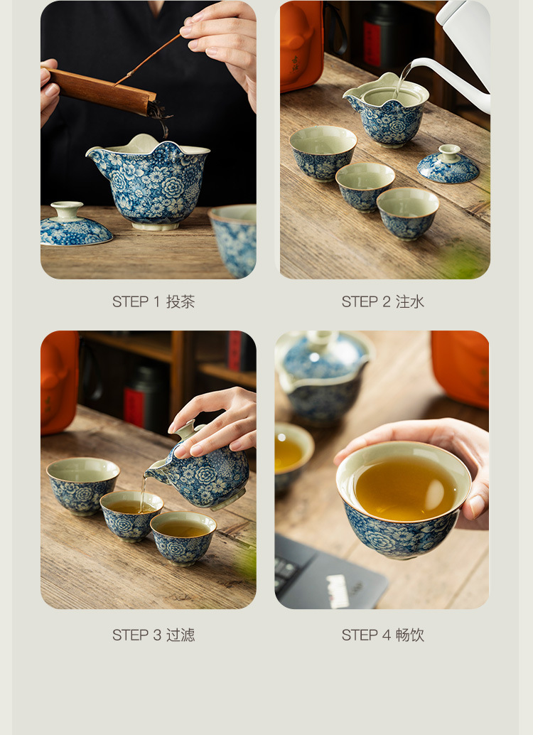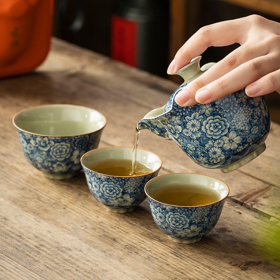 老陶泥青花旅行茶具套装便携式快客杯随身包一壶二杯伴手礼定 制