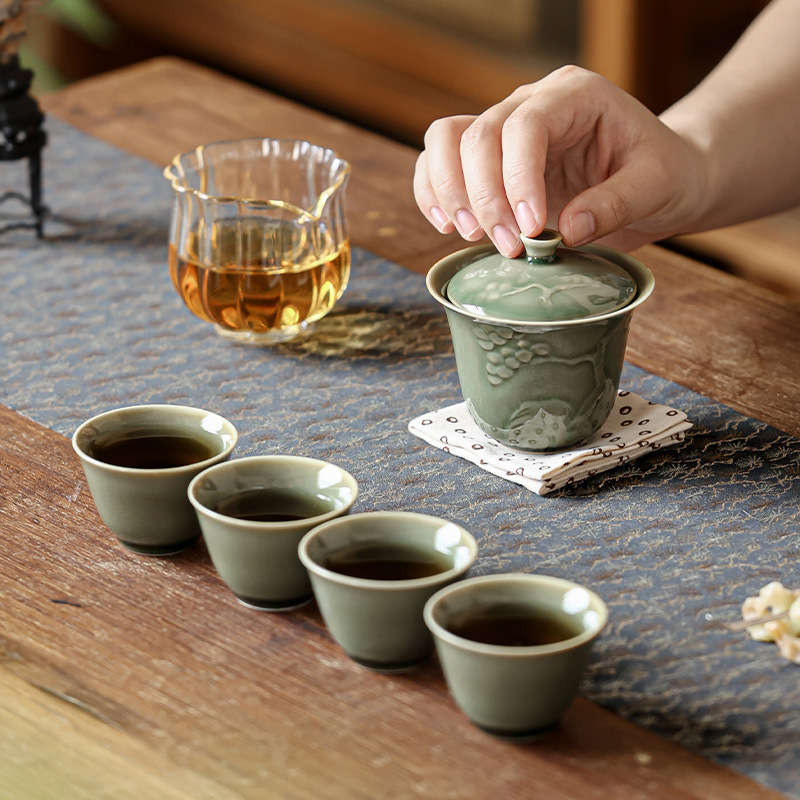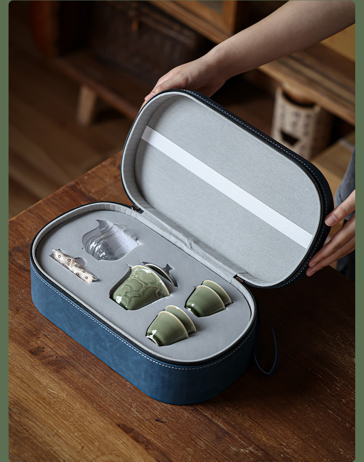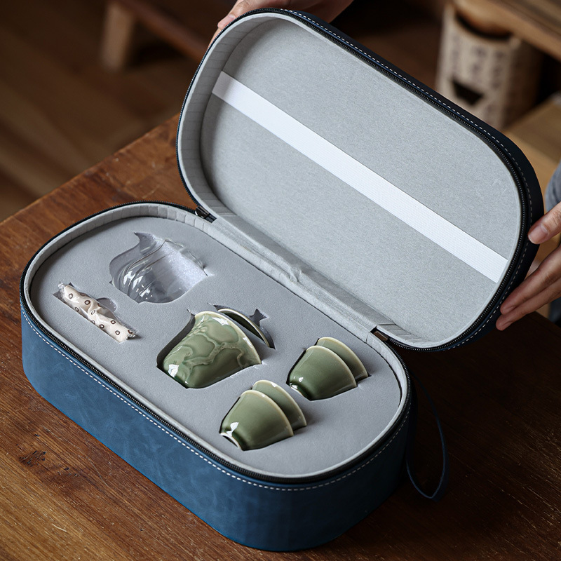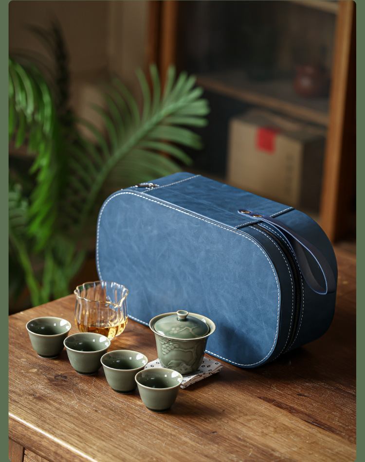 越窑青瓷旅行功夫茶具套装收纳包户外喝茶随身便携式泡茶露营茶具
