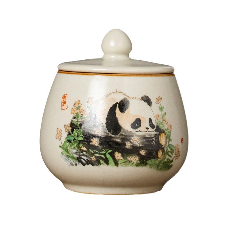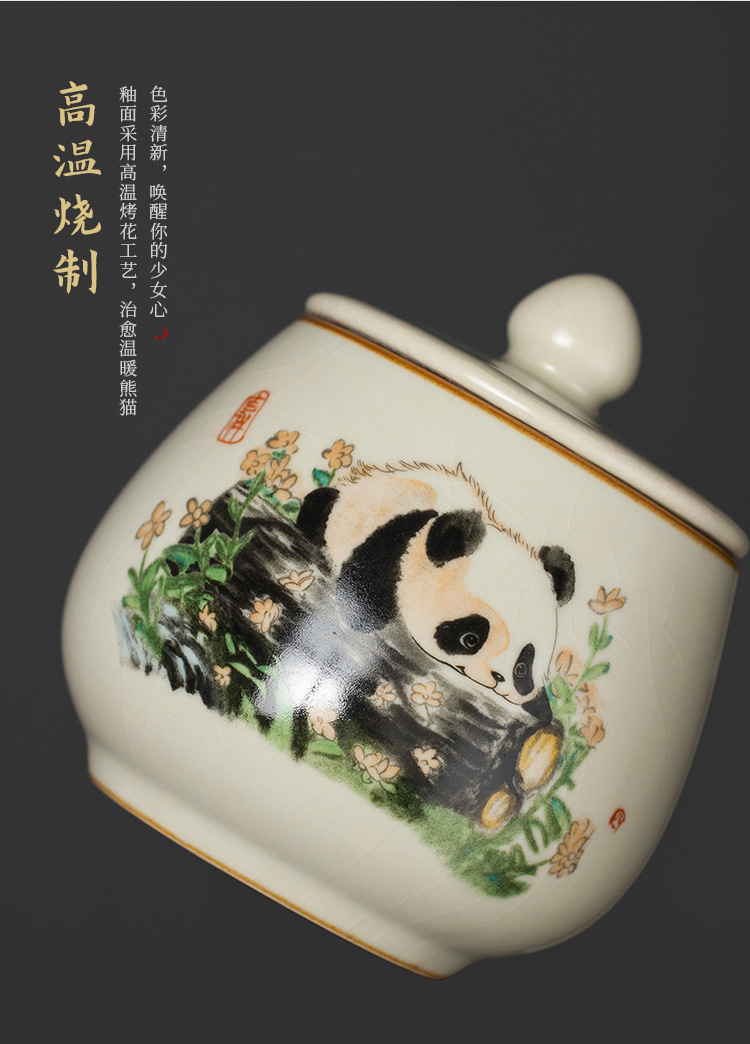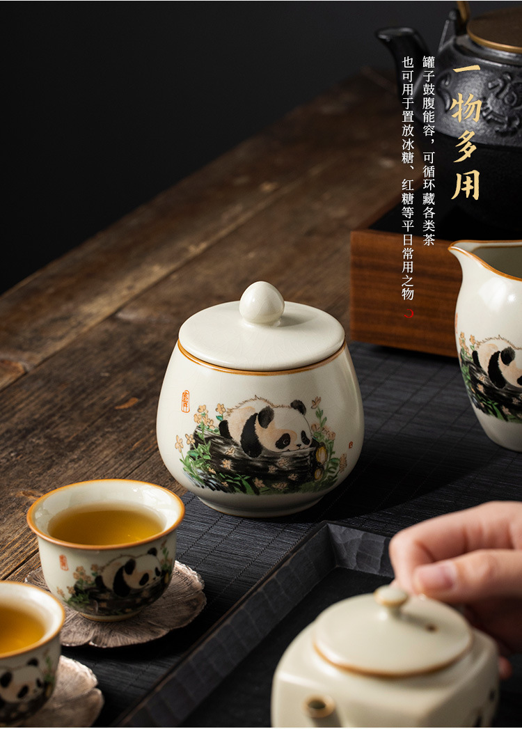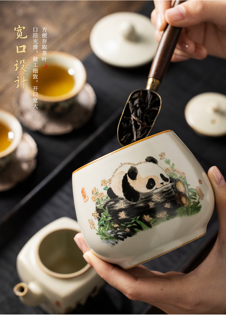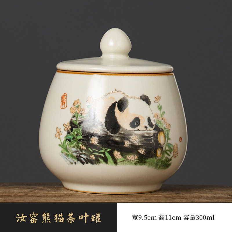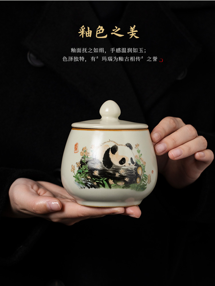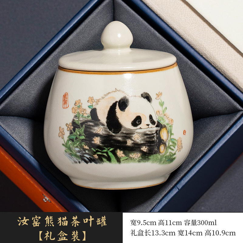 汝窑熊猫茶叶罐陶瓷密封储存罐高档茶叶包装盒空礼盒丁制开片可养