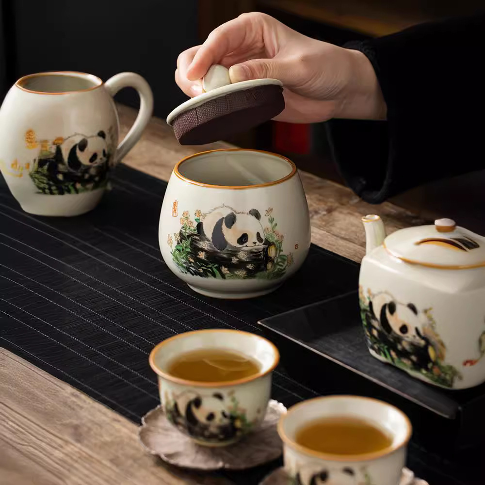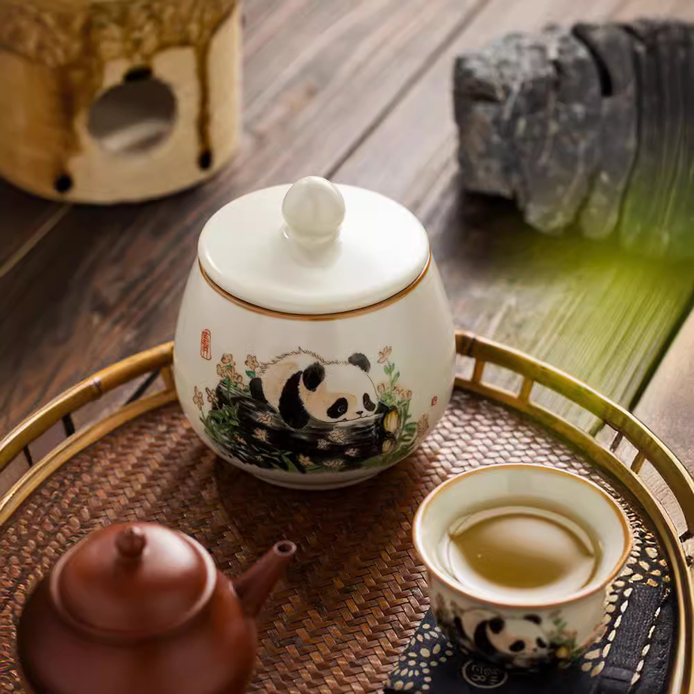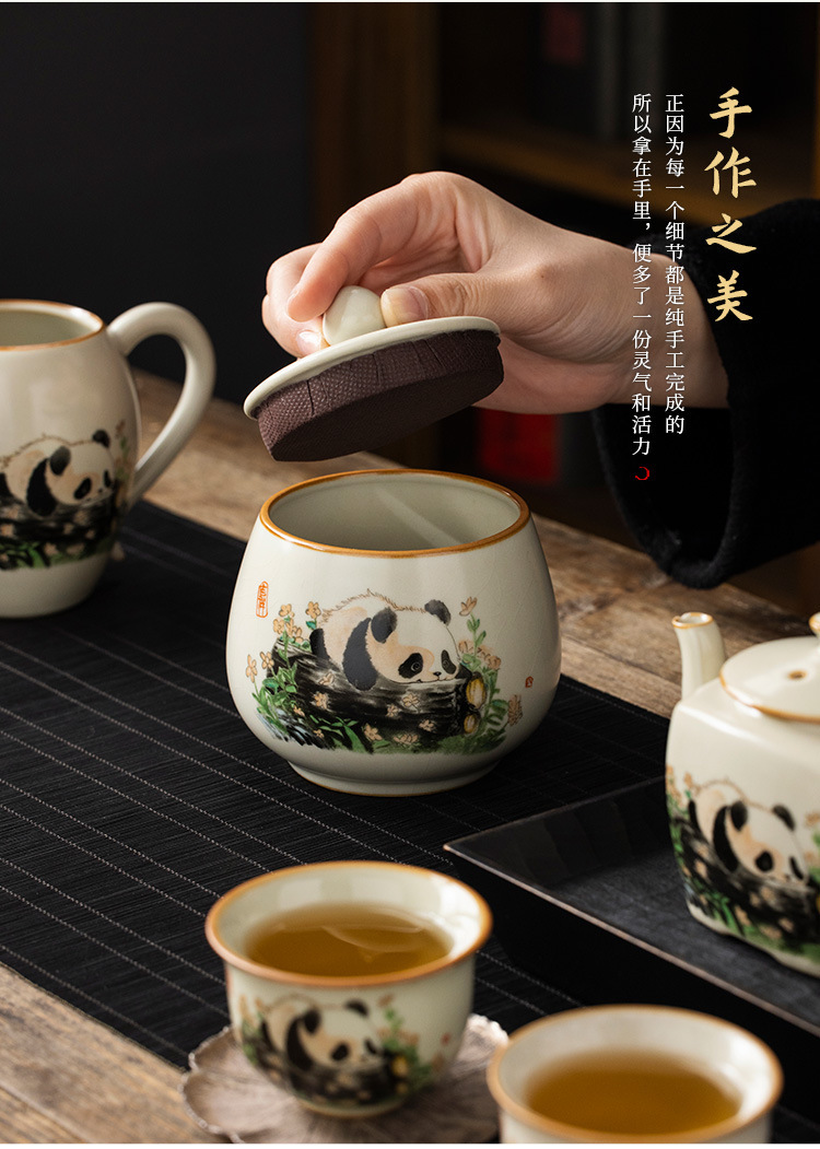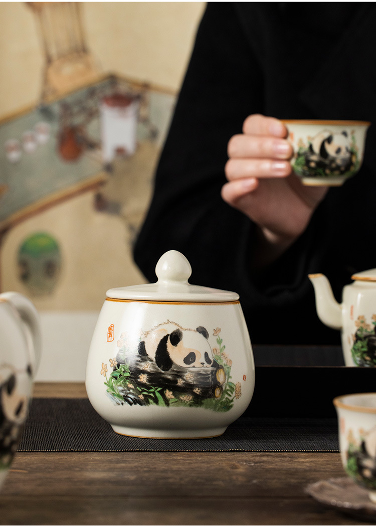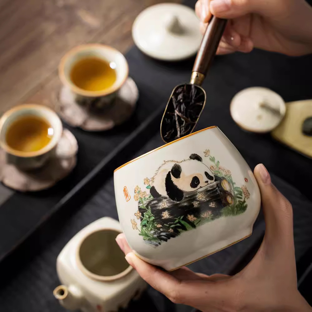 汝窑熊猫茶叶罐陶瓷密封储存罐高档茶叶包装盒空礼盒丁制开片可养