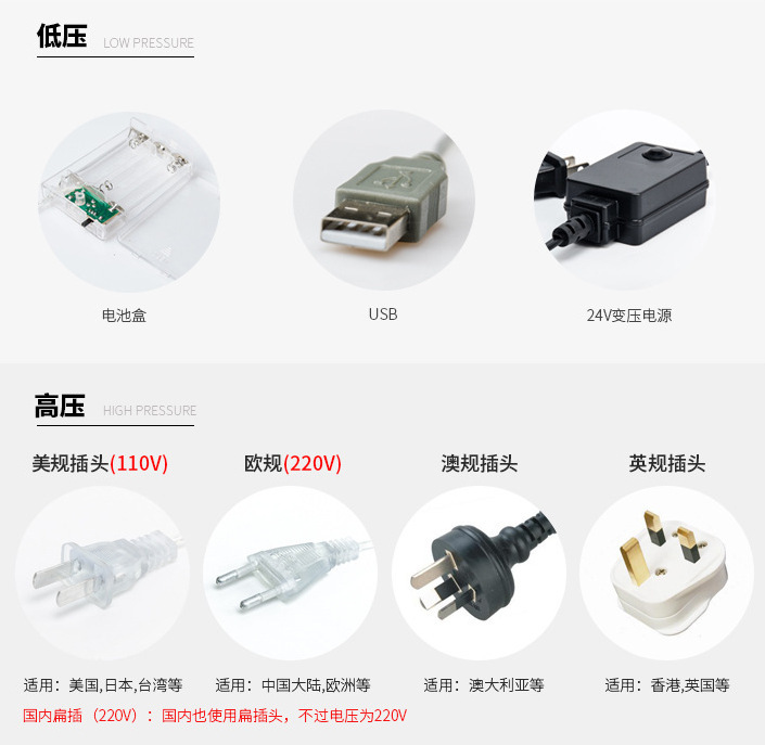 | 220v flat plug 10 m 100 lights can not be connected in series(220V扁插10米100灯不可串联) | USD $1.2 | 95326 piece available |