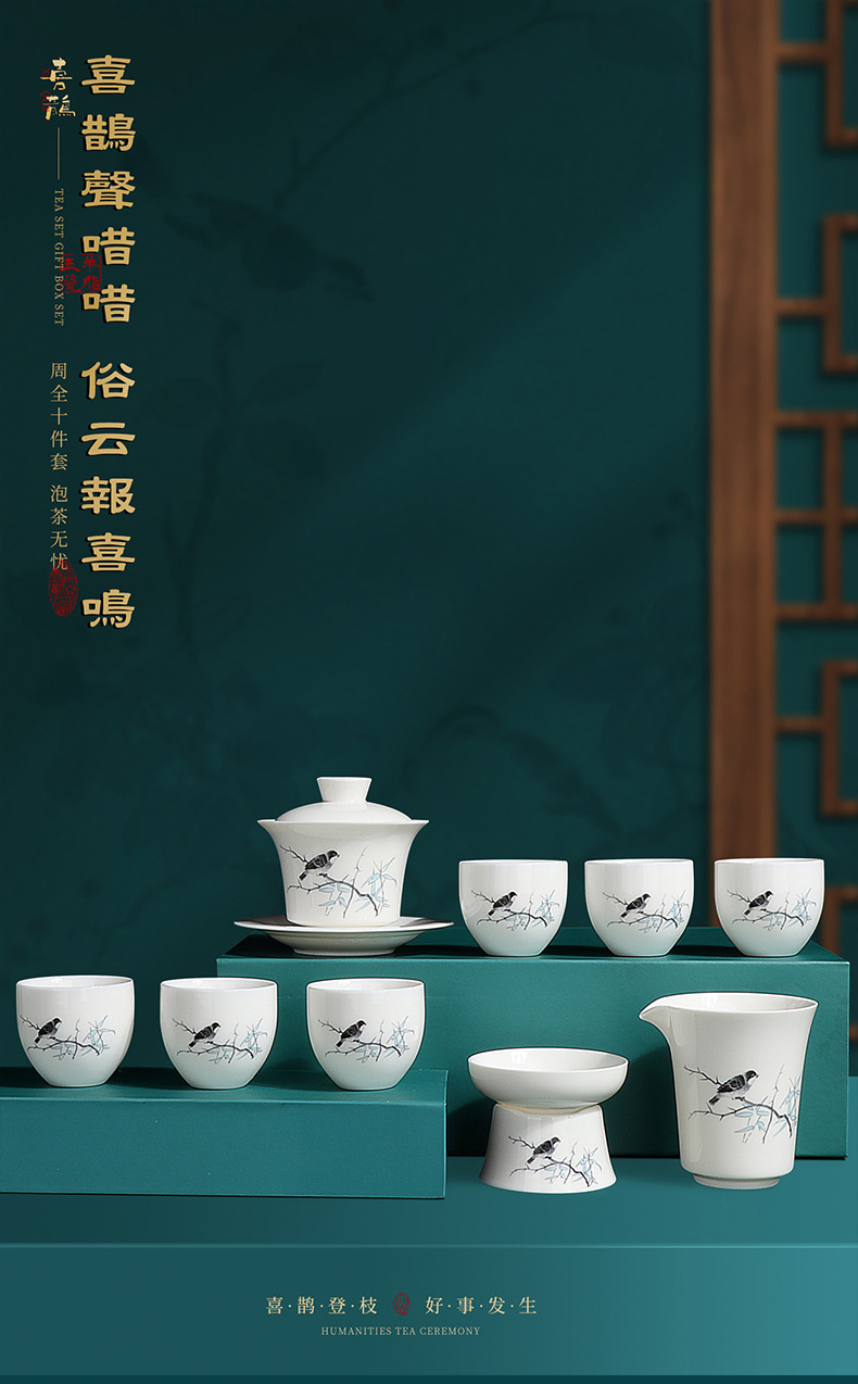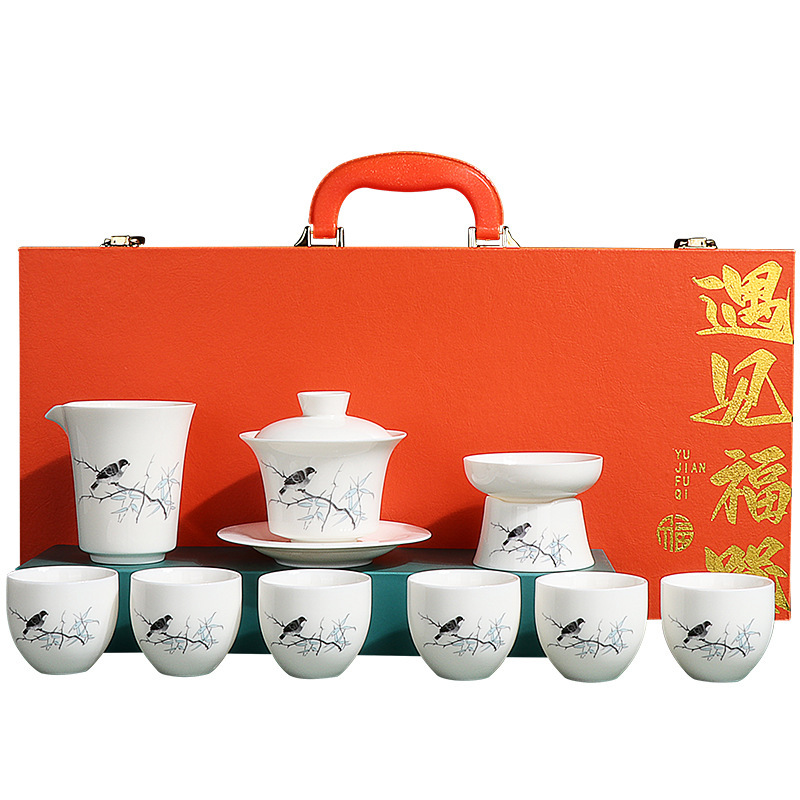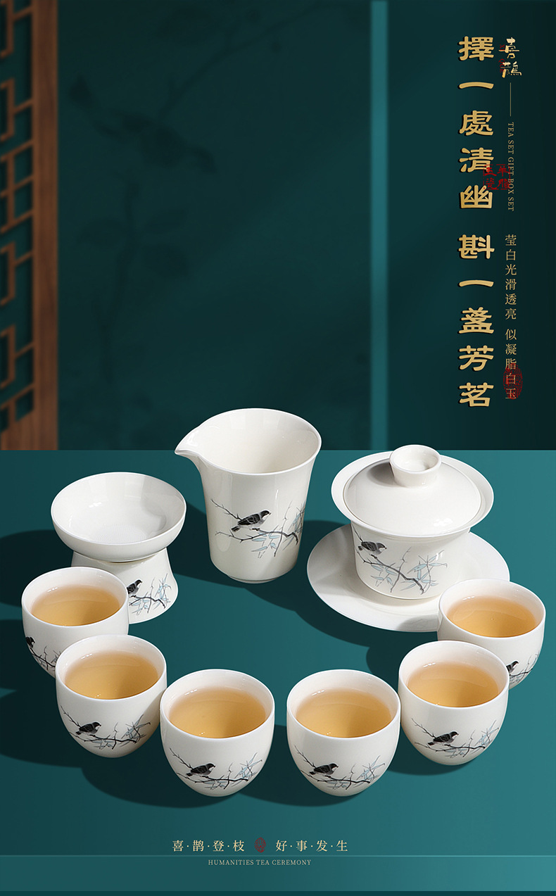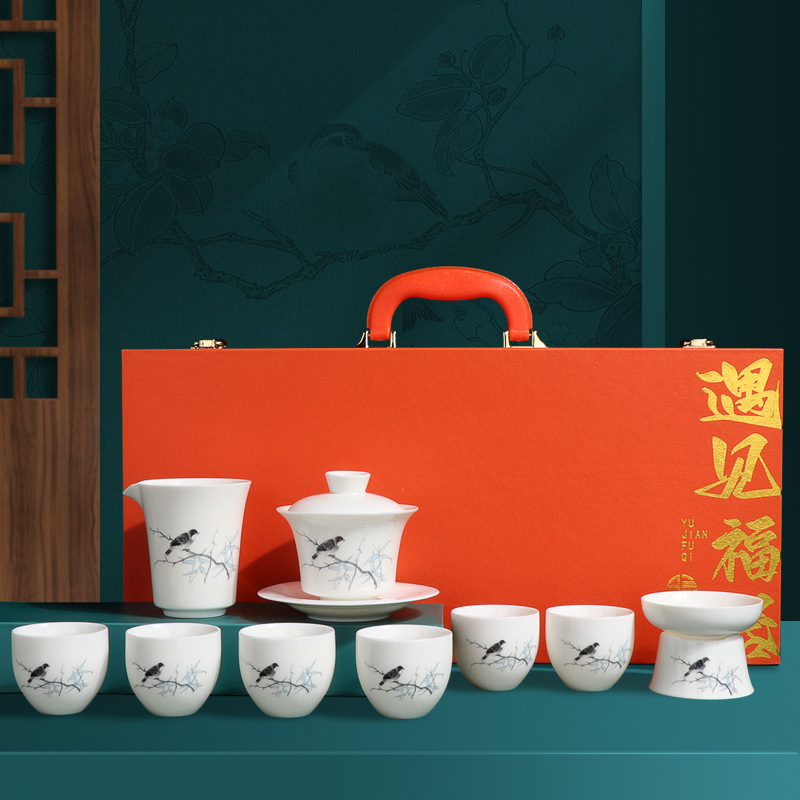 德化羊脂玉国风白瓷茶具套装陶瓷功夫茶具礼盒装商务伴手礼品logo