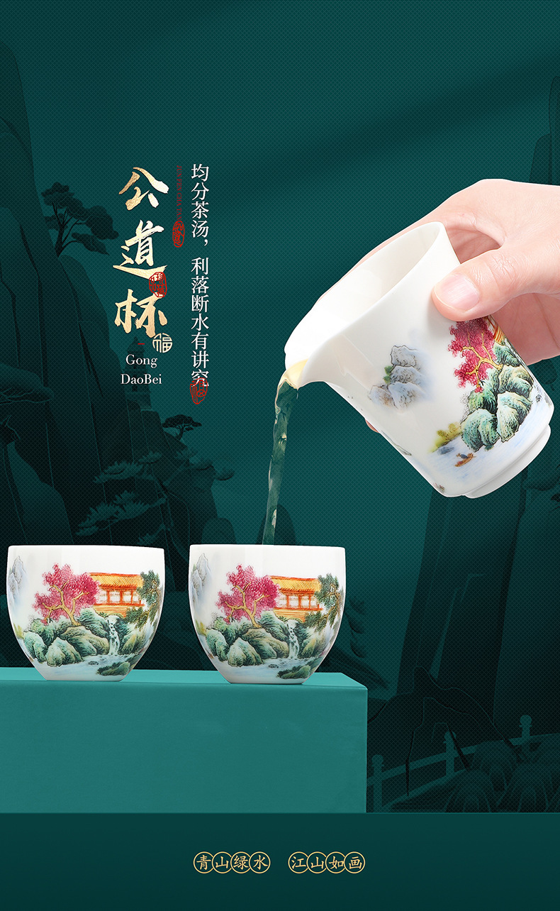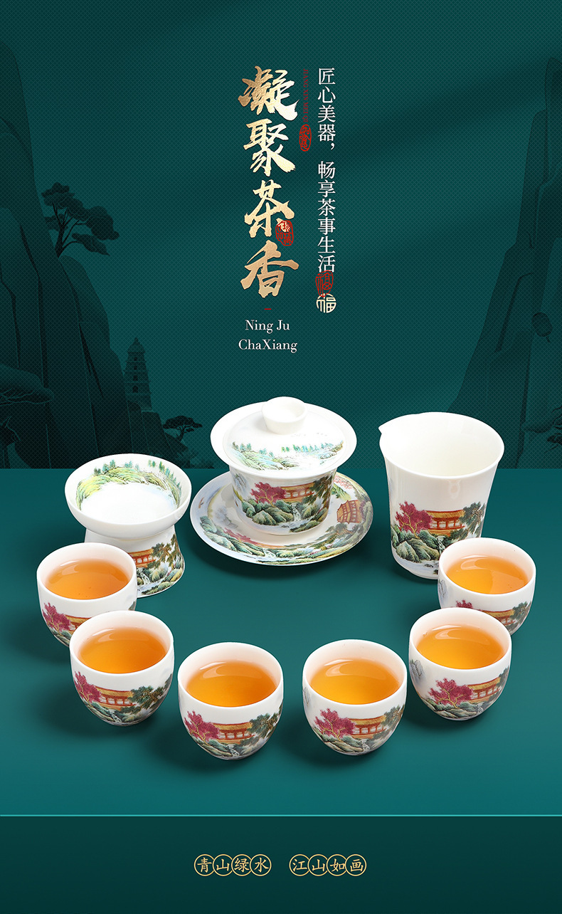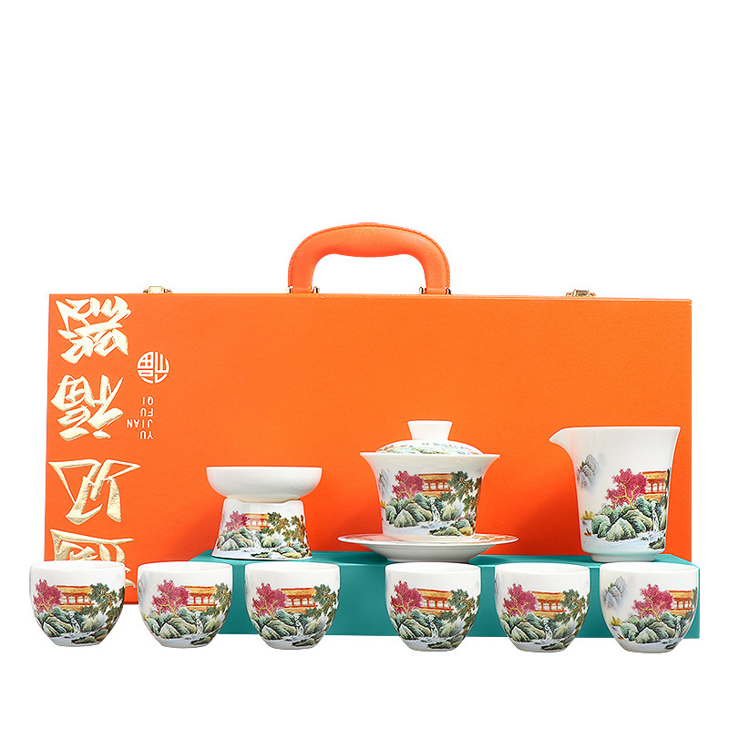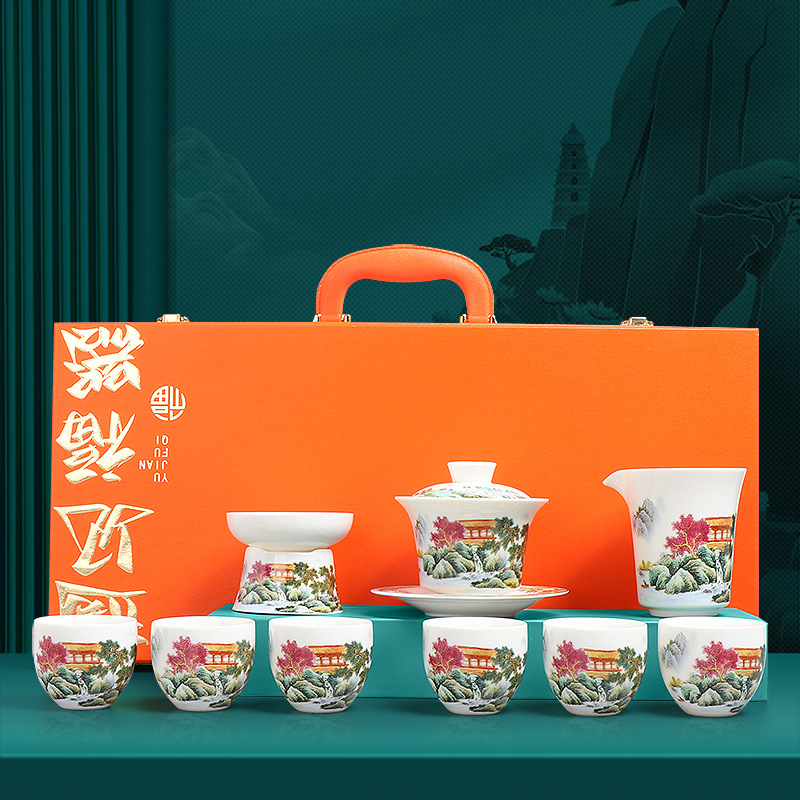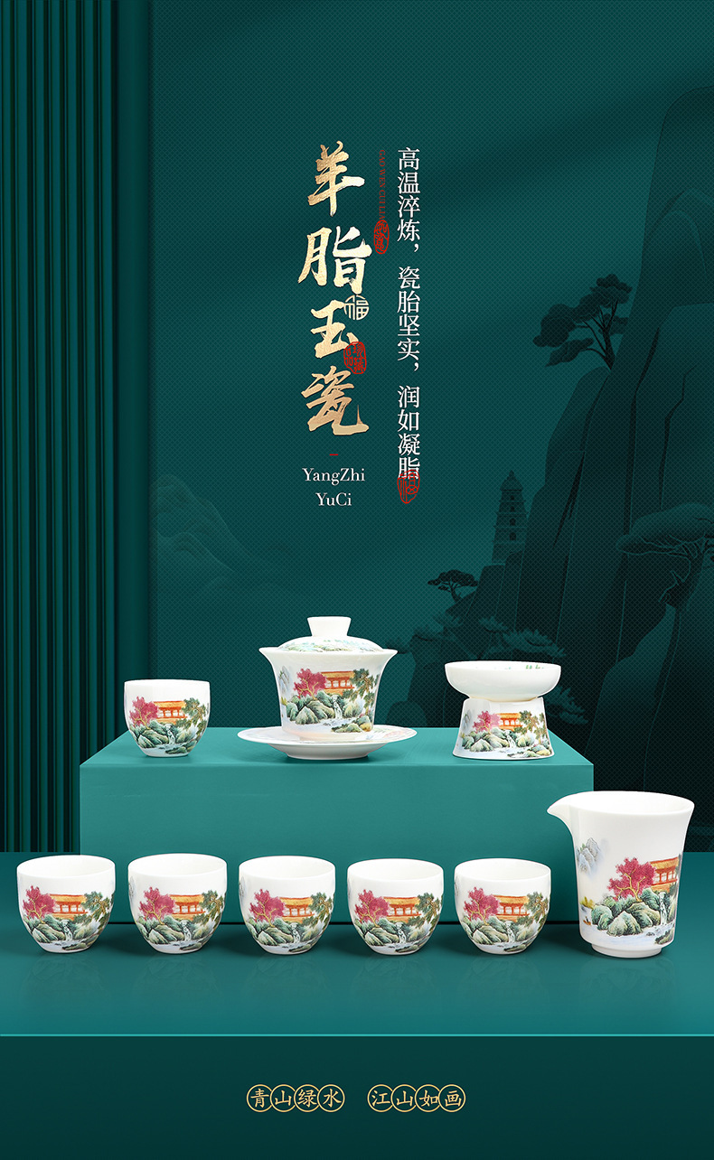 羊脂玉白瓷盖碗茶具套装功夫茶具家用高档三才盖碗千山万水礼品瓷