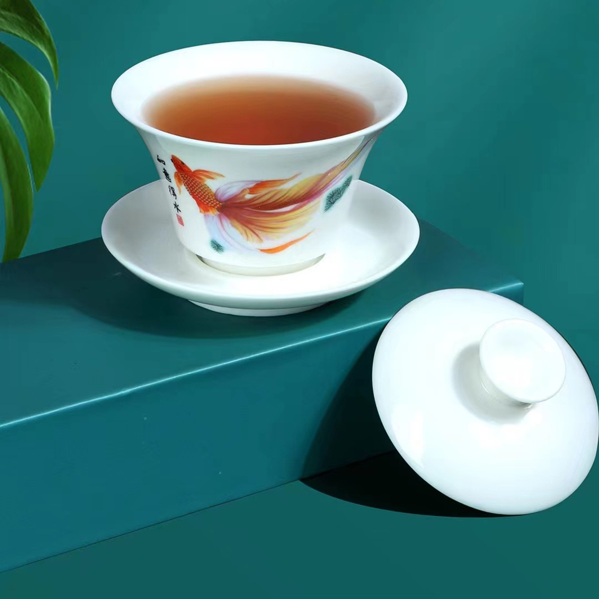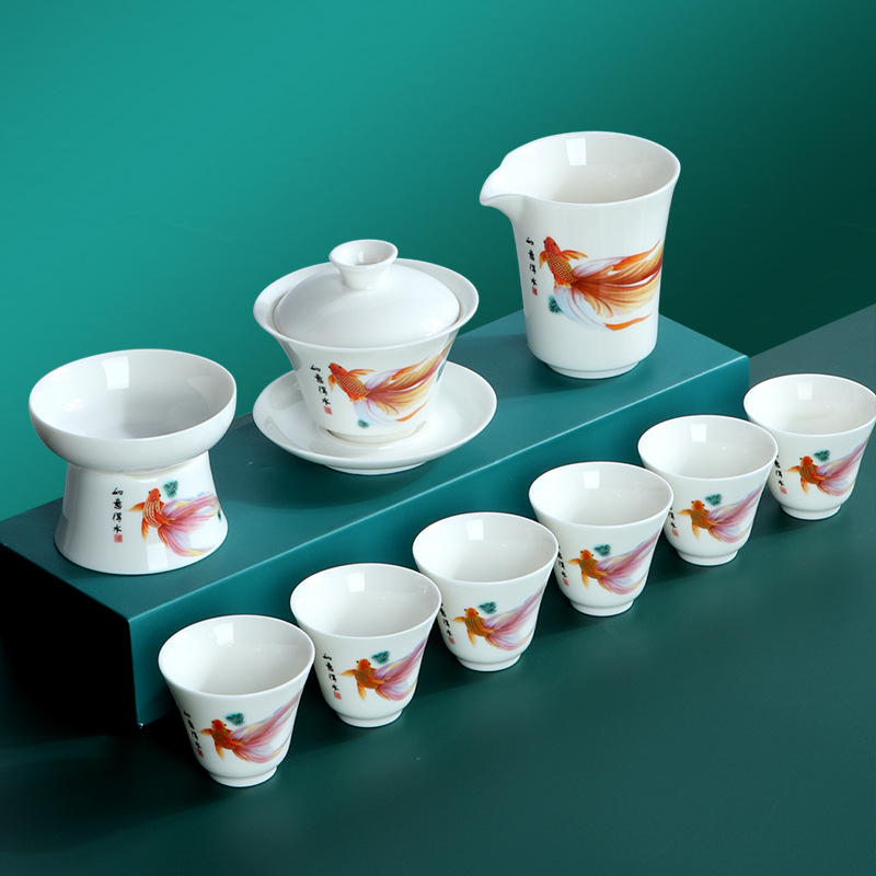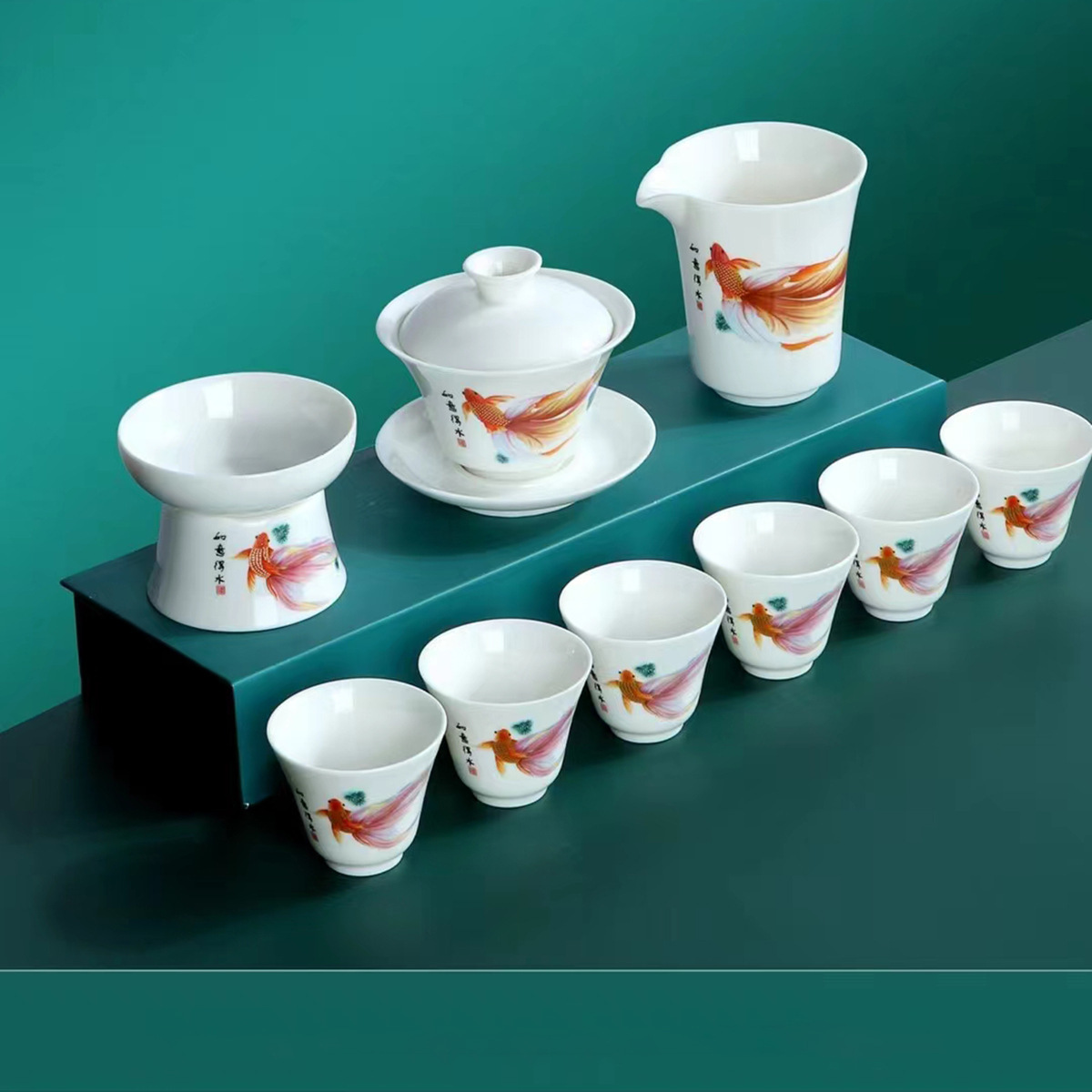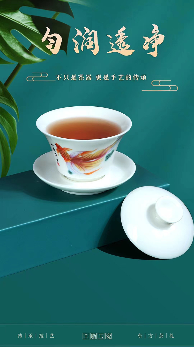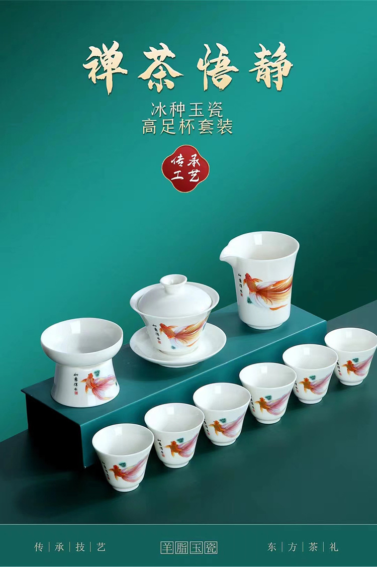 轻奢功夫茶器白瓷茶具套装羊脂白瓷盖碗杯子整套家用办公会客套装