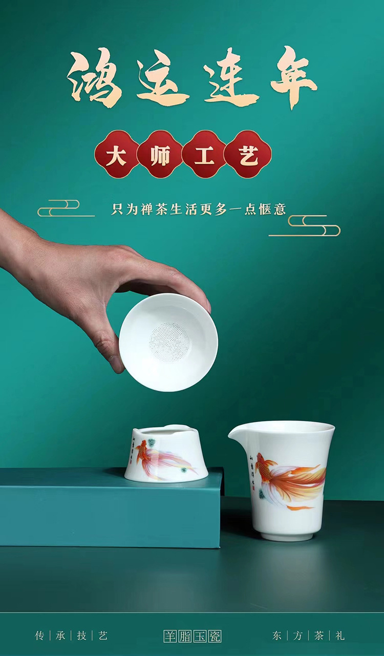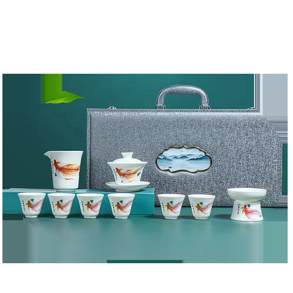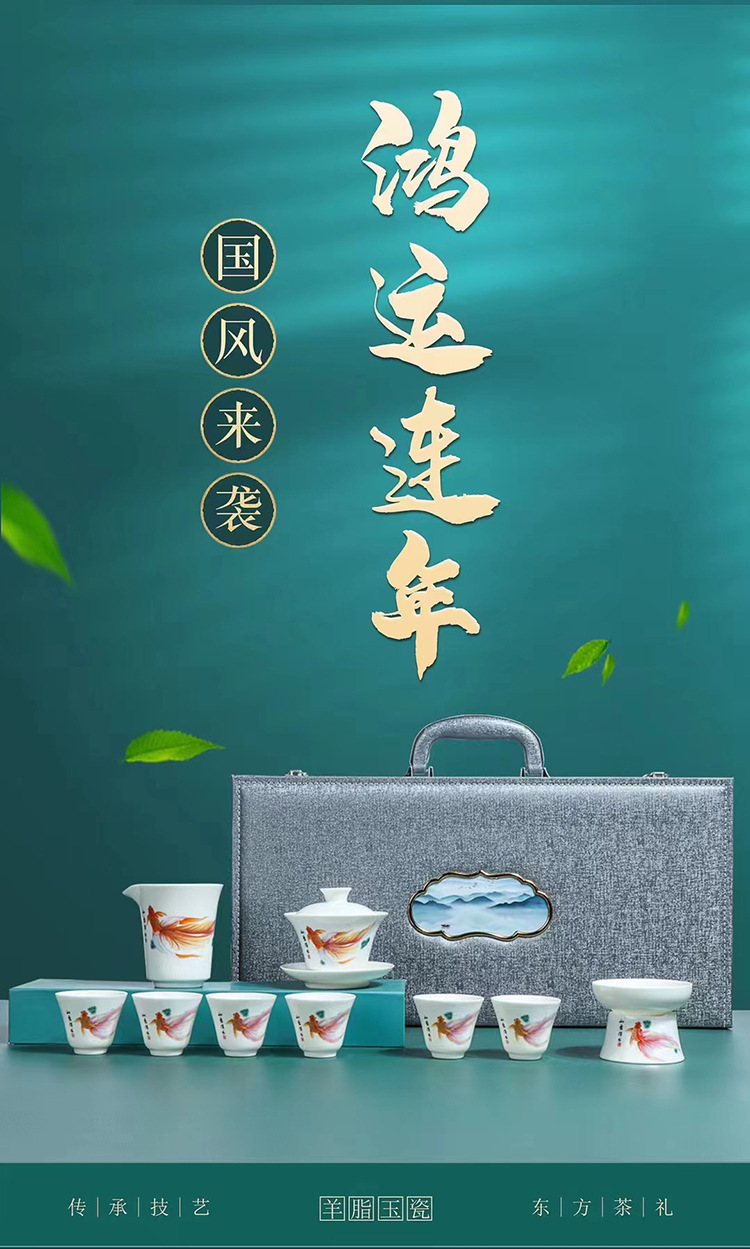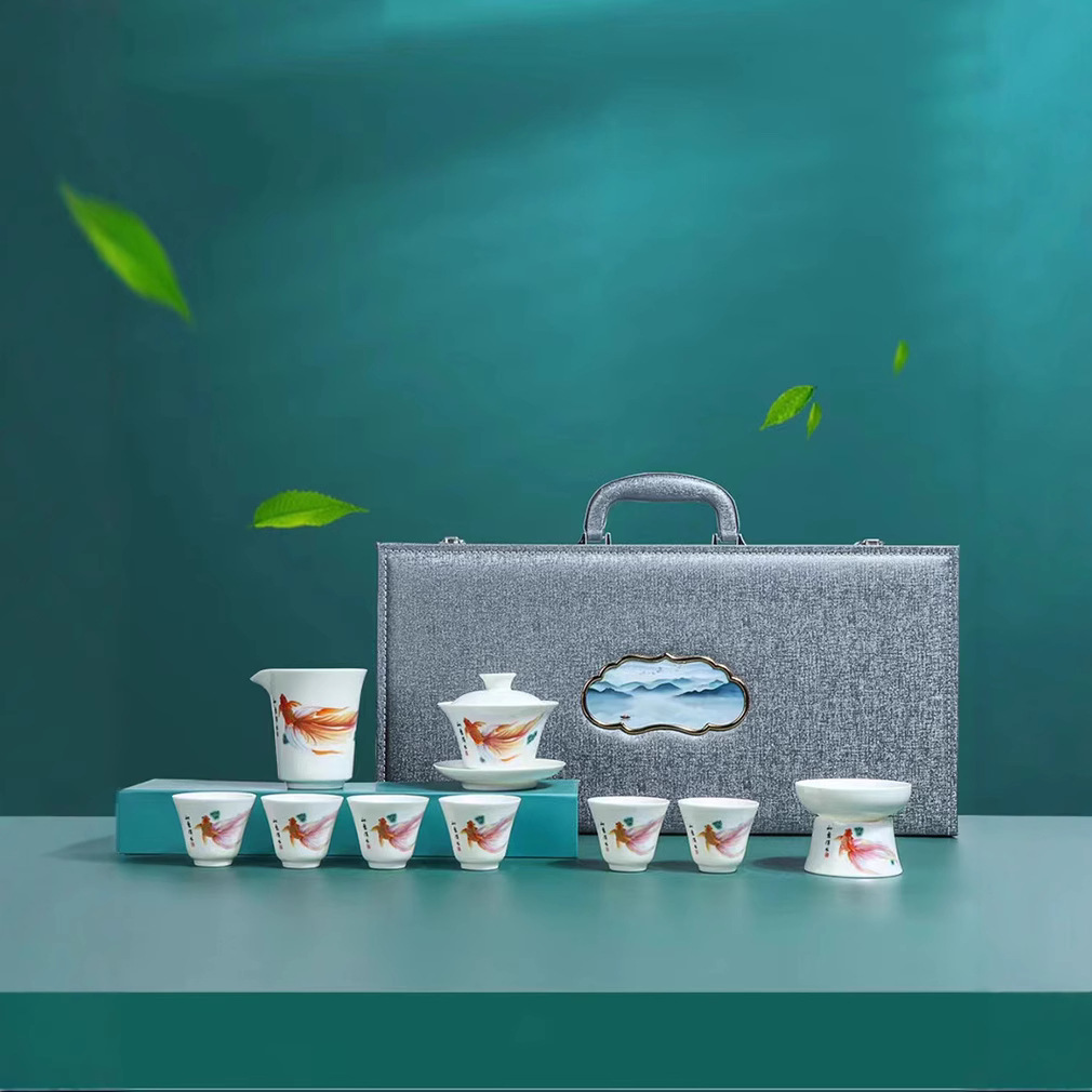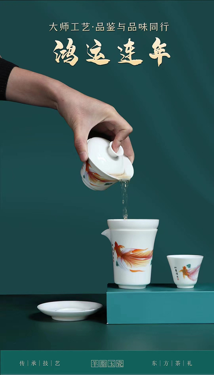 轻奢功夫茶器白瓷茶具套装羊脂白瓷盖碗杯子整套家用办公会客套装