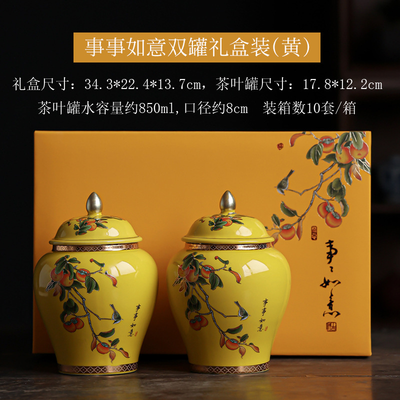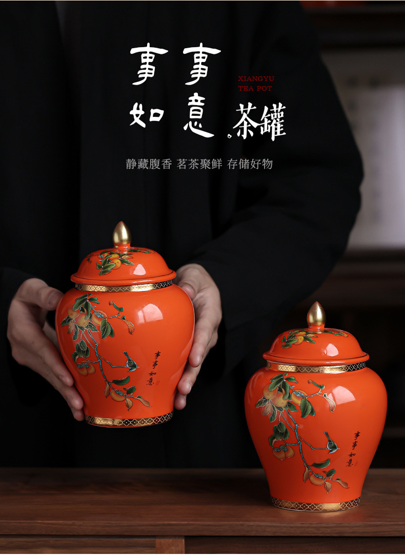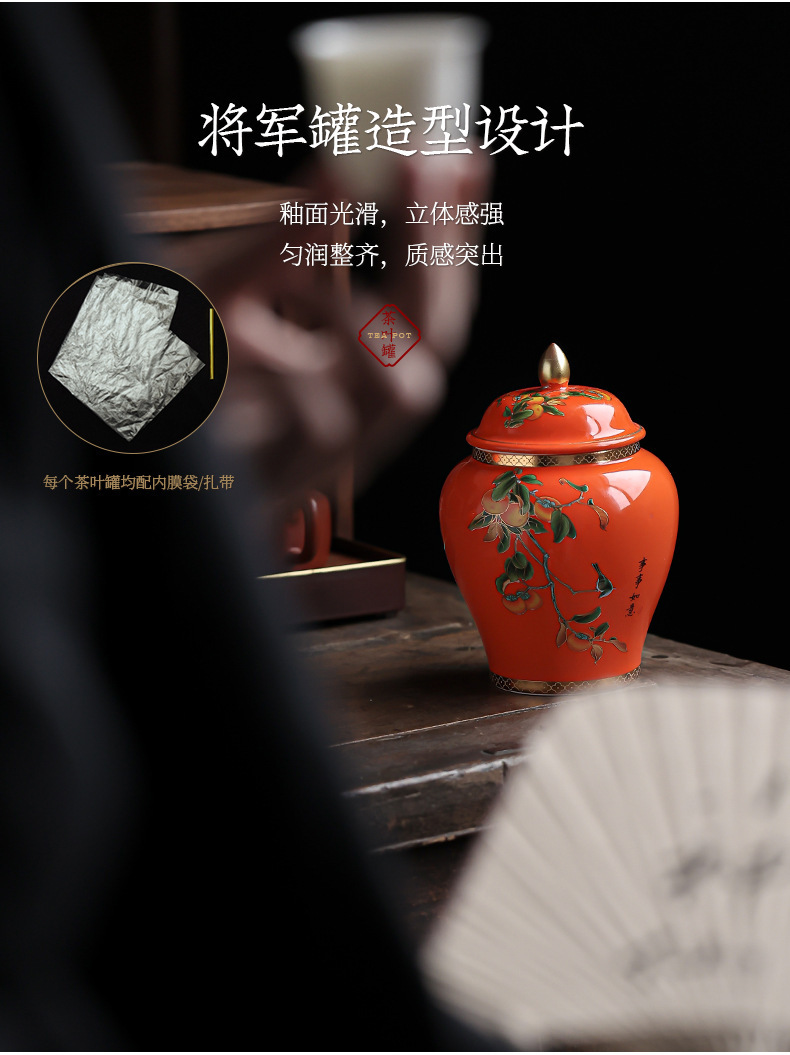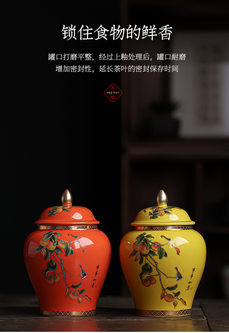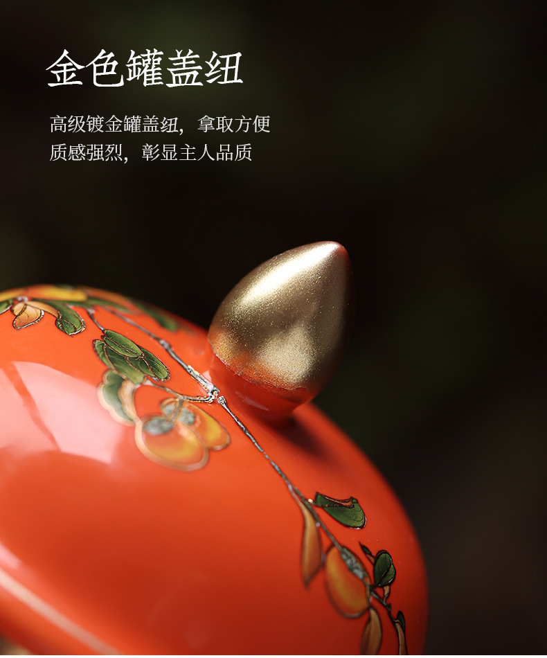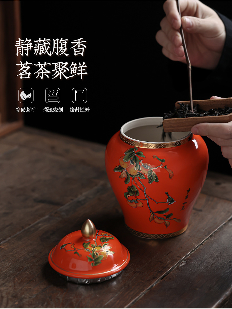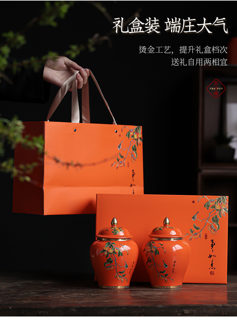 陶瓷柿子茶叶罐国潮风事事如意密封罐礼盒空罐包装红绿茶通用礼品