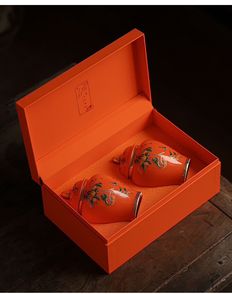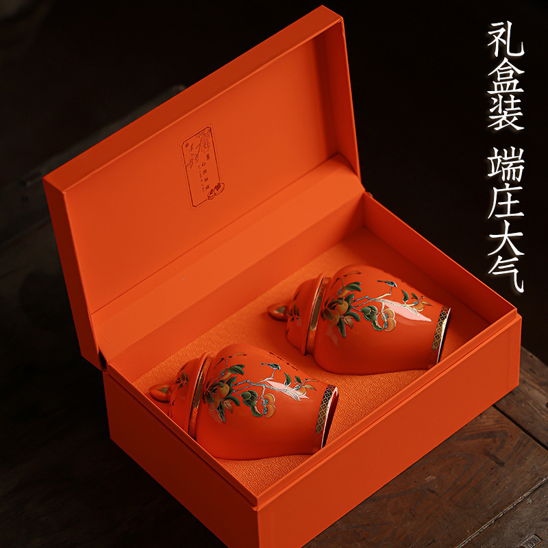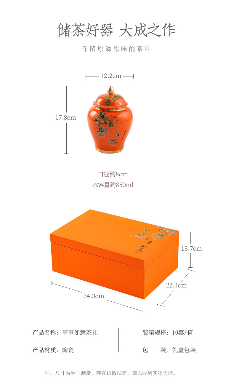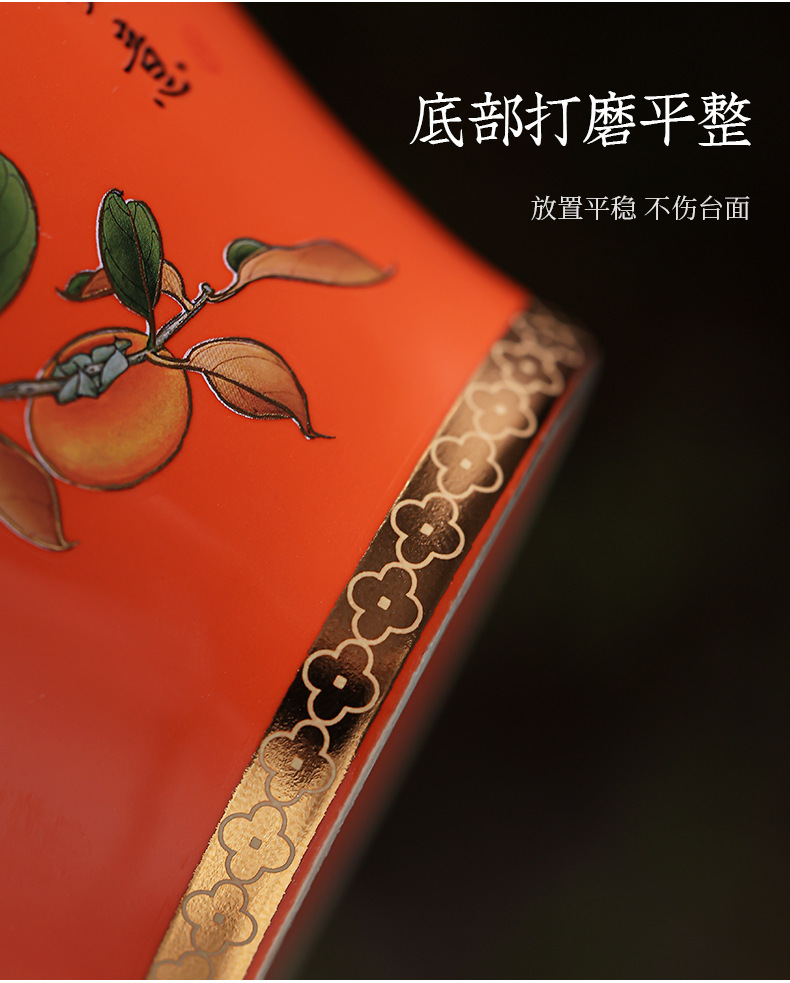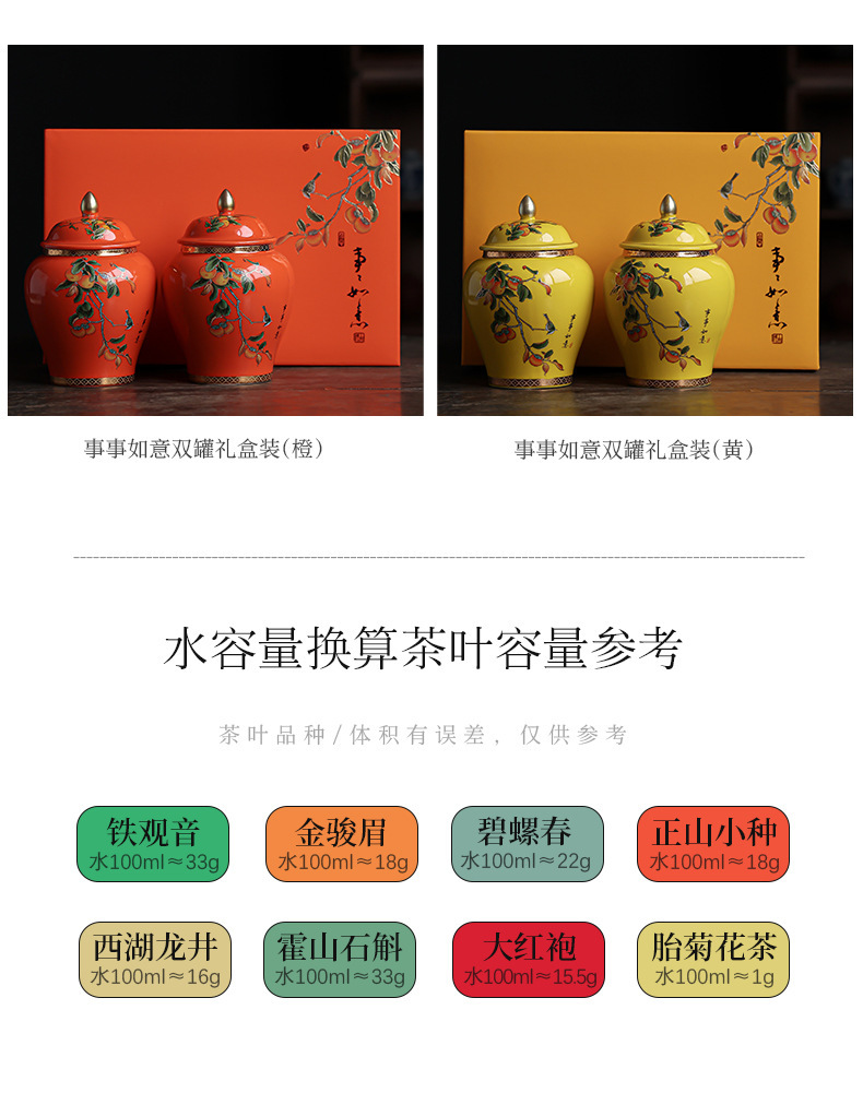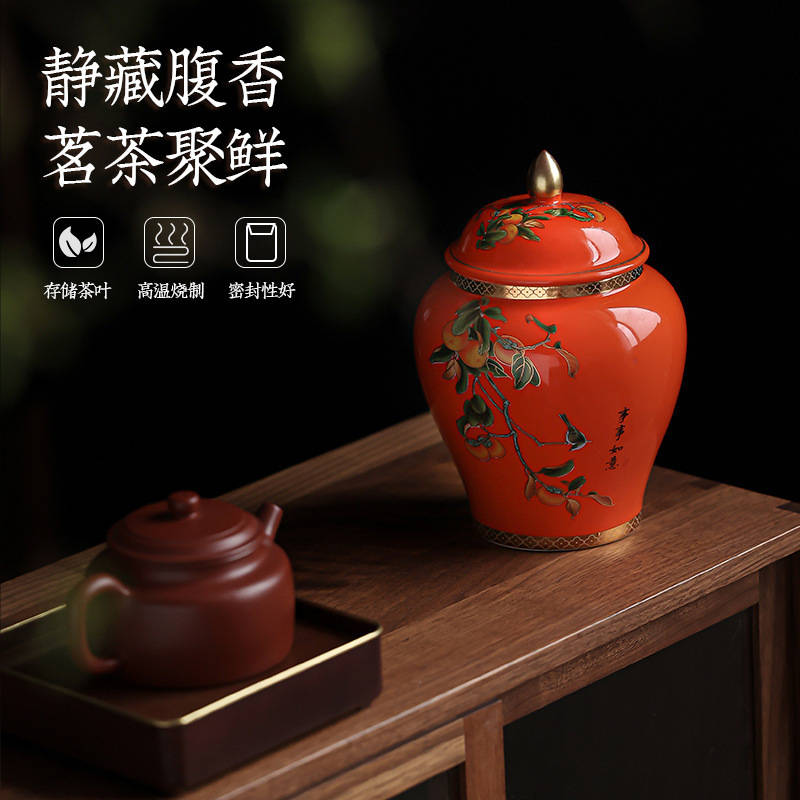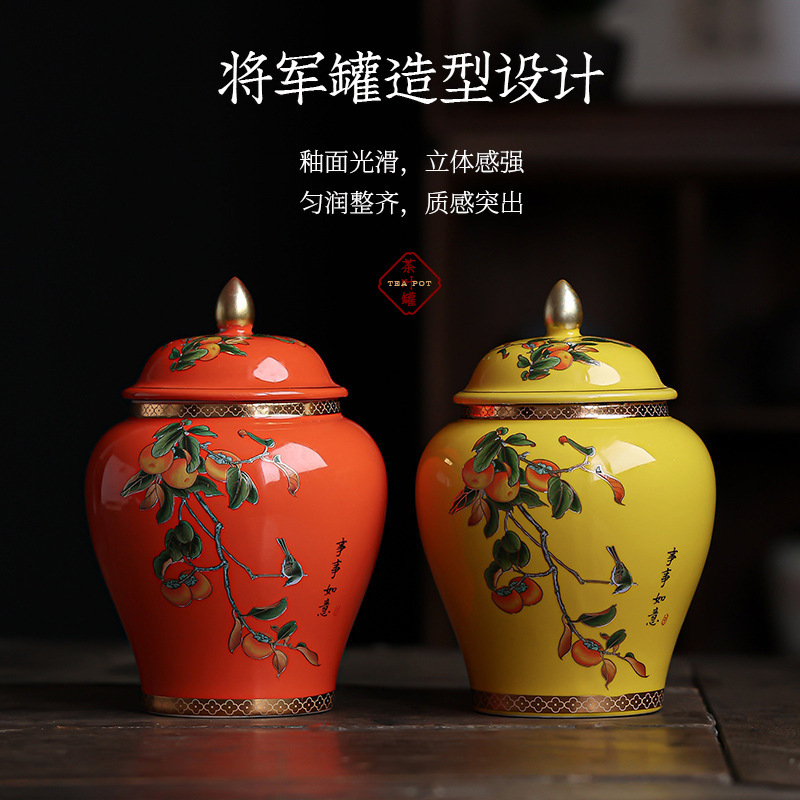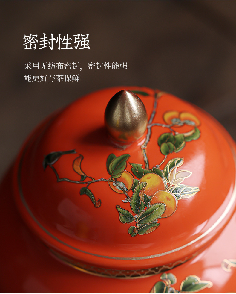陶瓷柿子茶叶罐国潮风事事如意密封罐礼盒空罐包装红绿茶通用礼品