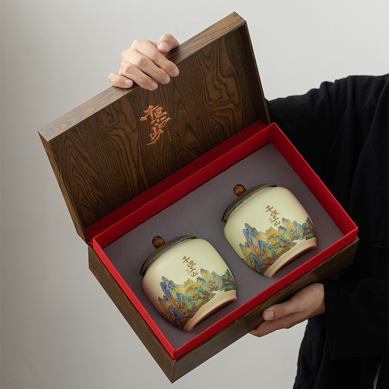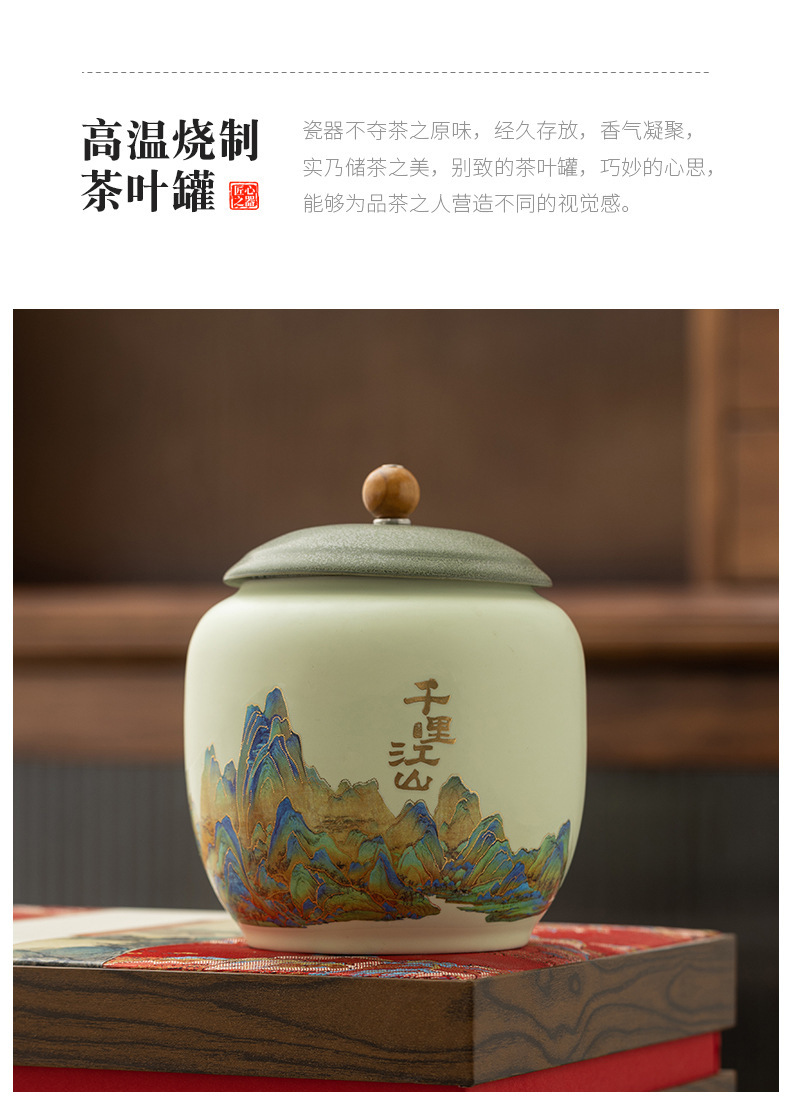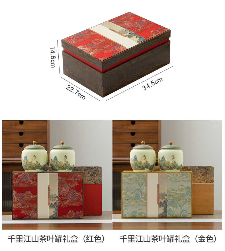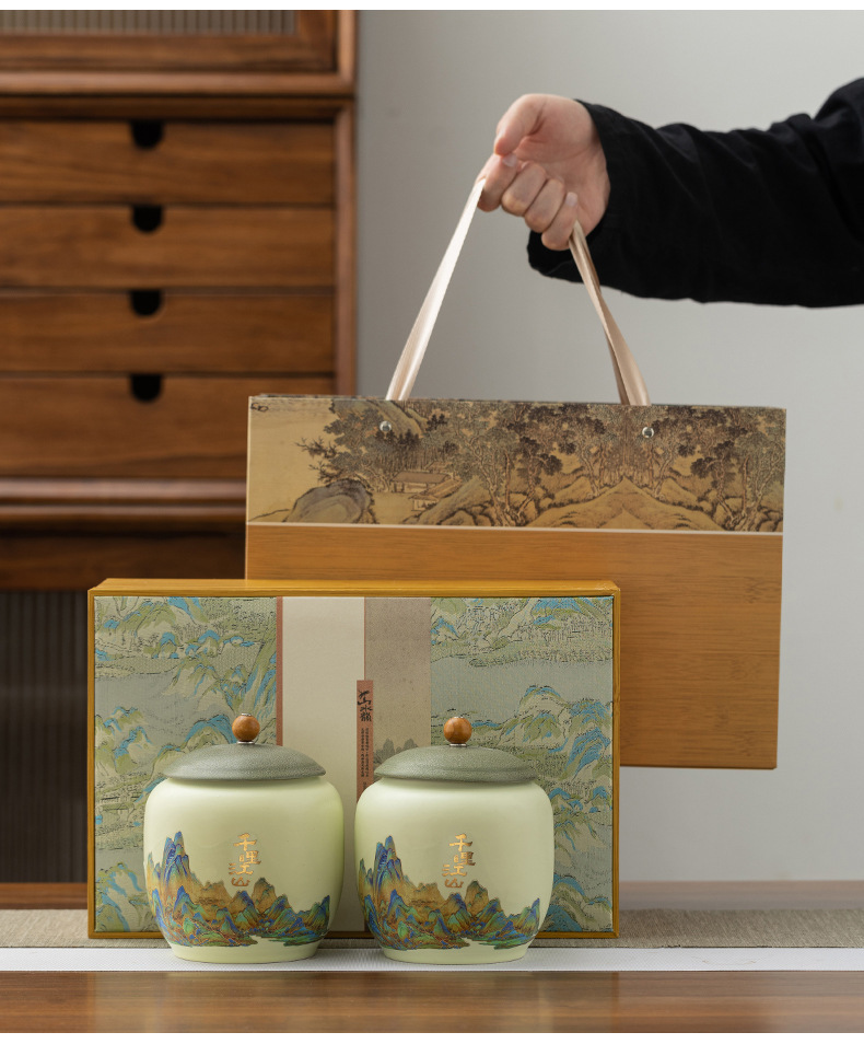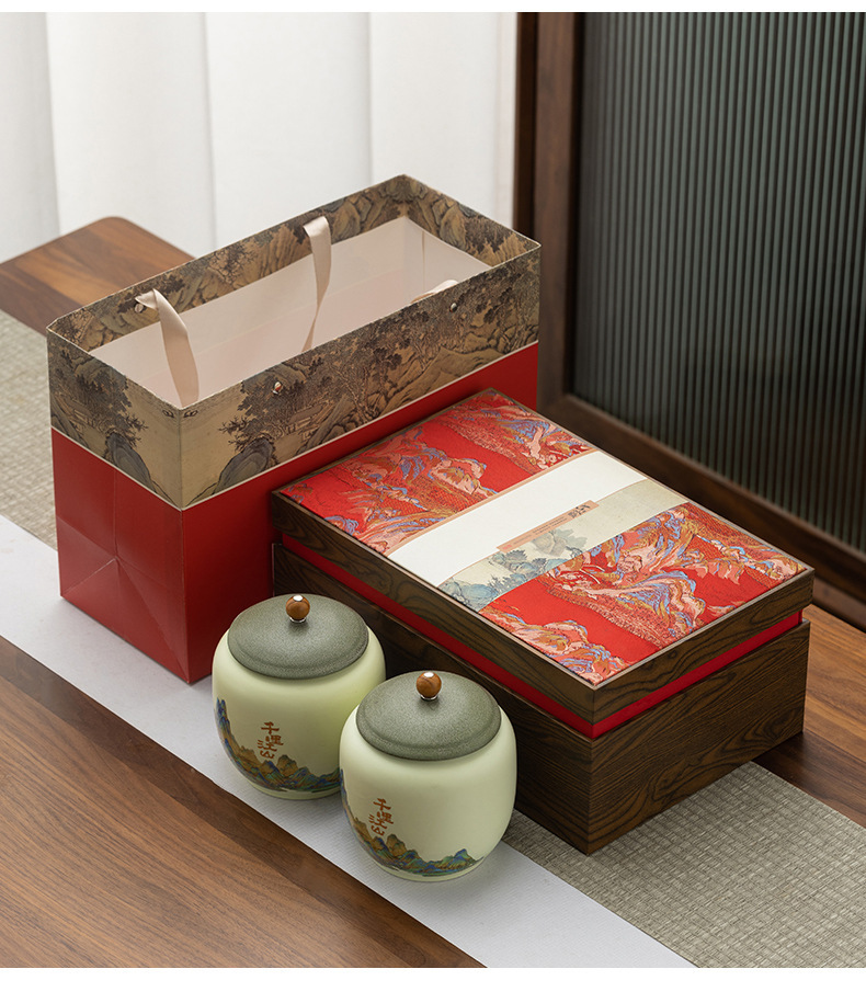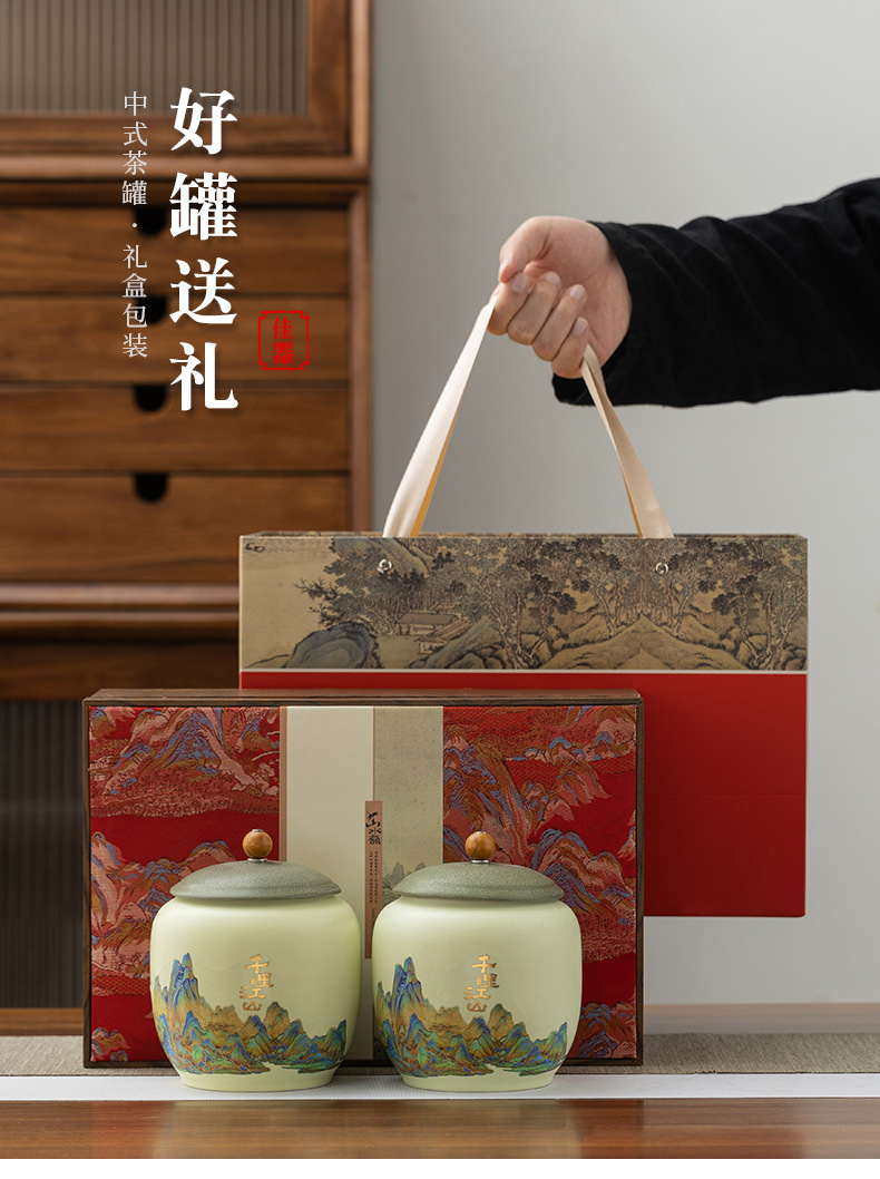 高档千里江山茶叶罐陶瓷礼盒装空盒岩茶金骏眉红茶通用盒空礼盒
