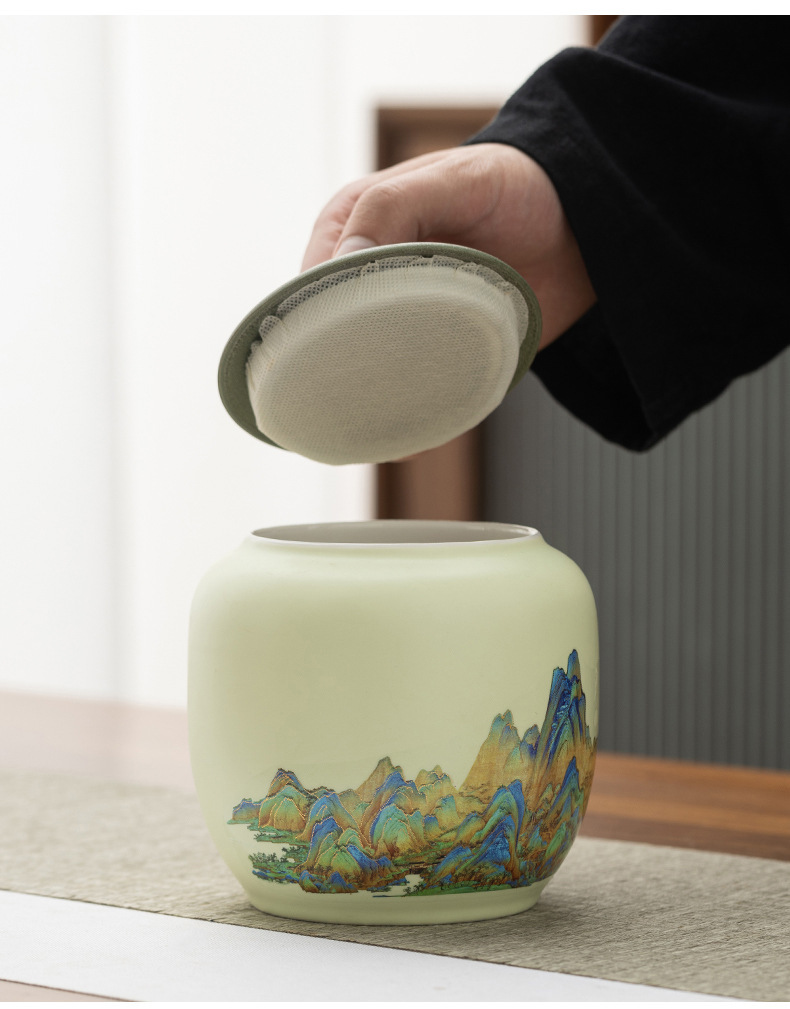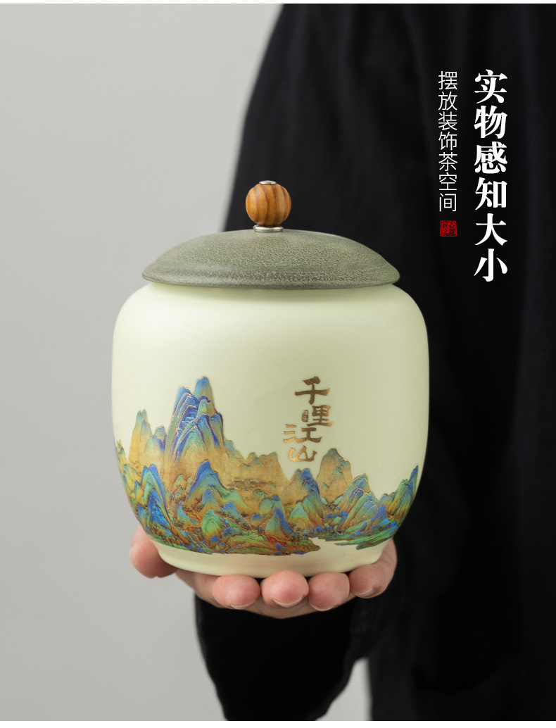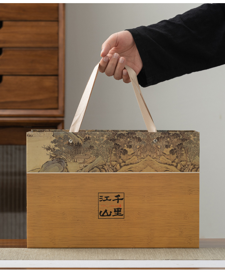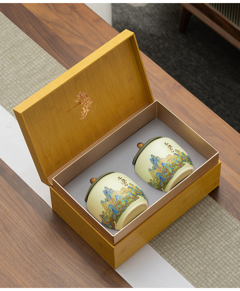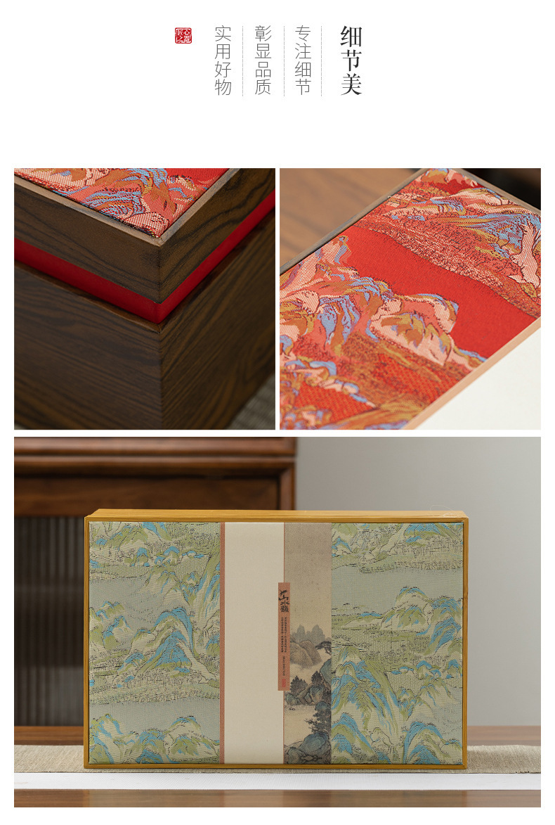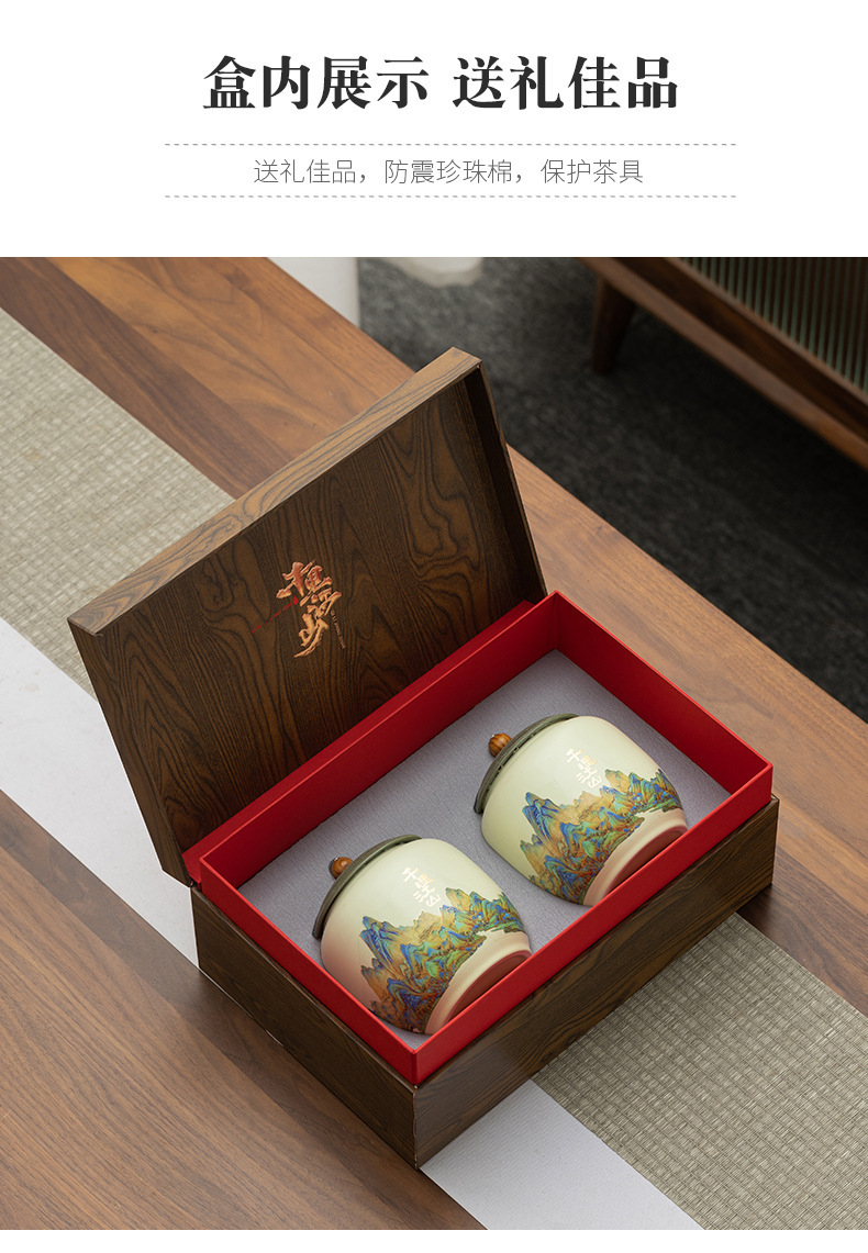 高档千里江山茶叶罐陶瓷礼盒装空盒岩茶金骏眉红茶通用盒空礼盒