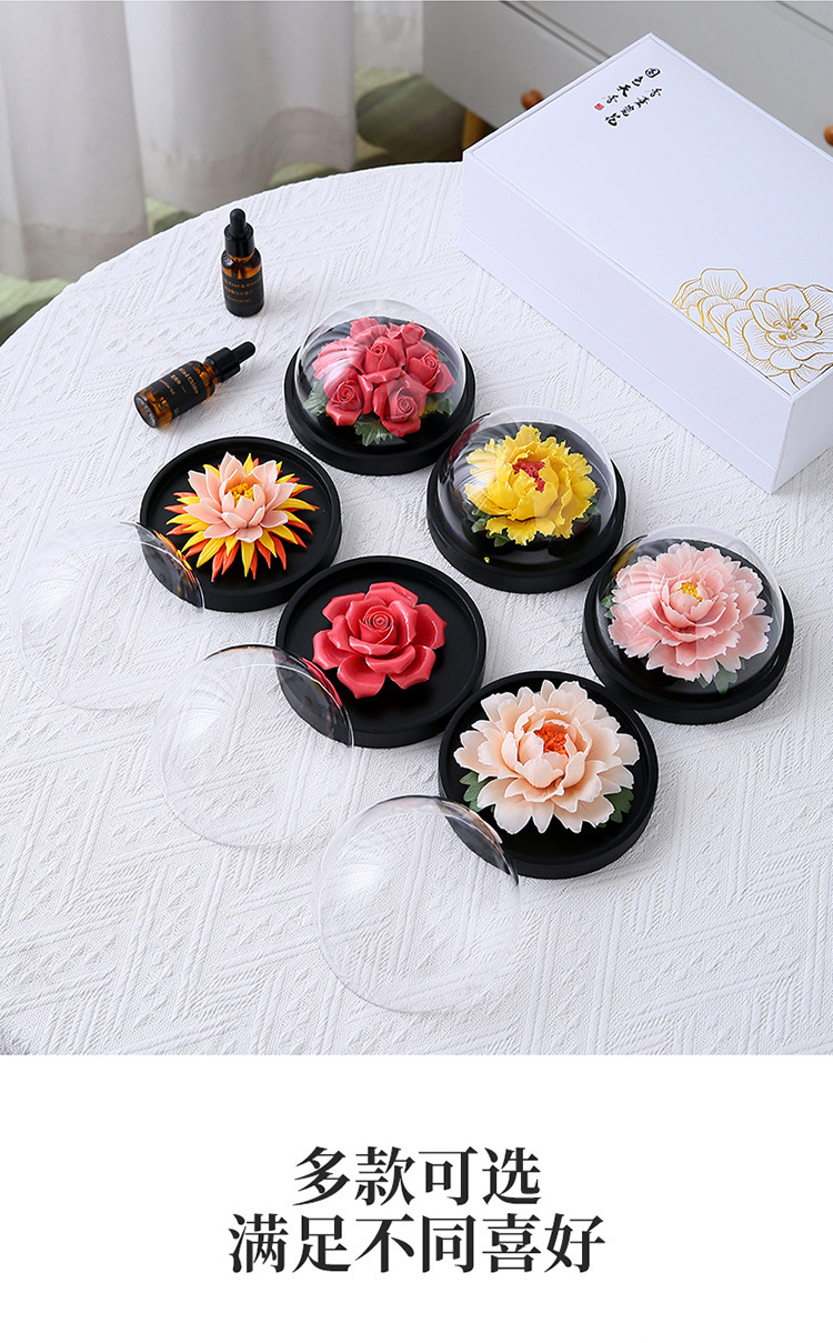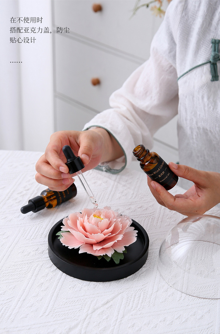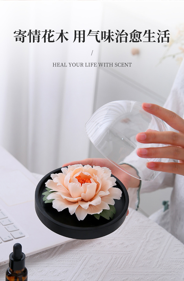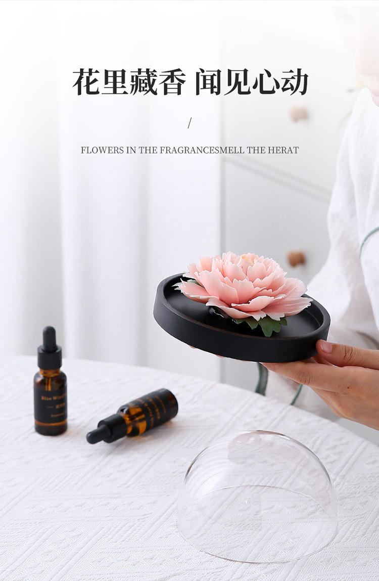 手捏陶瓷牡丹花火香薰扩香器办公家居客厅装饰摆件节日礼品礼物