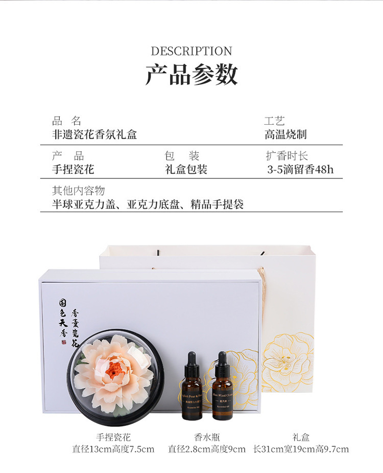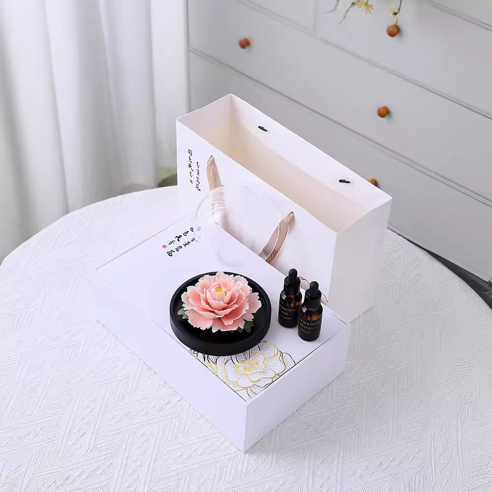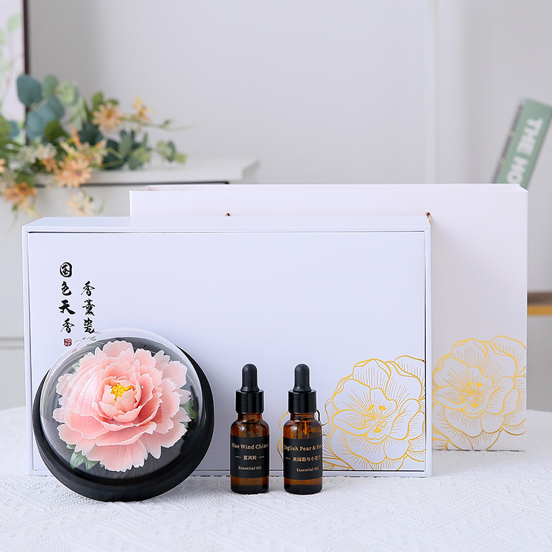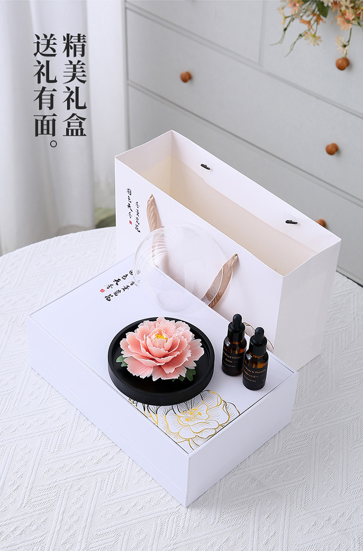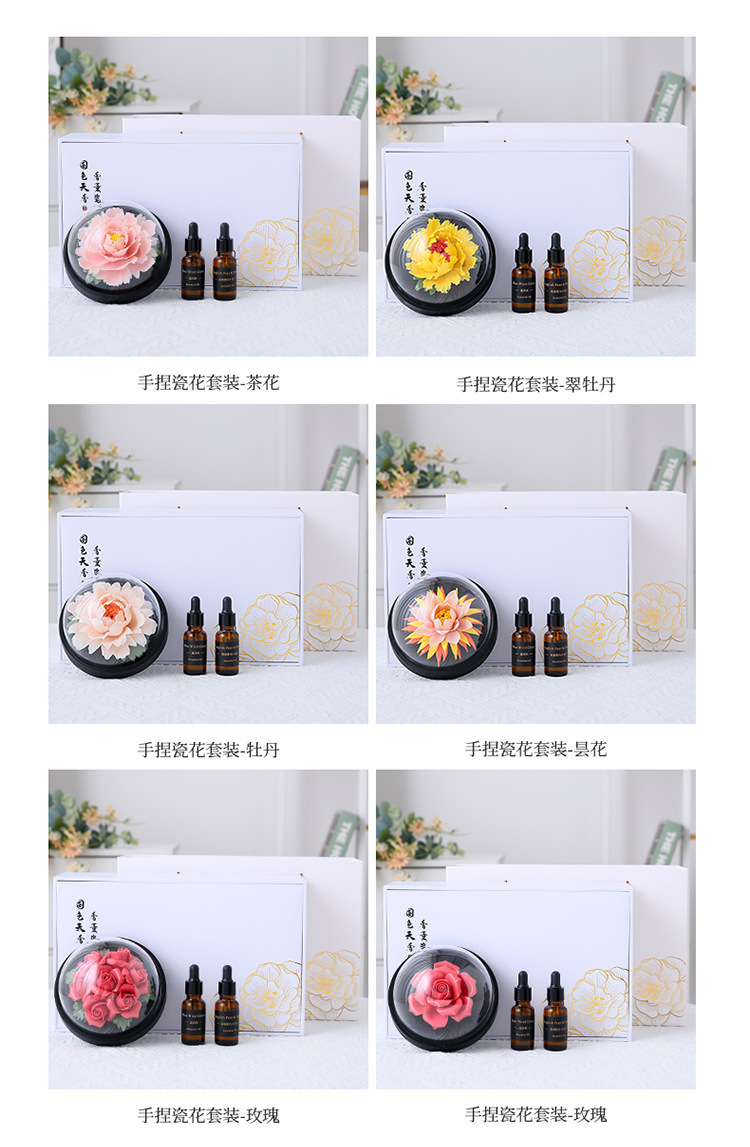 手捏陶瓷牡丹花火香薰扩香器办公家居客厅装饰摆件节日礼品礼物