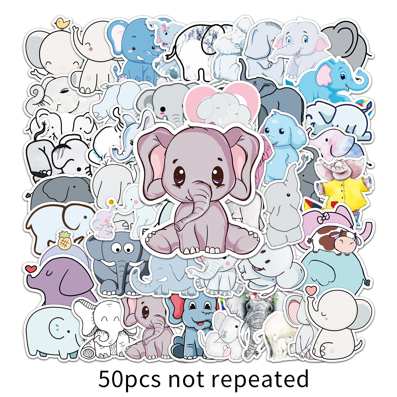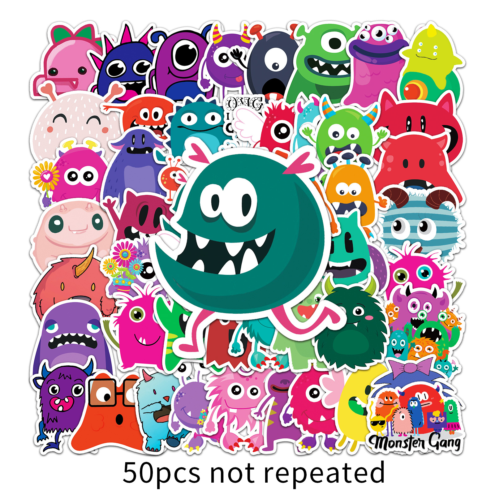 50张跨境小清新涂鸦卡通咕卡手帐装饰滑板儿童贴画防水行李箱贴纸