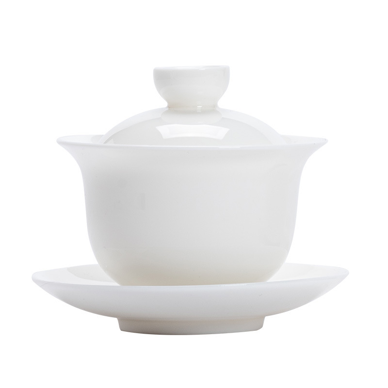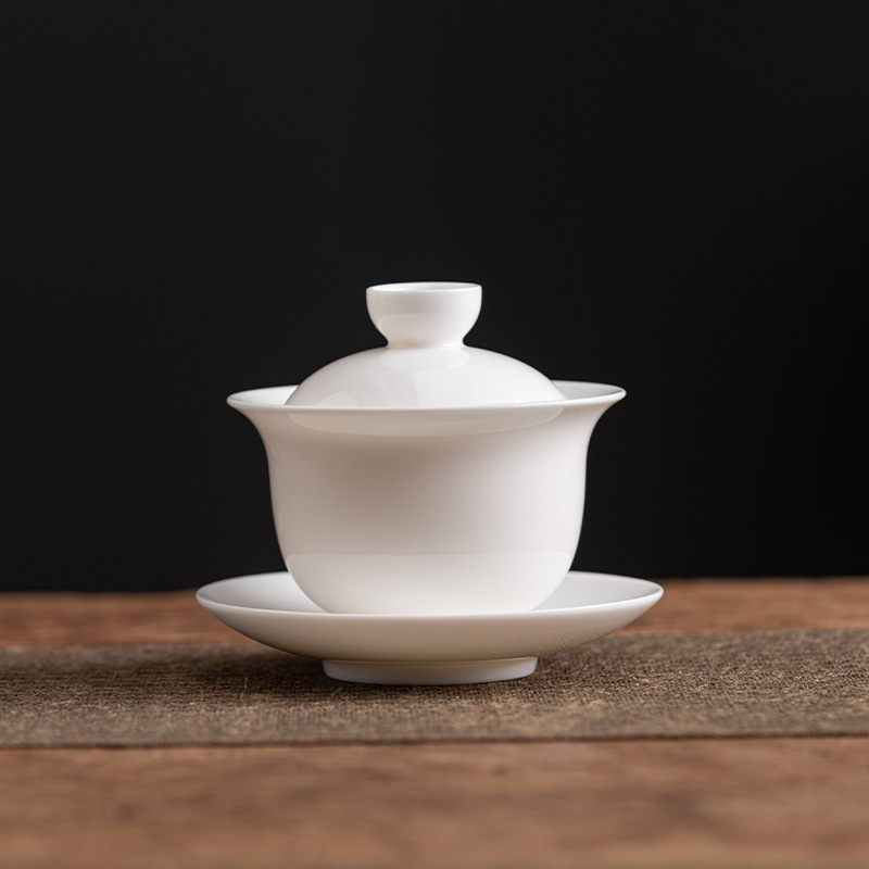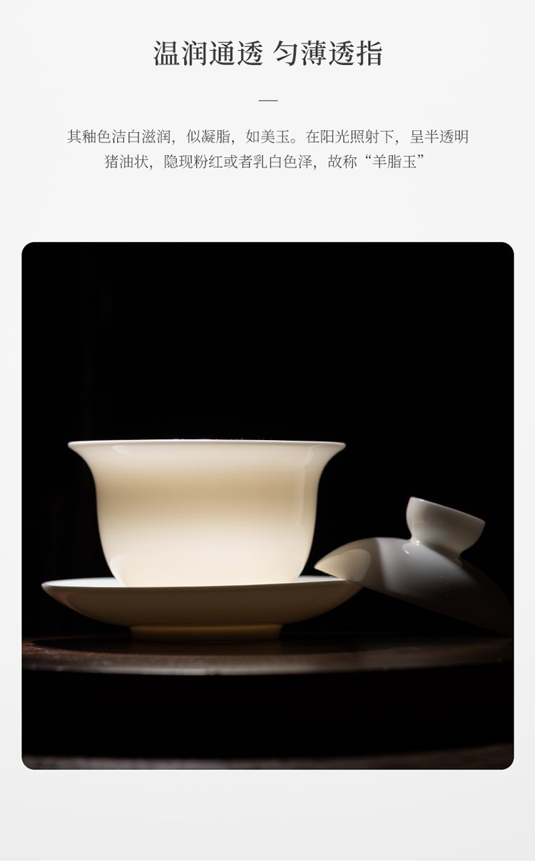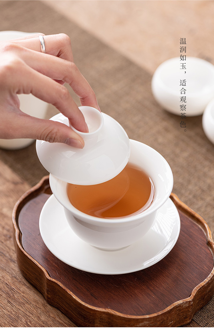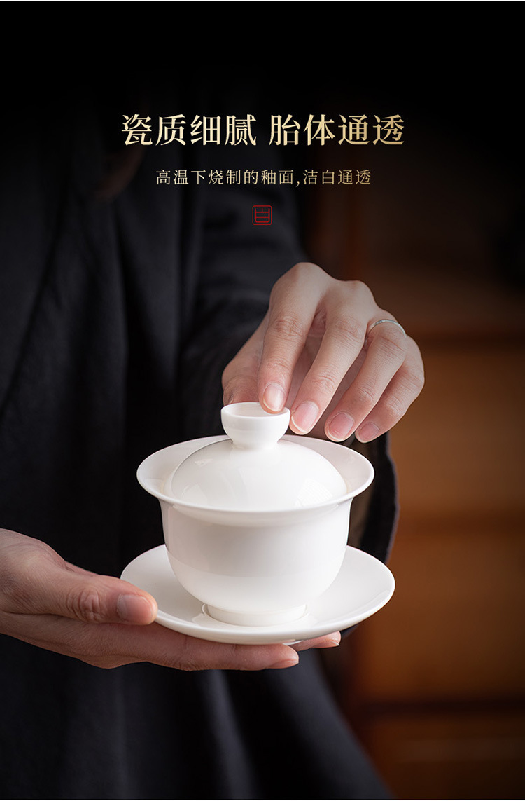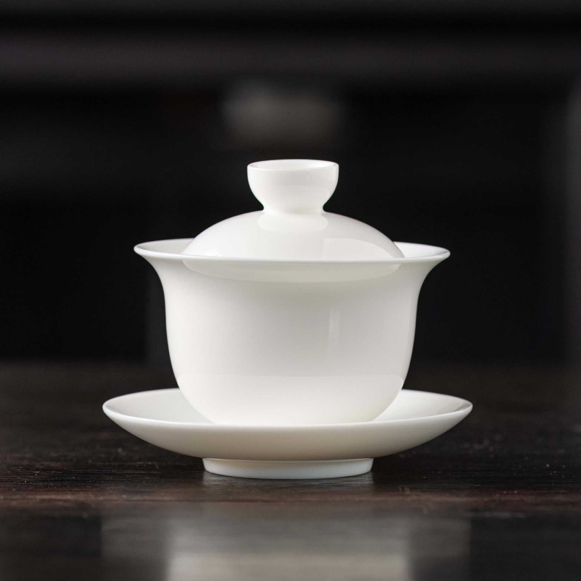 轻奢羊脂玉盖碗白瓷茶碗带盖大号功夫家用茶具茶企印制logo三才碗