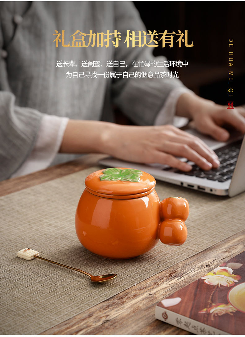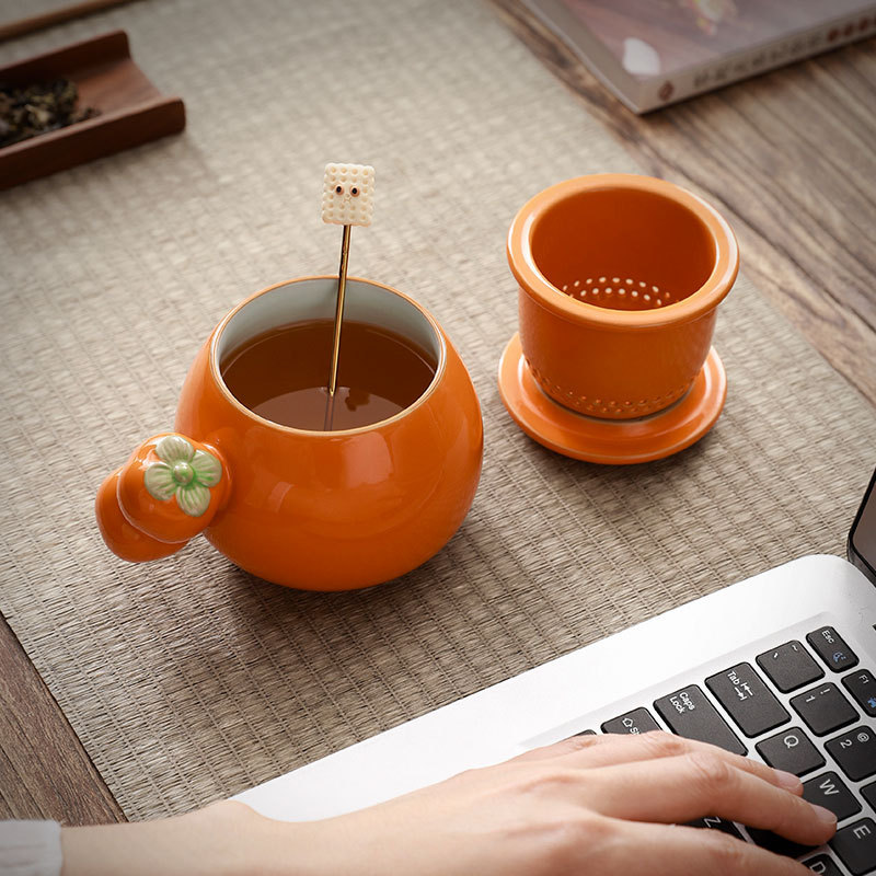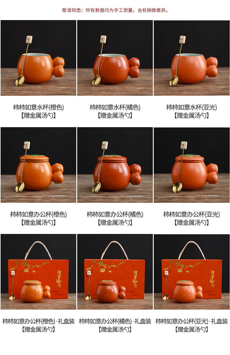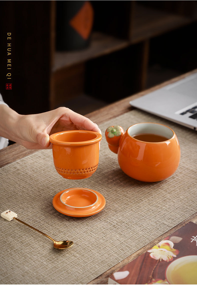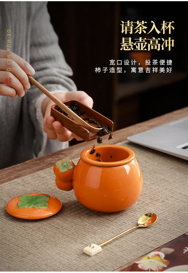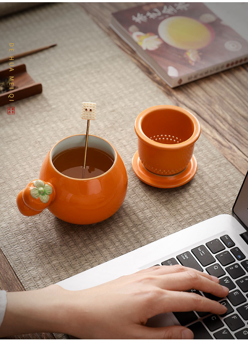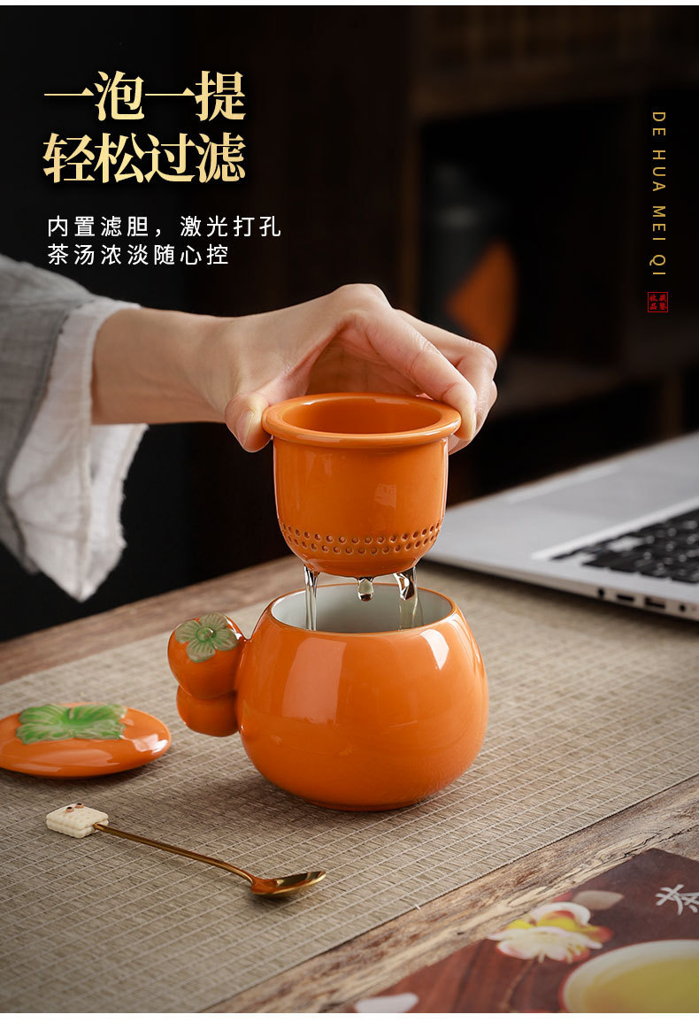 柿柿如意茶杯个人专用办公杯陶瓷礼盒装茶水分离马克杯过滤定logo