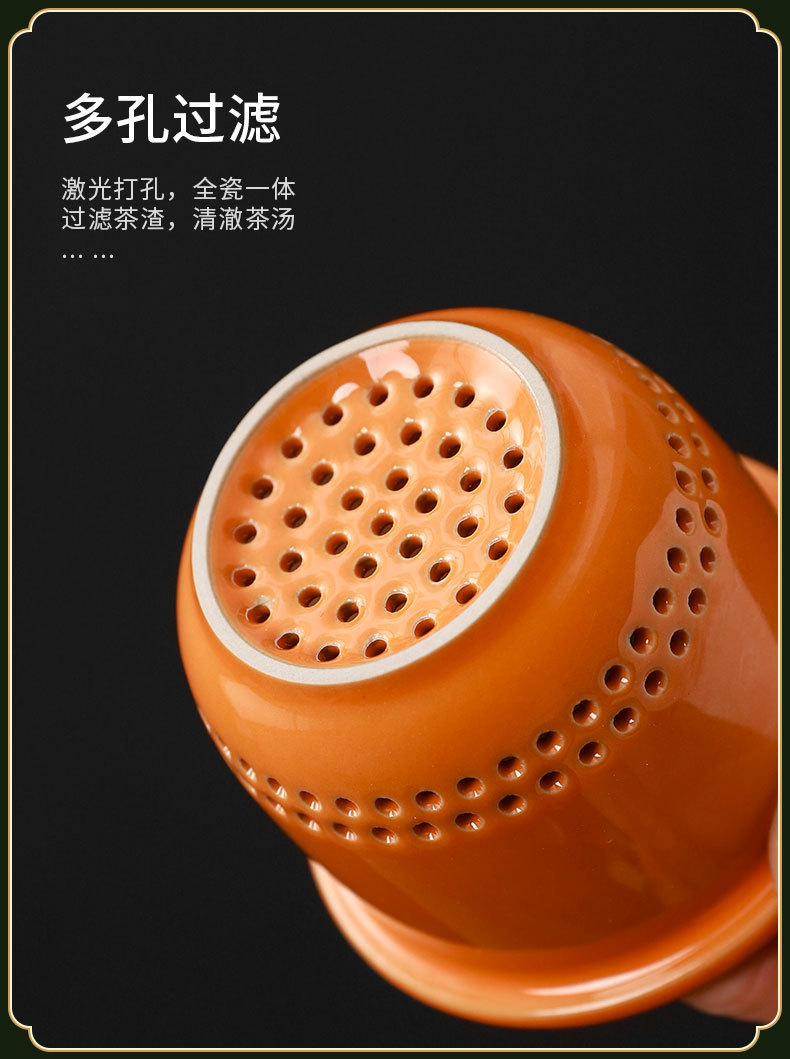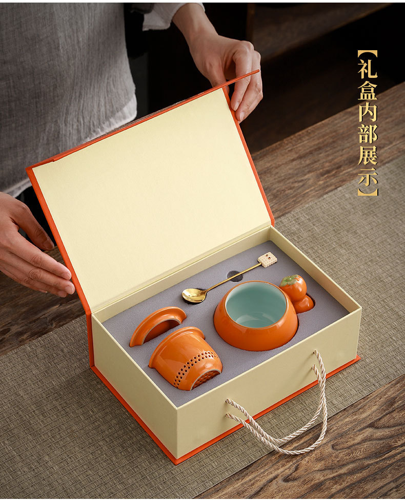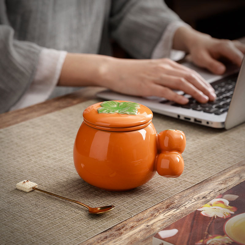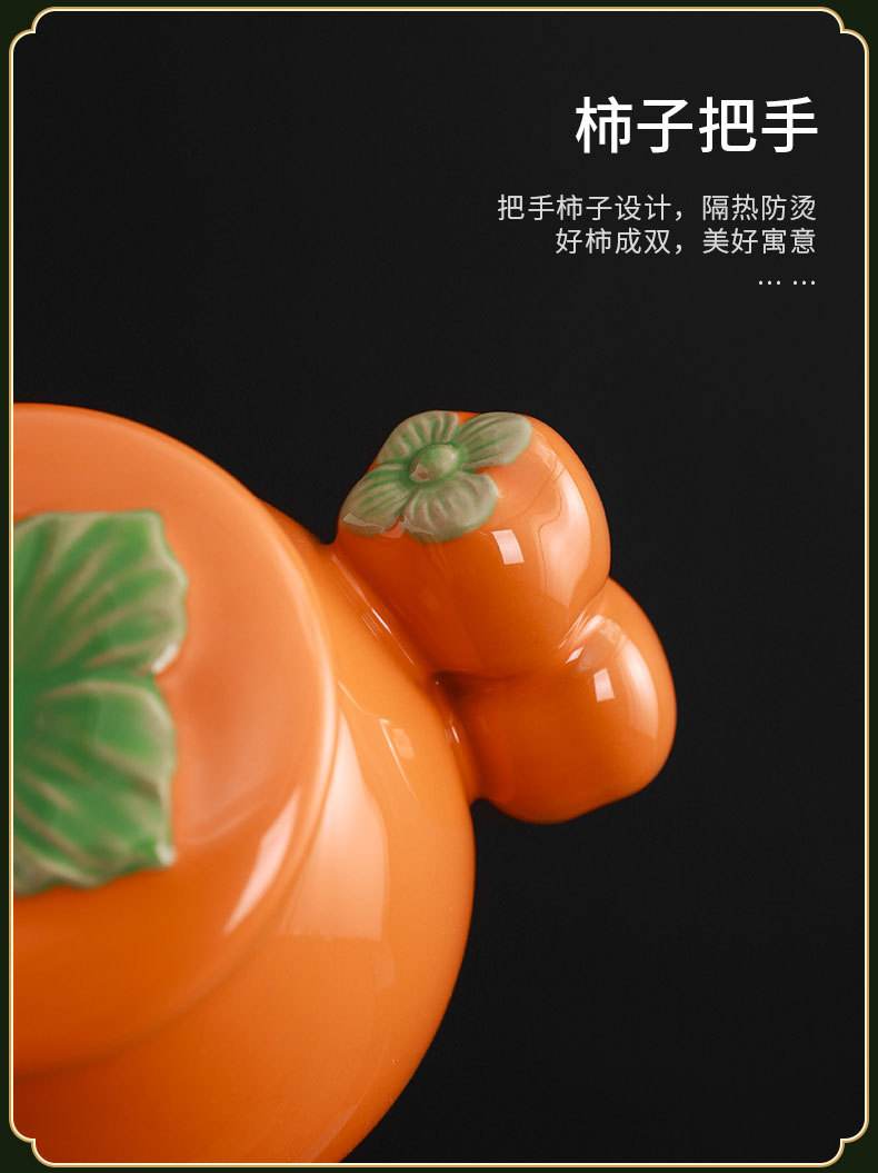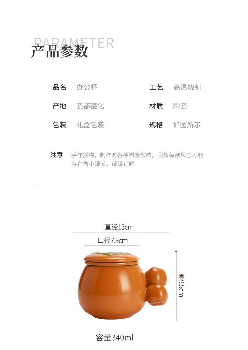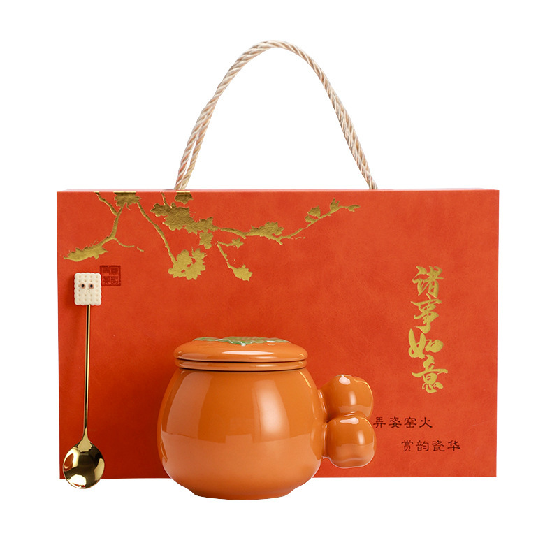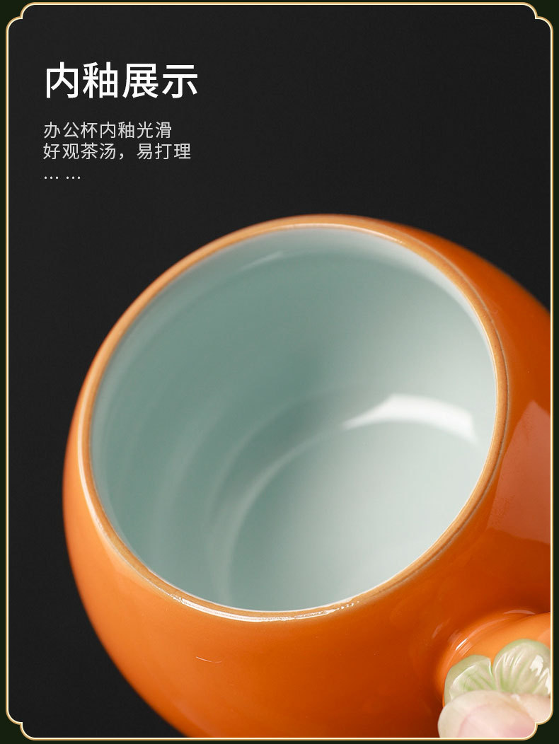 柿柿如意茶杯个人专用办公杯陶瓷礼盒装茶水分离马克杯过滤定logo