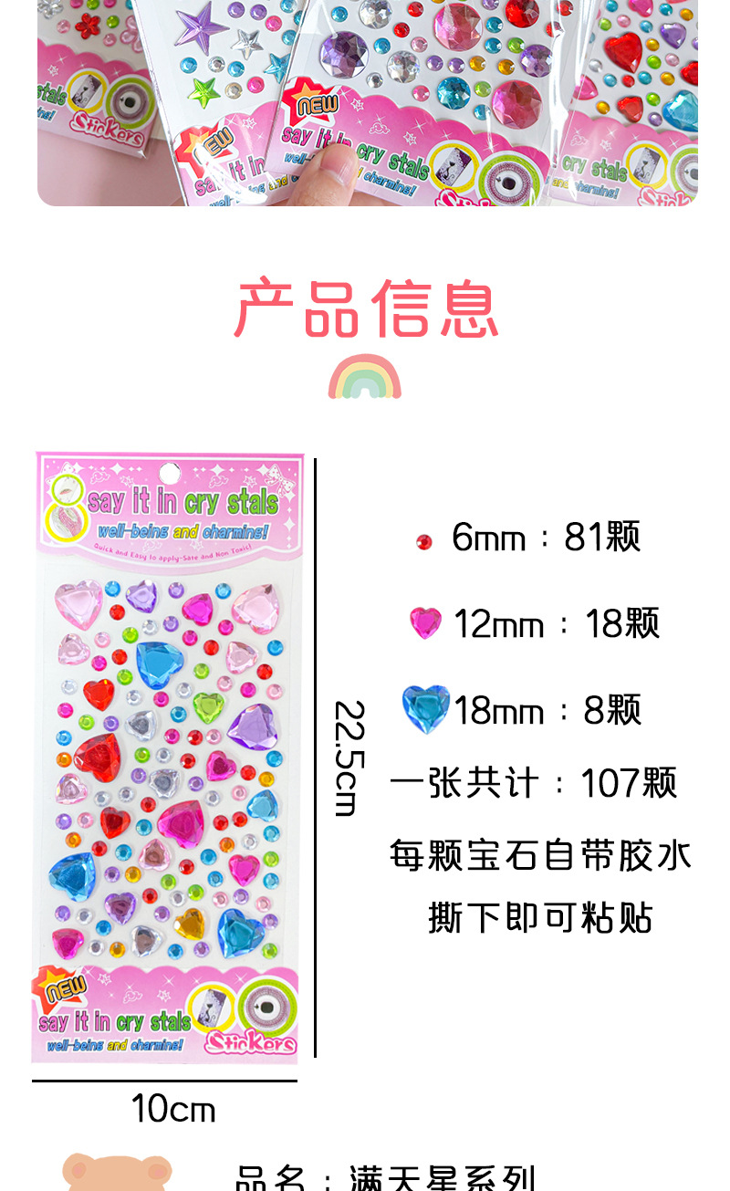 贴贴纸儿童玩具女孩宝石水晶亚克力钻石美甲奖励装饰DIY贴画闪钻