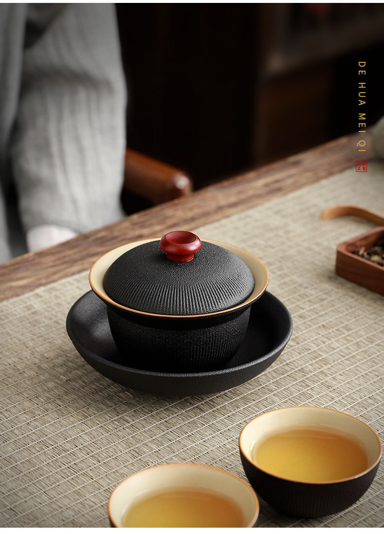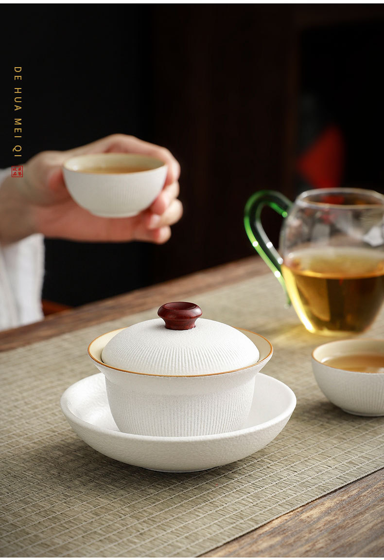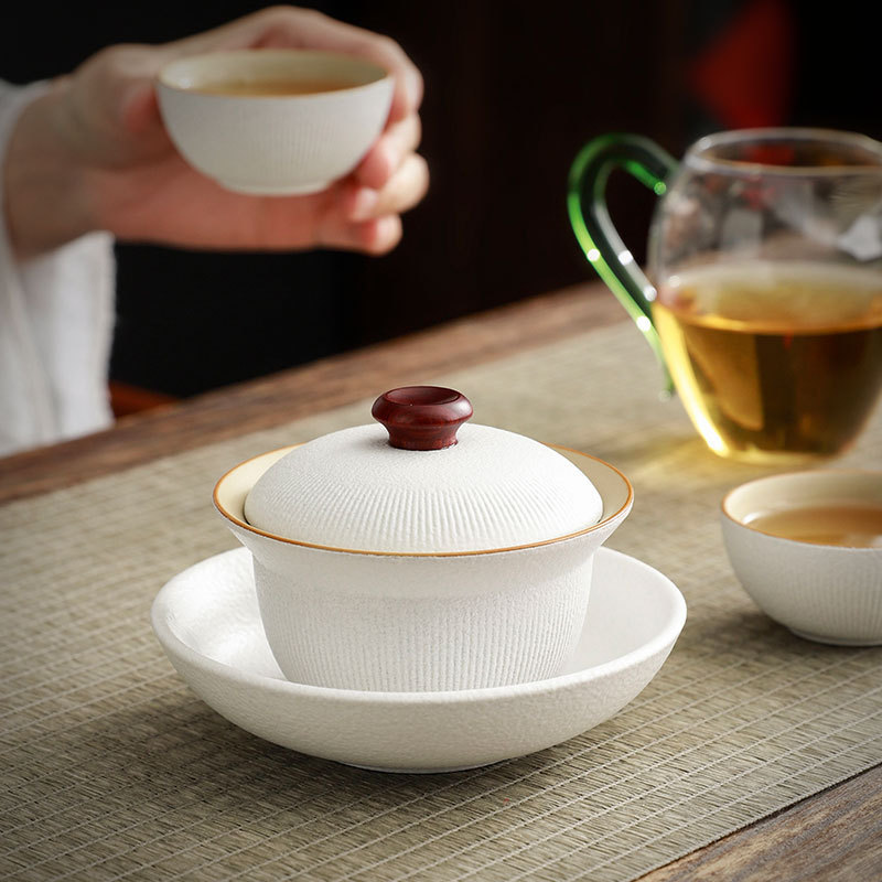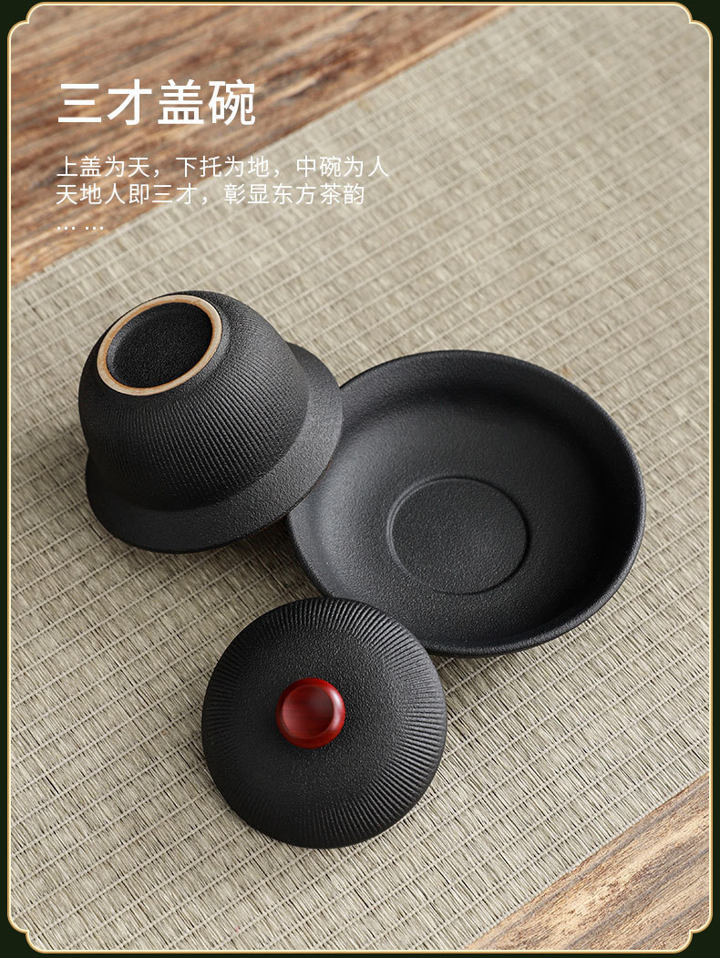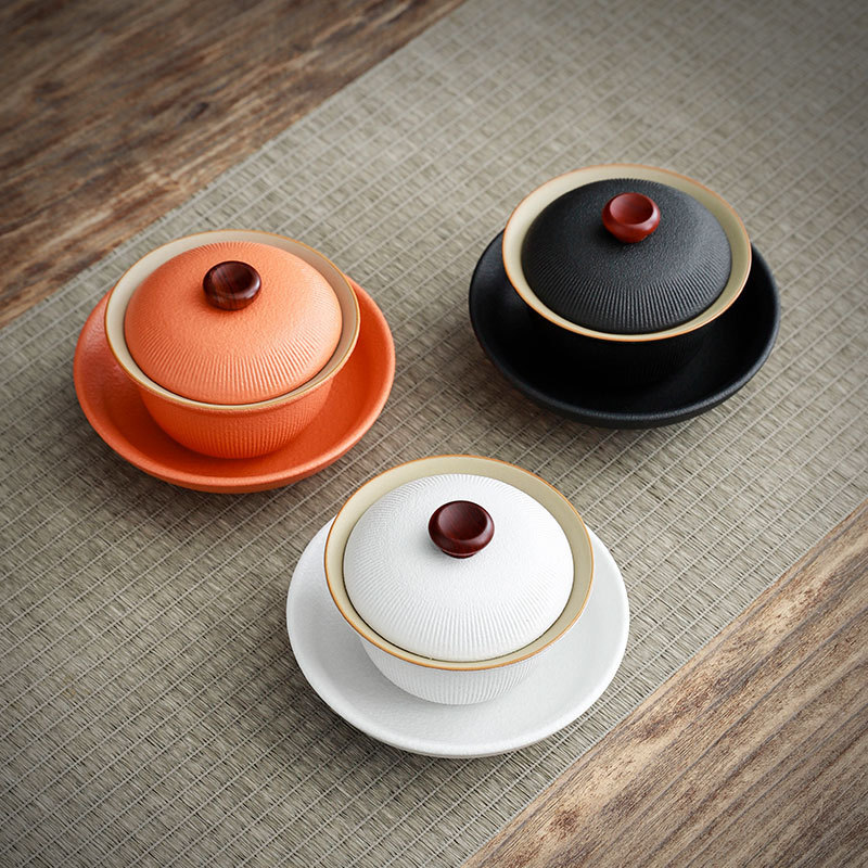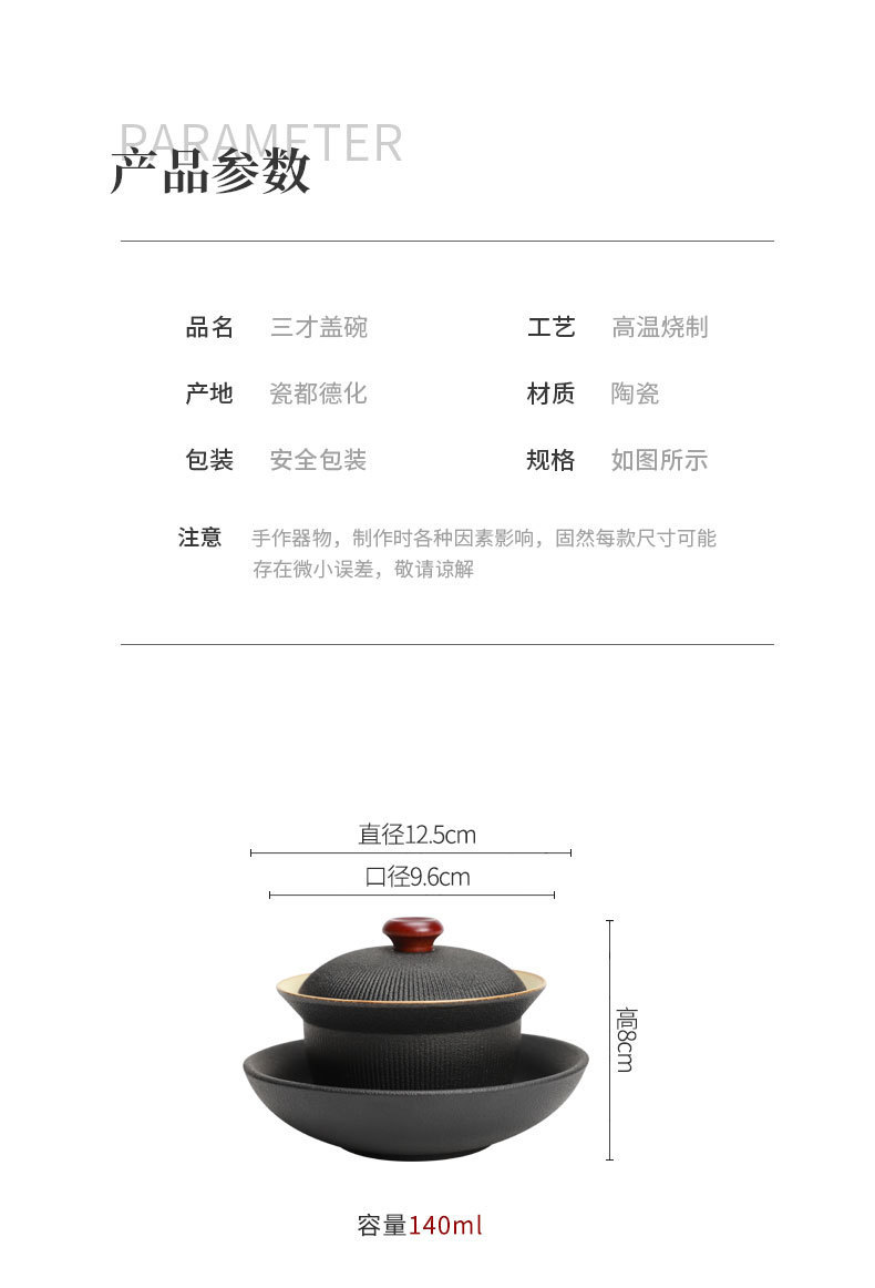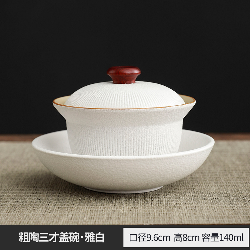 陶瓷功夫茶具三才盖碗创意粗陶简约纯色盖碗家用办公泡茶碗茶托