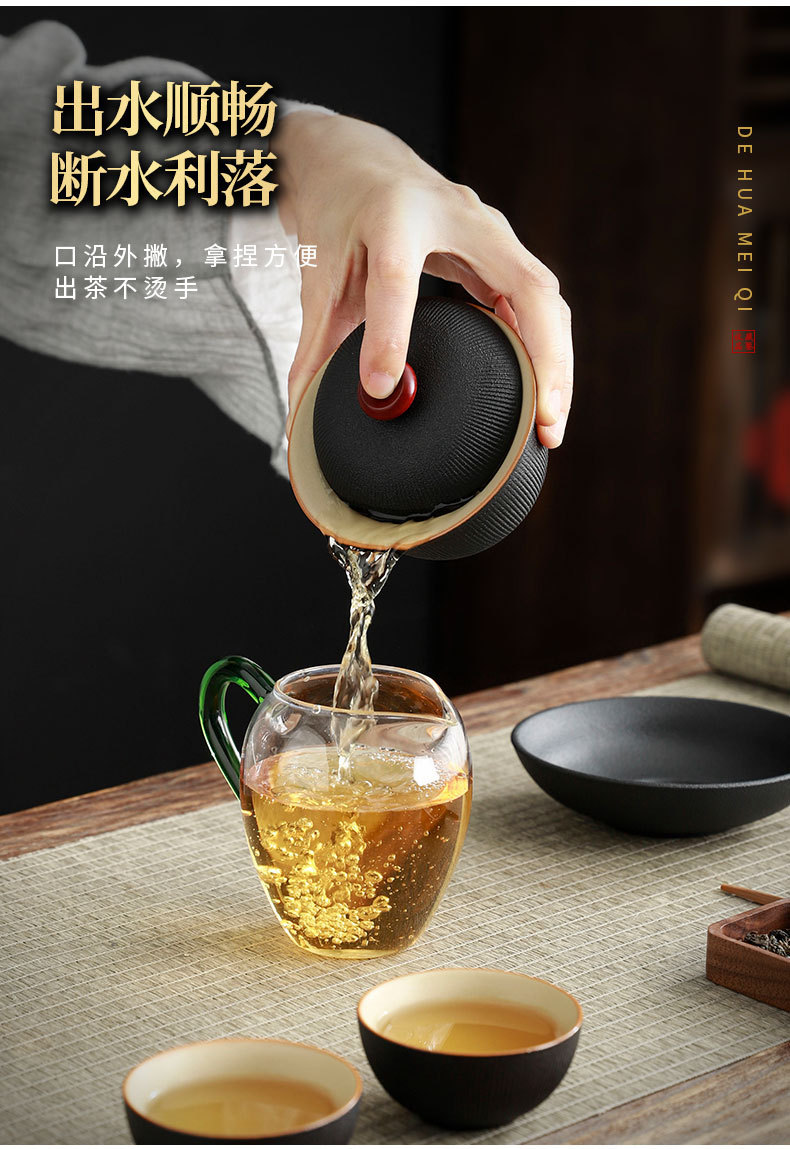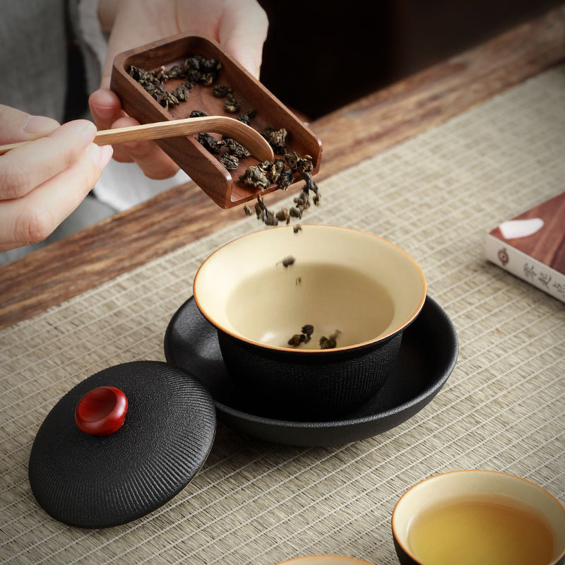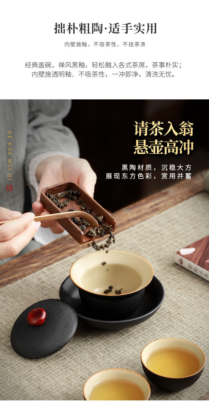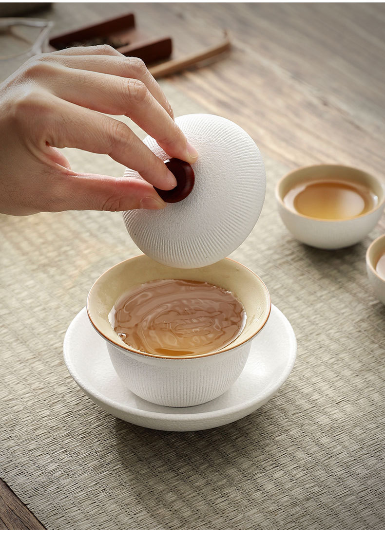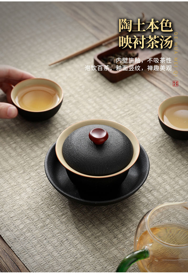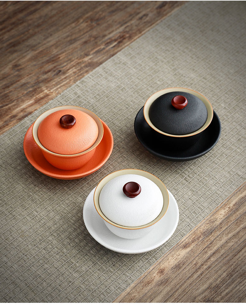 陶瓷功夫茶具三才盖碗创意粗陶简约纯色盖碗家用办公泡茶碗茶托