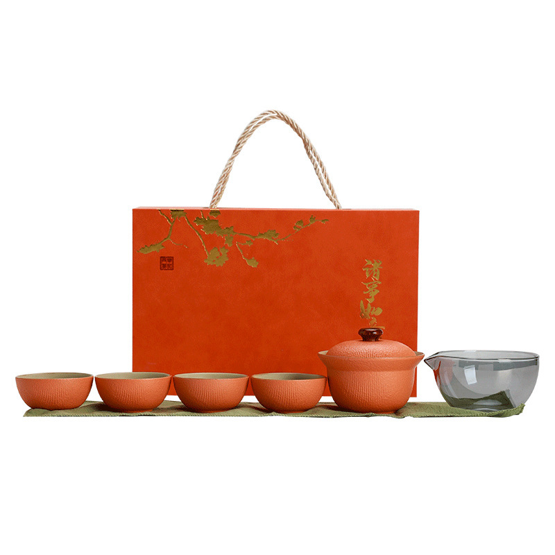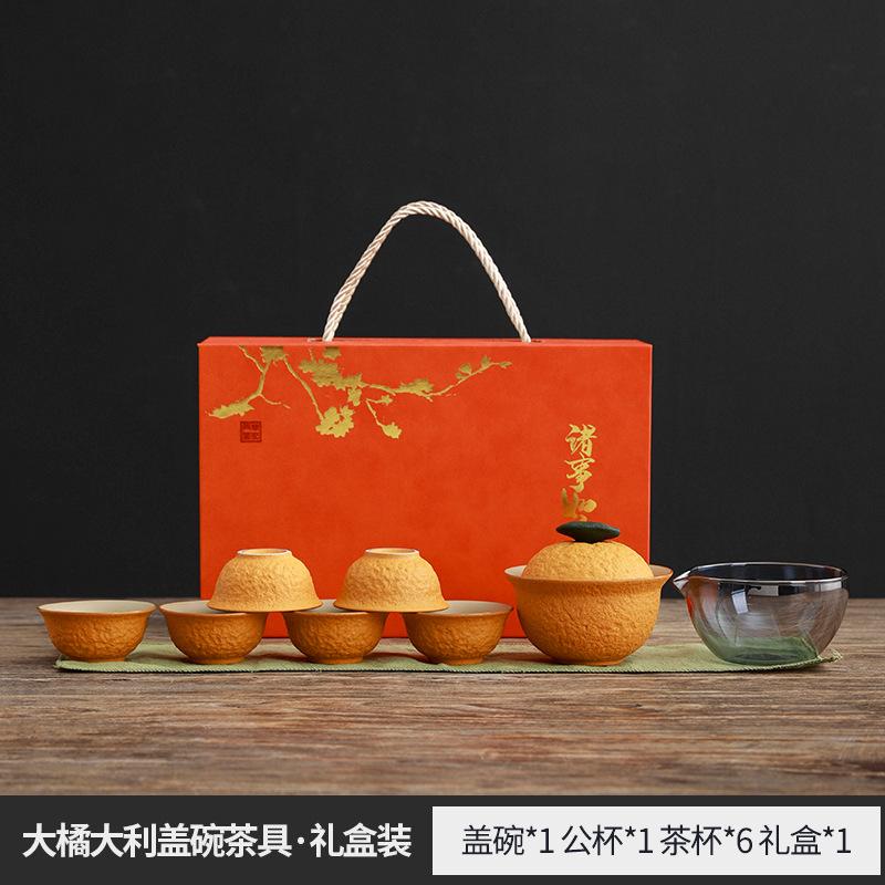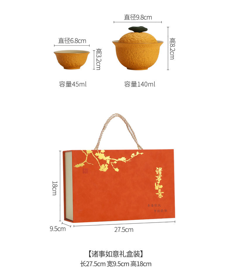 柿子茶具套装一壶两杯商务开业活动礼品伴手礼功夫茶具礼盒装LOGO