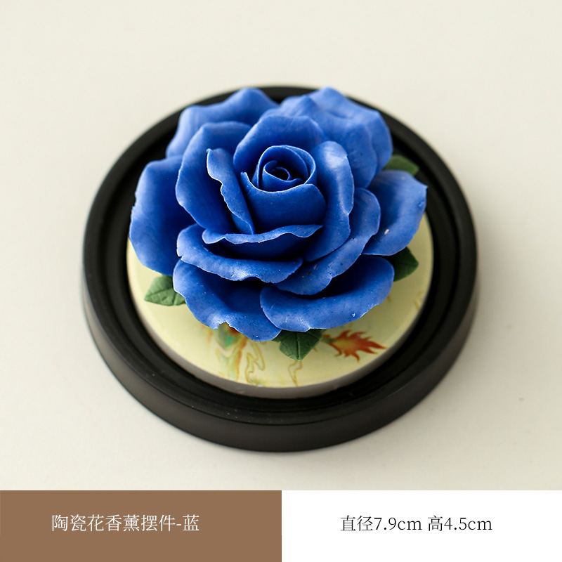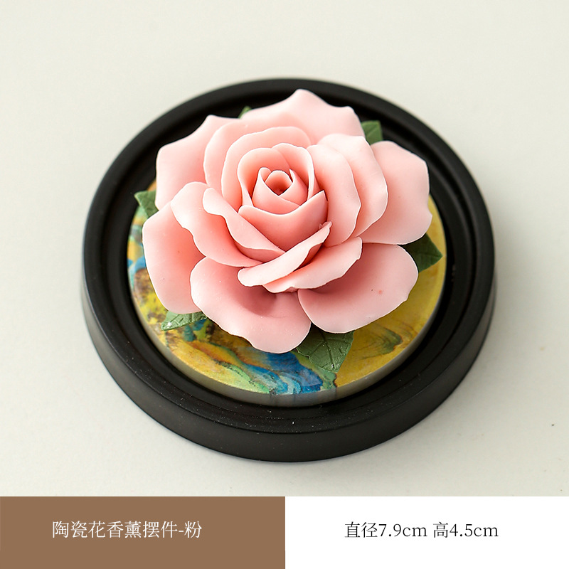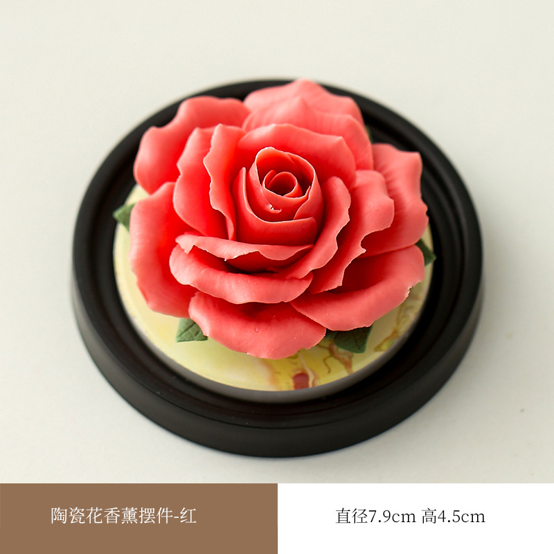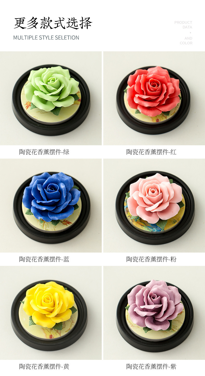 手捏花陶瓷创意摆件创意车载扩香器玫瑰花香薰办公室会所持久留香