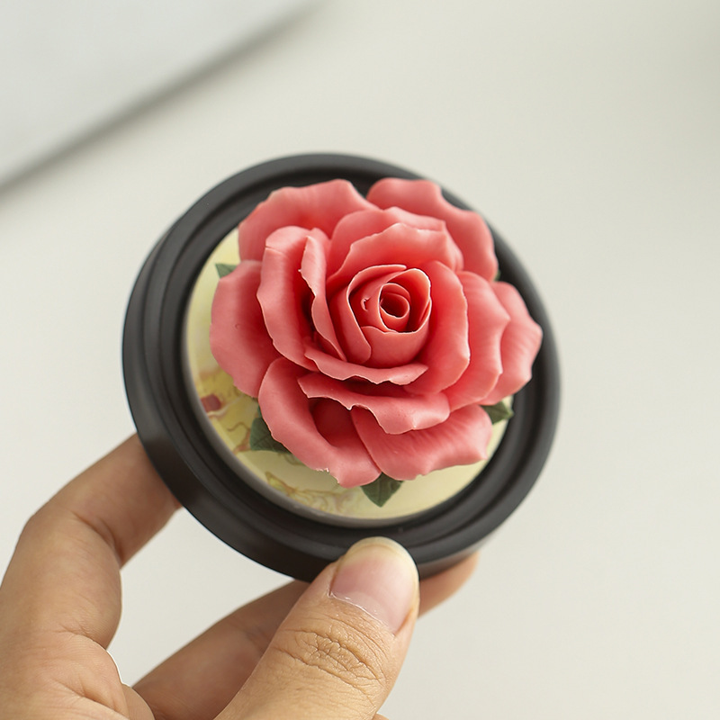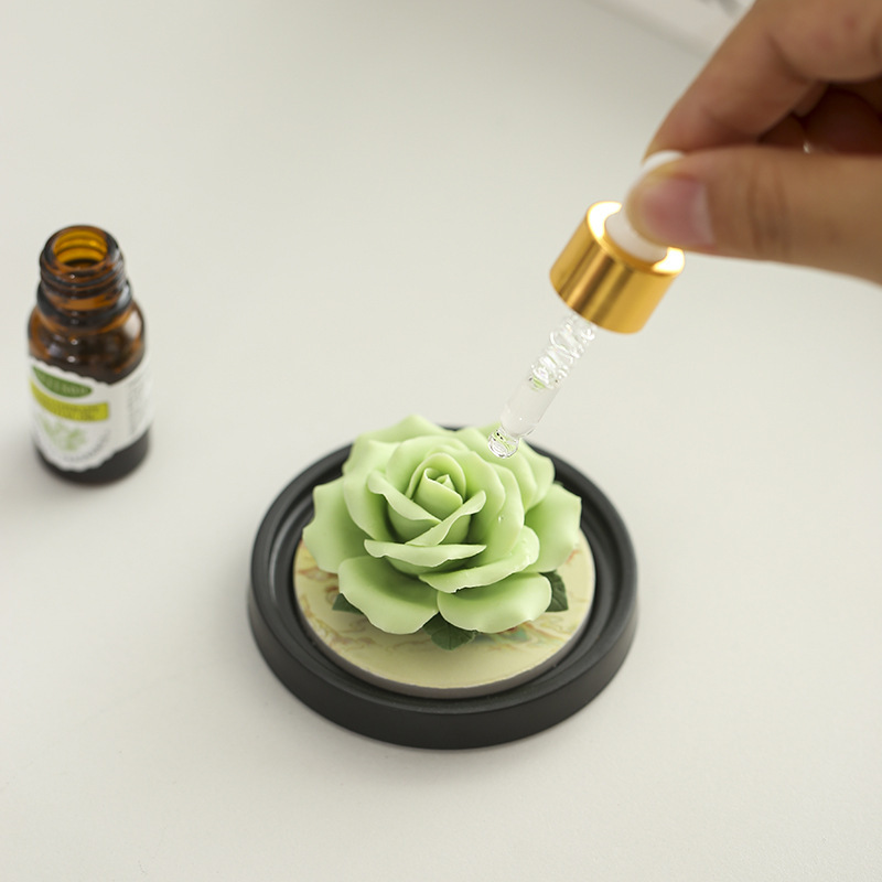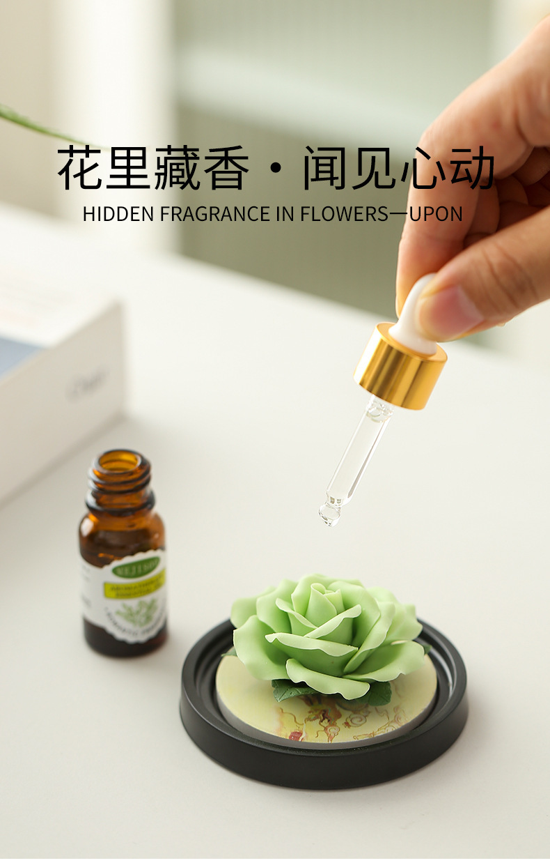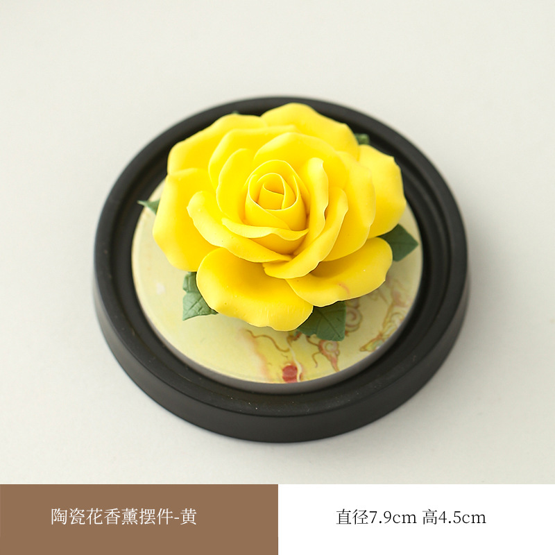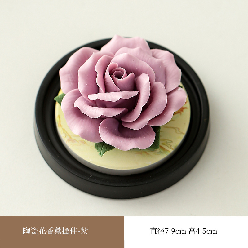 手捏花陶瓷创意摆件创意车载扩香器玫瑰花香薰办公室会所持久留香
