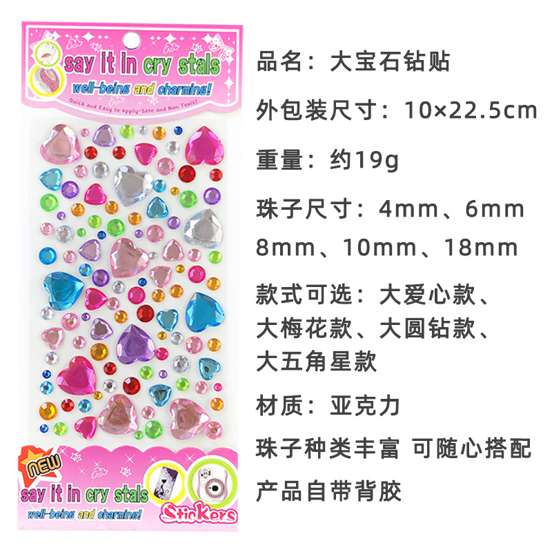钻石贴纸儿童卡通女公主3d立体爱心水晶宝石贴幼儿园奖励小粘贴画
