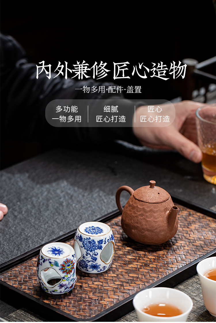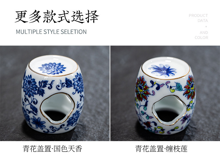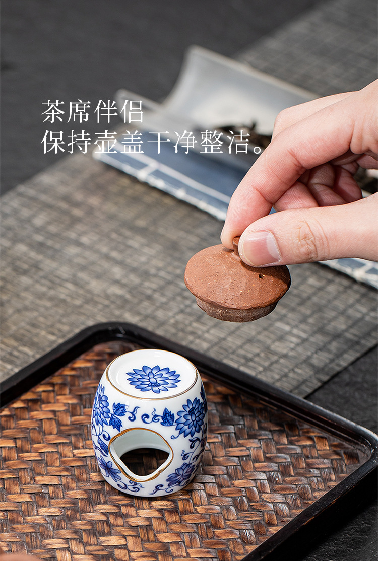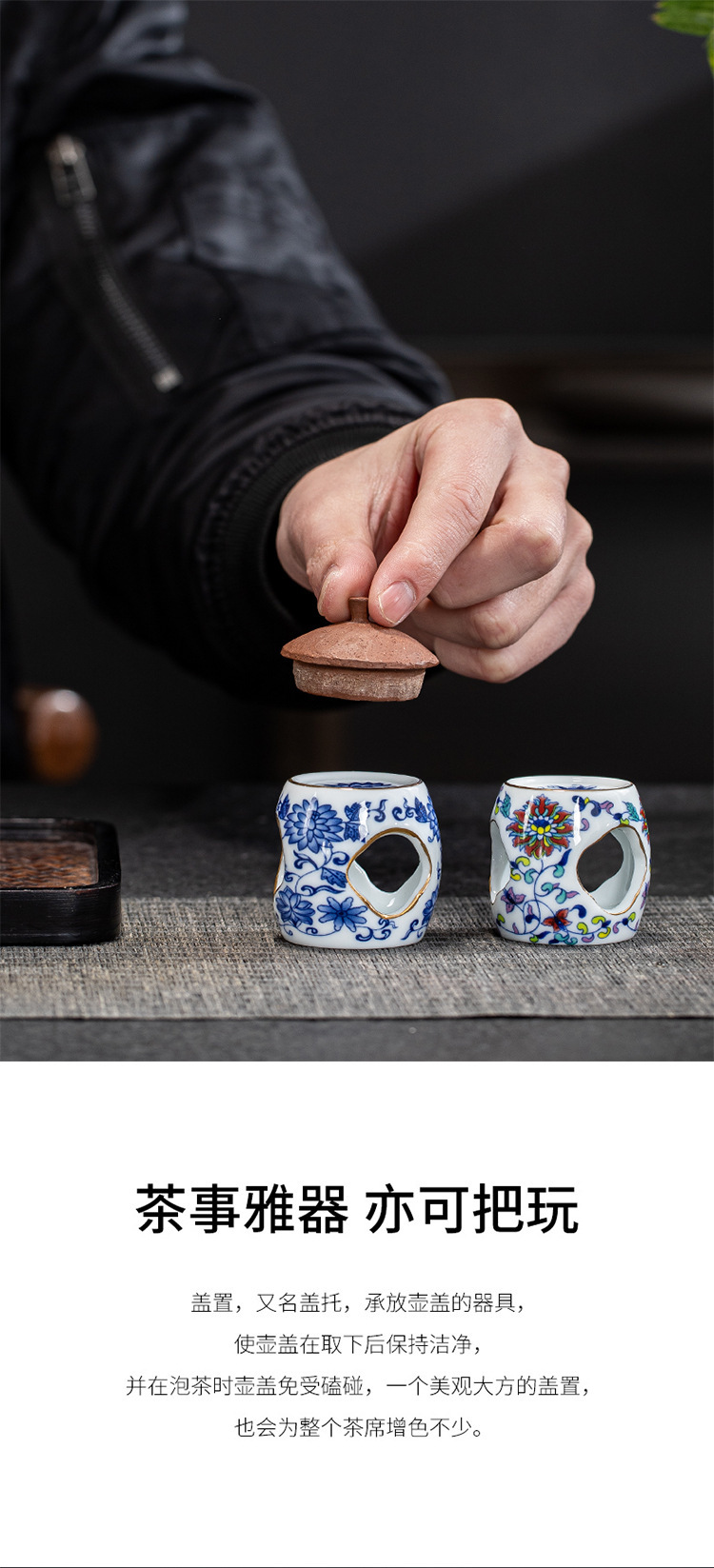 复古青花瓷茶器盖置仿古陶瓷壶承盖托白瓷茶具茶道配件茶玩摆件