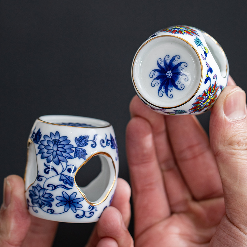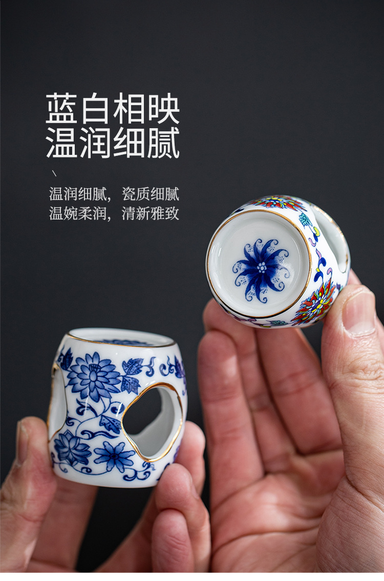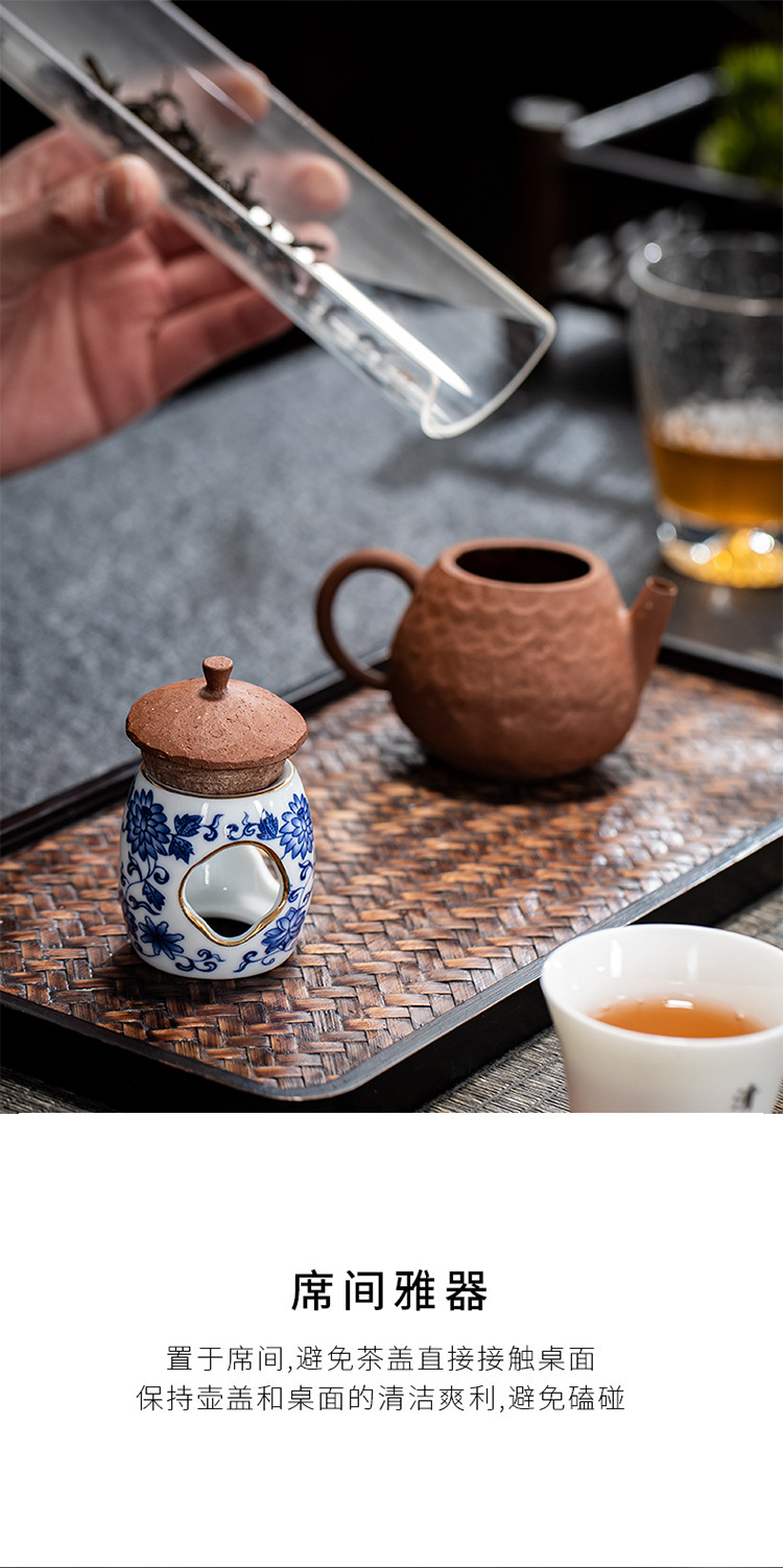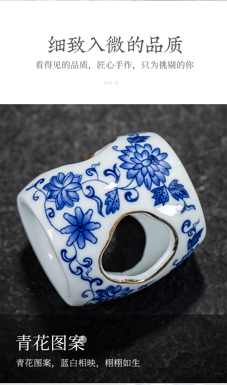 复古青花瓷茶器盖置仿古陶瓷壶承盖托白瓷茶具茶道配件茶玩摆件